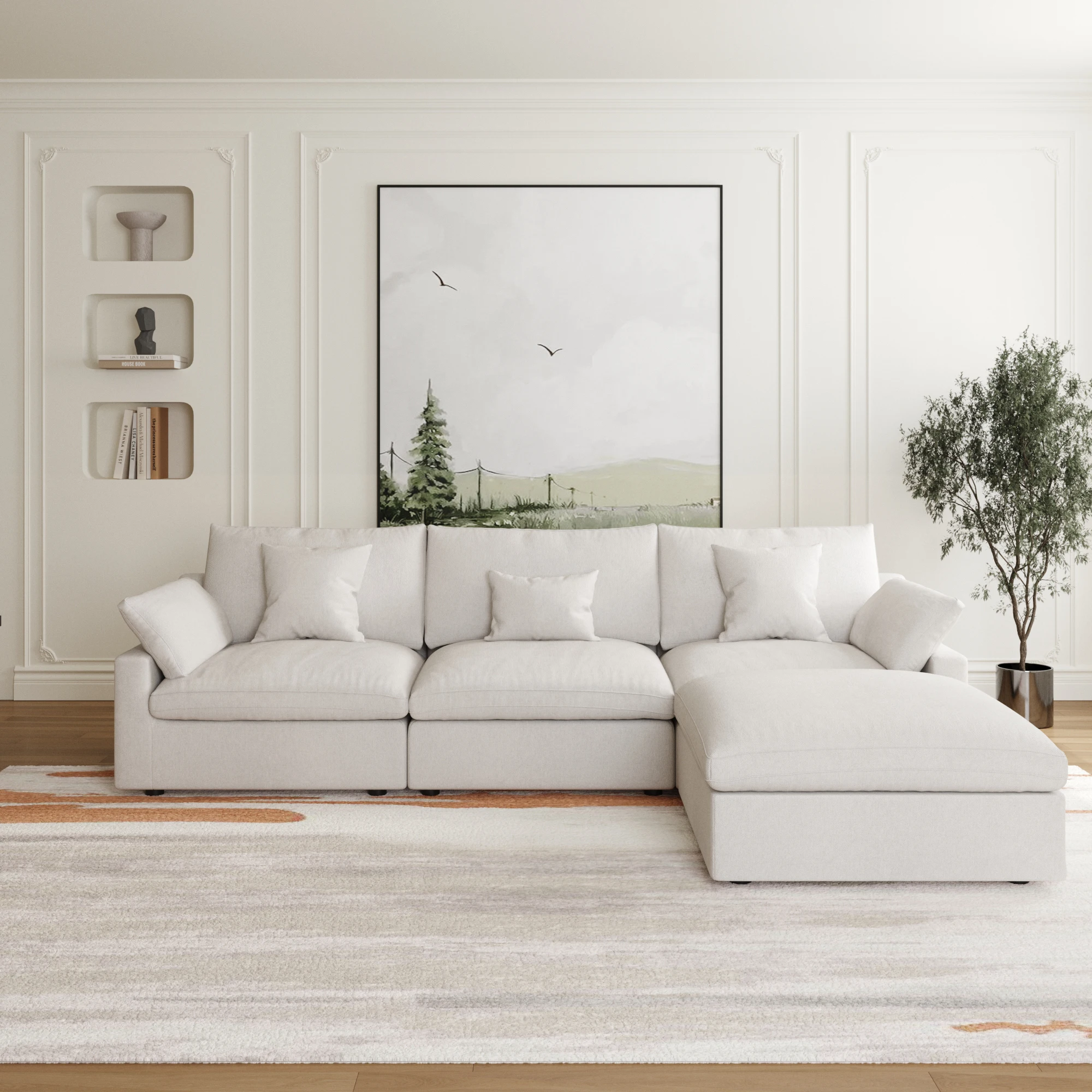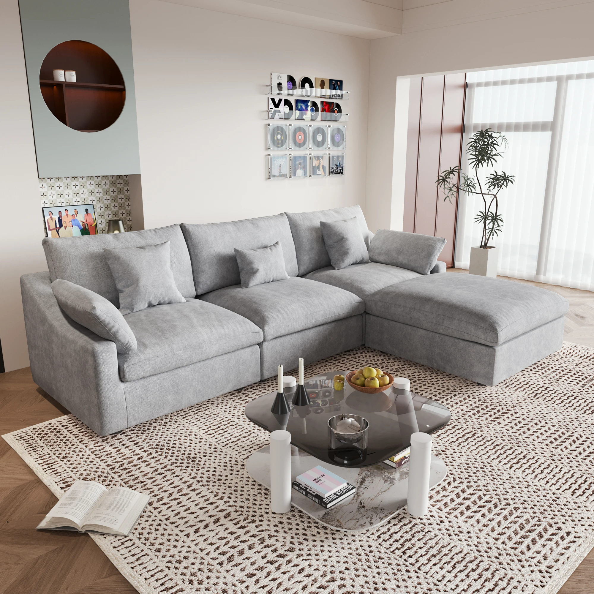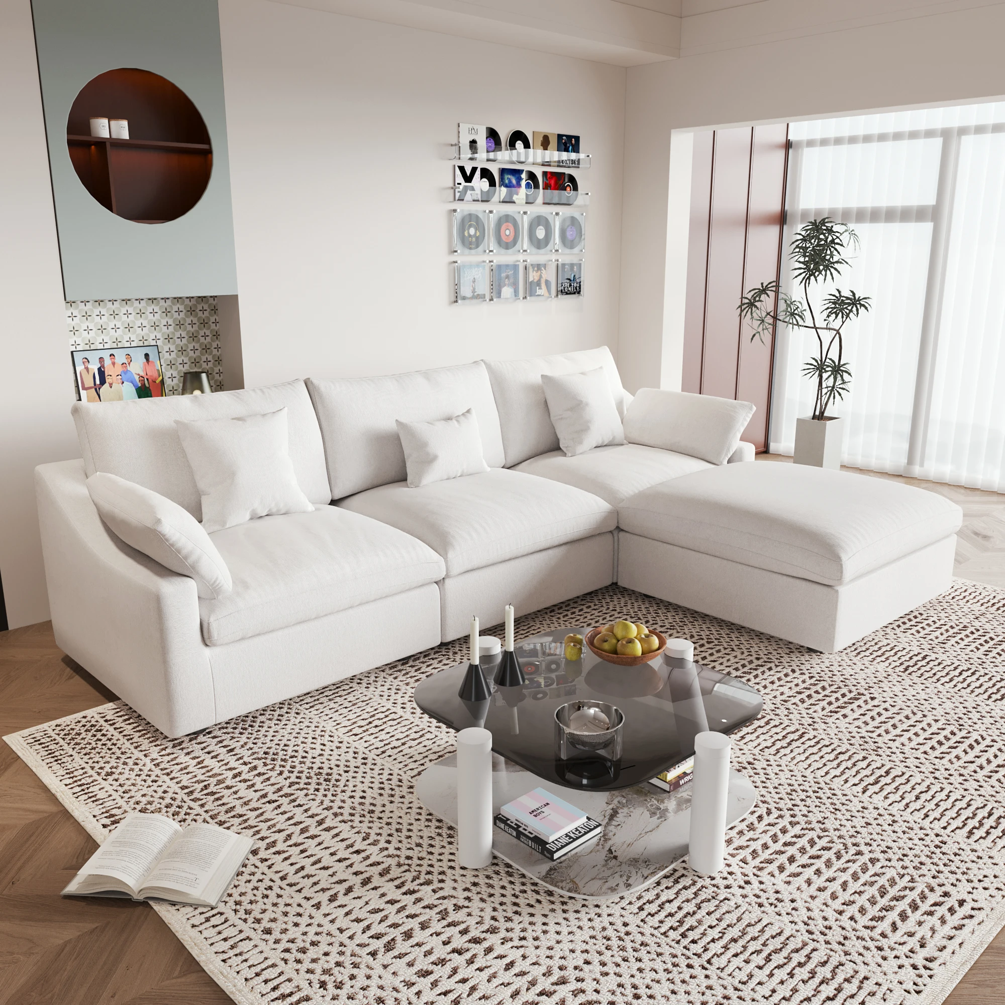 120'' Modern Sectional Sofa for Living Room Comfy Cloud Couch Down Filled Couch with Ottoman L Shaped 4 Seater Convertible Sofa