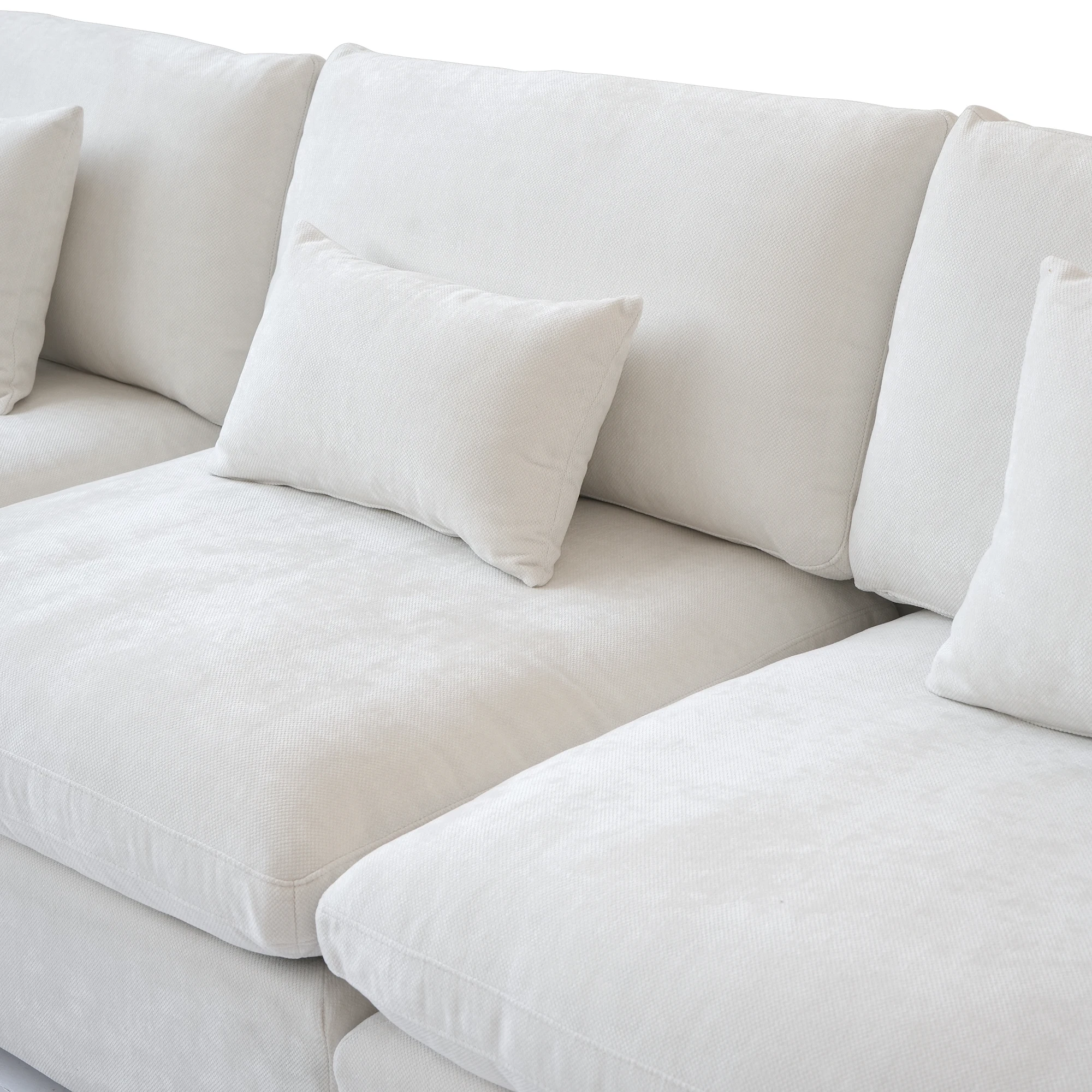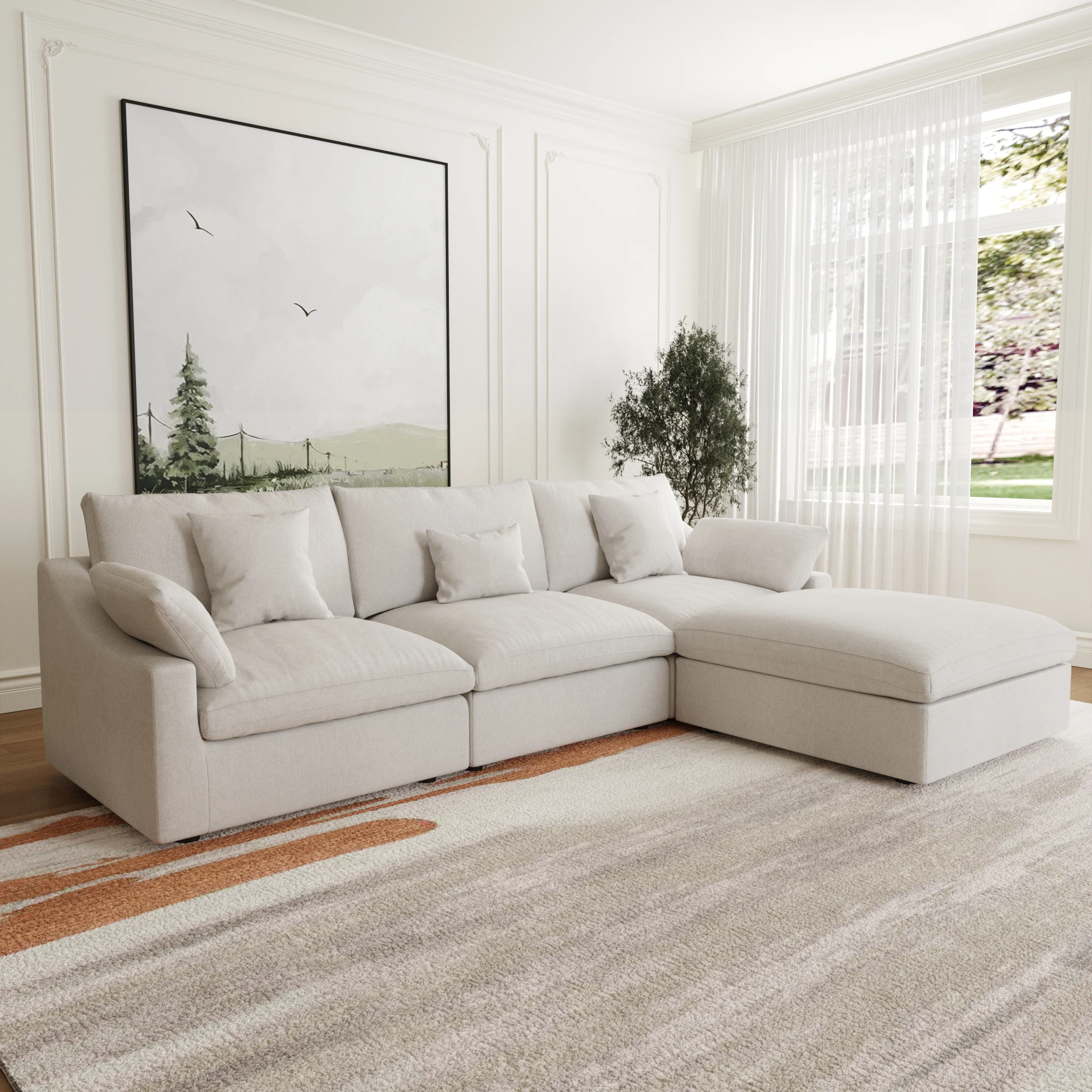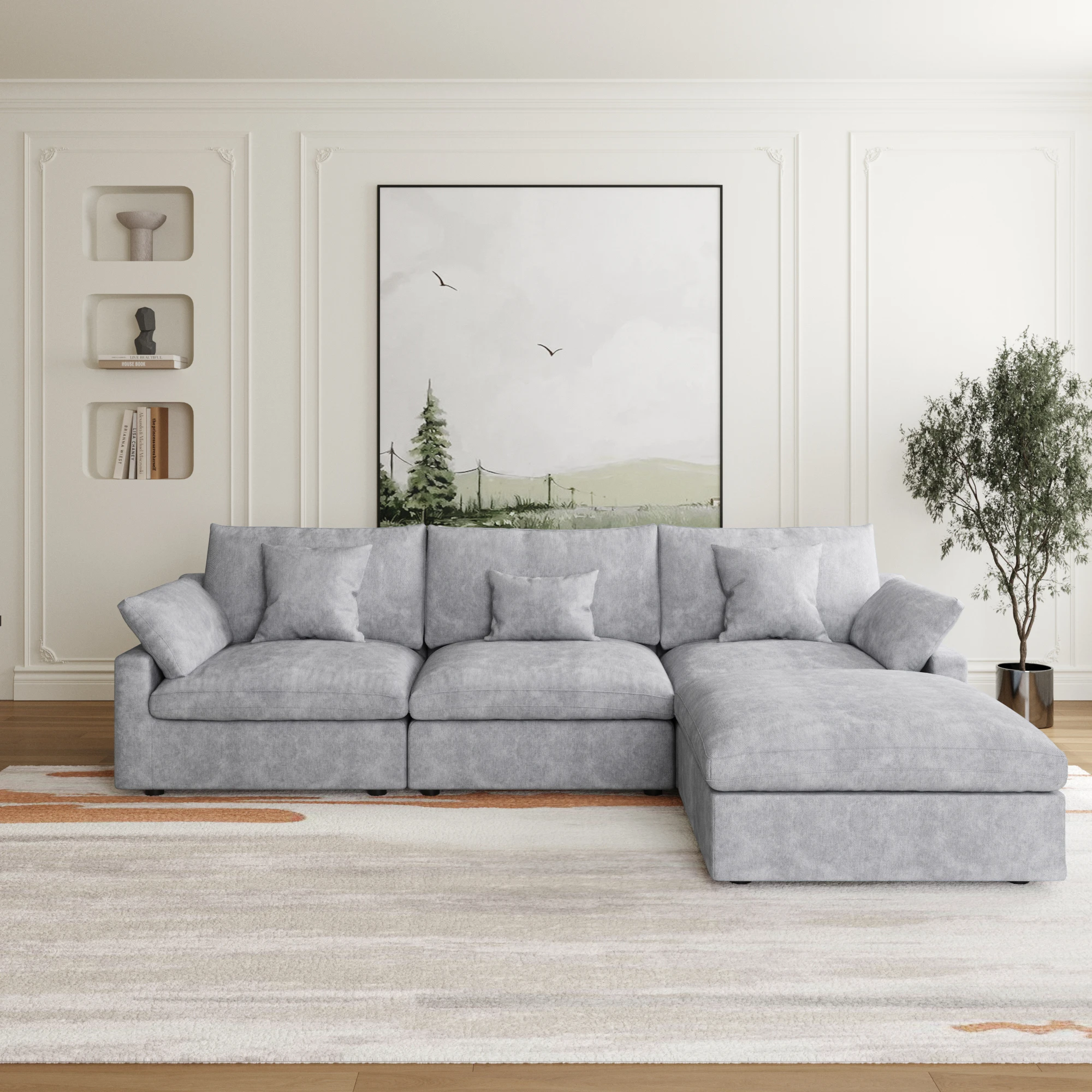 120'' Modern Sectional Sofa for Living Room Comfy Cloud Couch Down Filled Couch with Ottoman L Shaped 4 Seater Convertible Sofa
