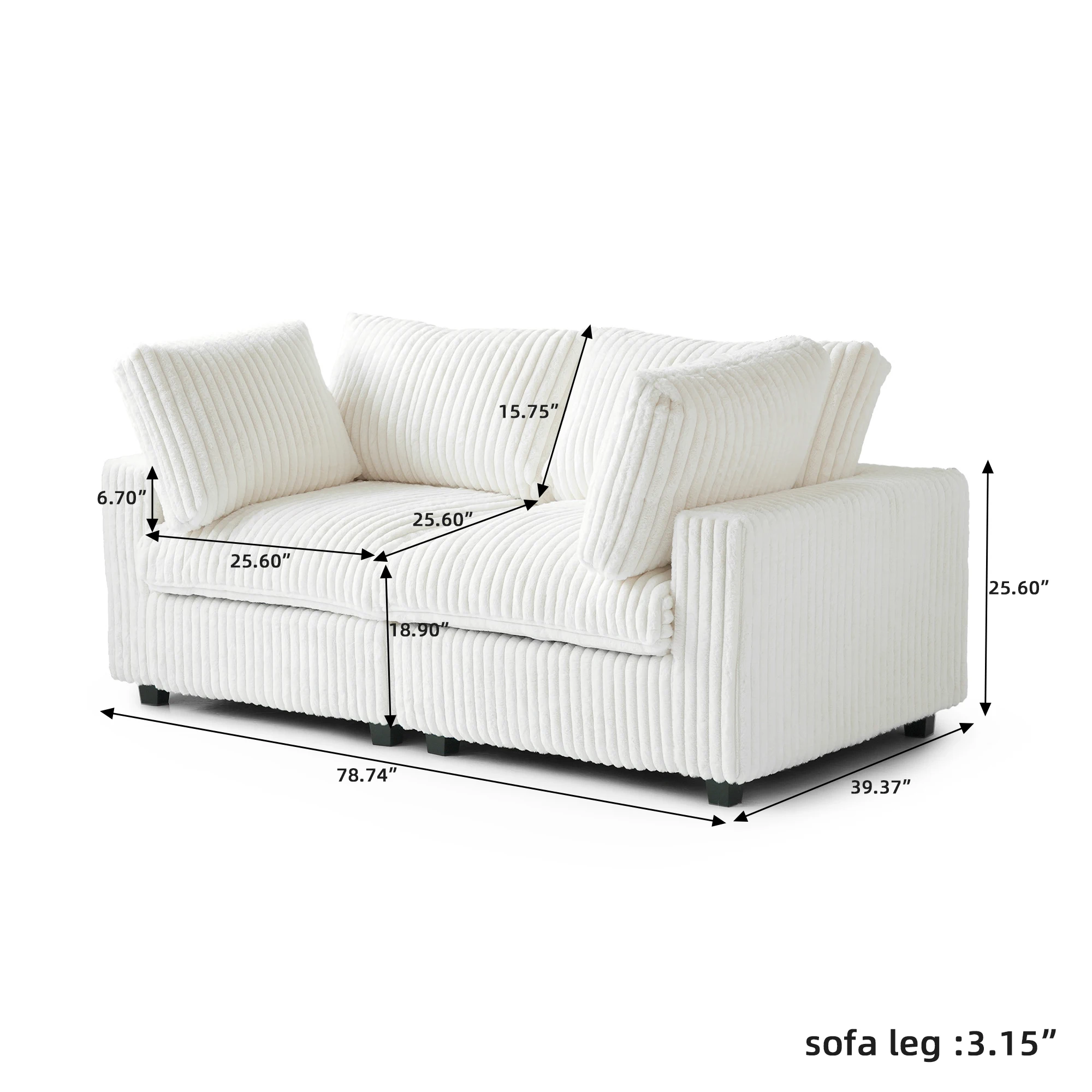 [Easy to Assemble] Overall size of the loveseat sofa is 78.74"L x 39.37"W x 25.6"H. Includes all necessary hardware and instructions, no additional tools required. Simply assemble according to the instructions provided and enjoy a stylish, functional and comfortable sofa in a short time.