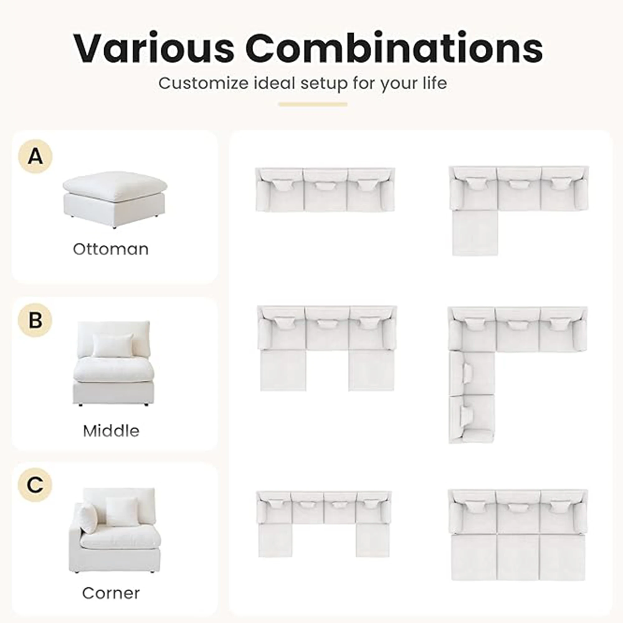 【Epitome Of Comfortable & Elegant】The Cloud Modular Sofa is filled with sponge and down feathers on the inside, providing a soft and comfortable feel, just like sitting on a cloud. Whether you want to relax or enjoy a good read, this sofa will offer you an incredibly comfortable experience.