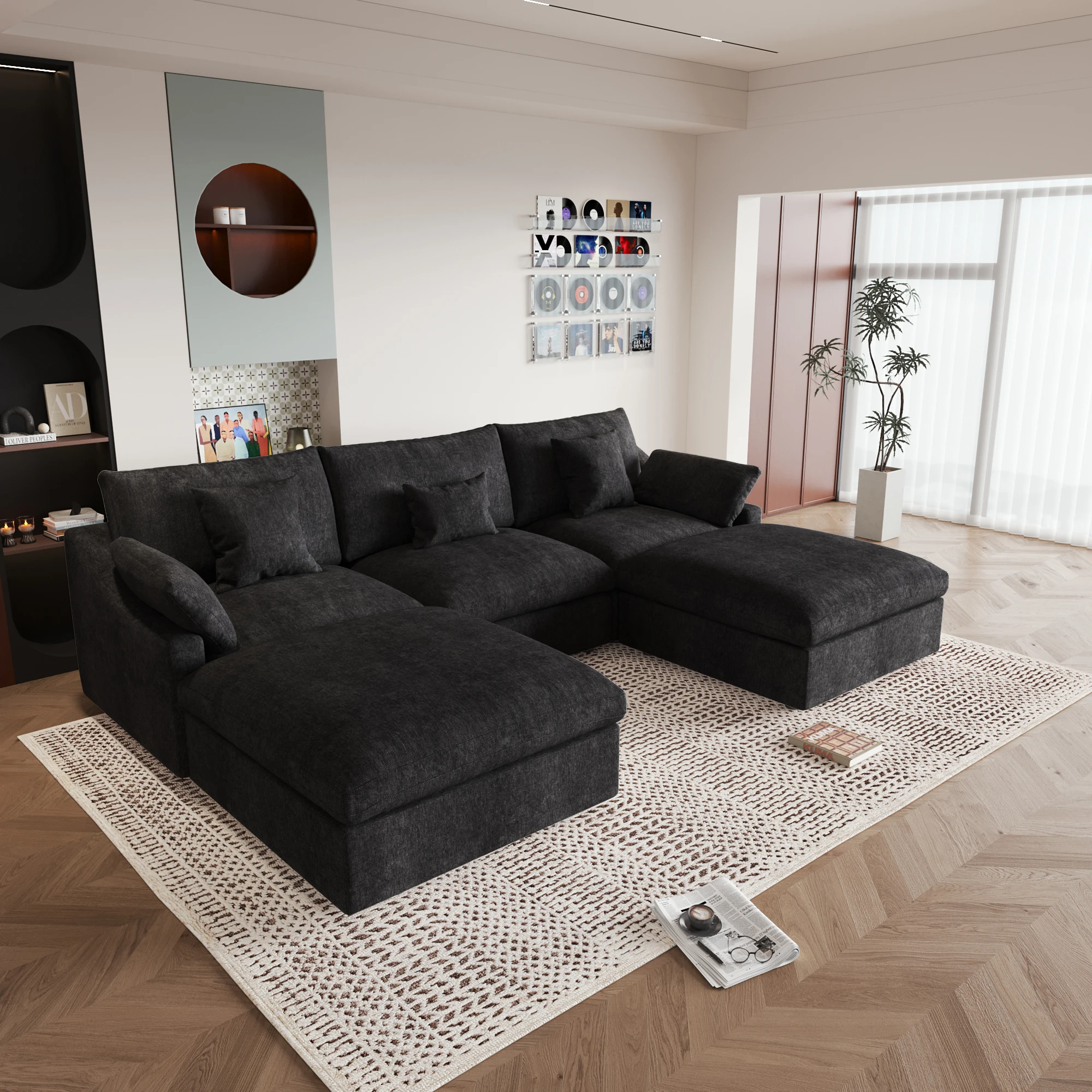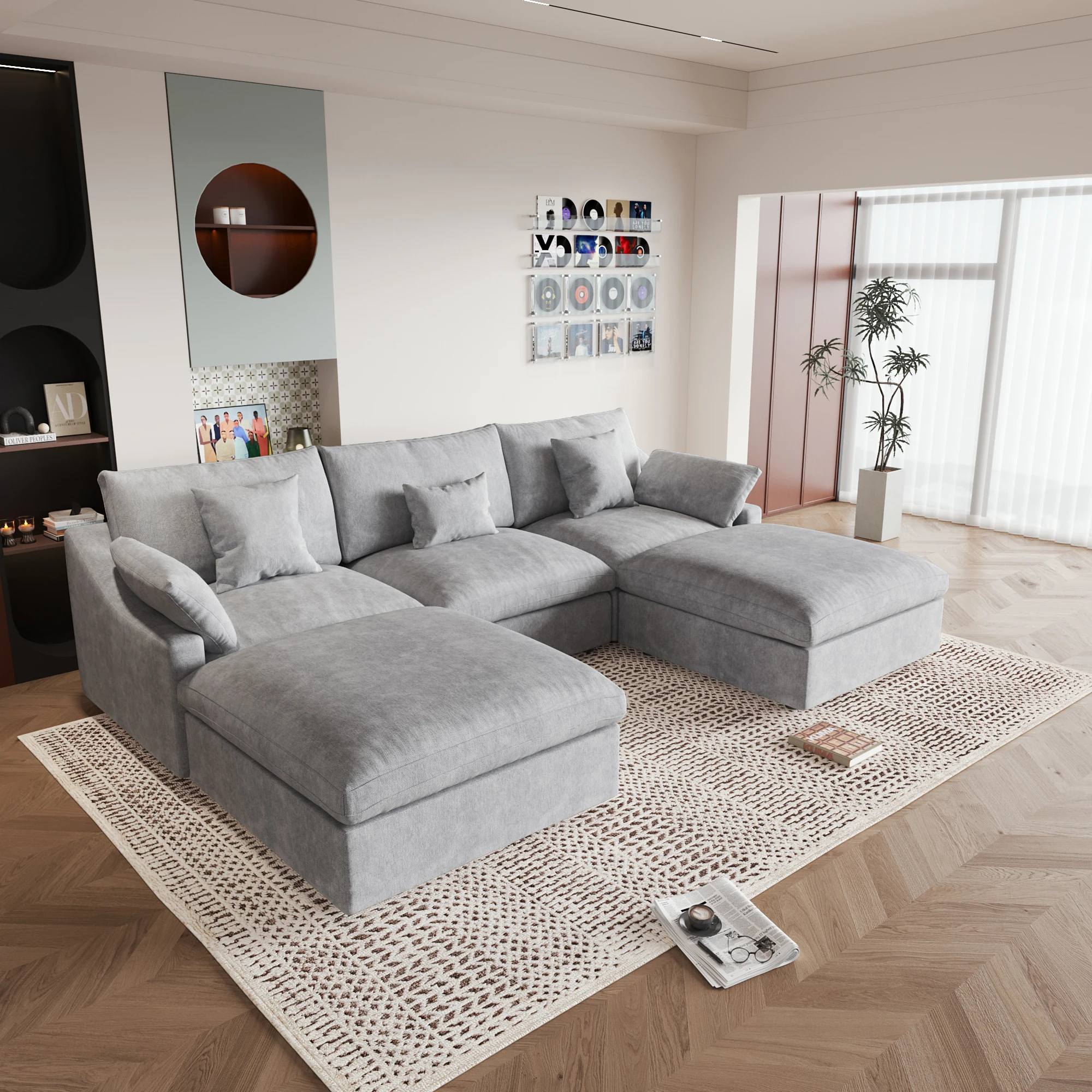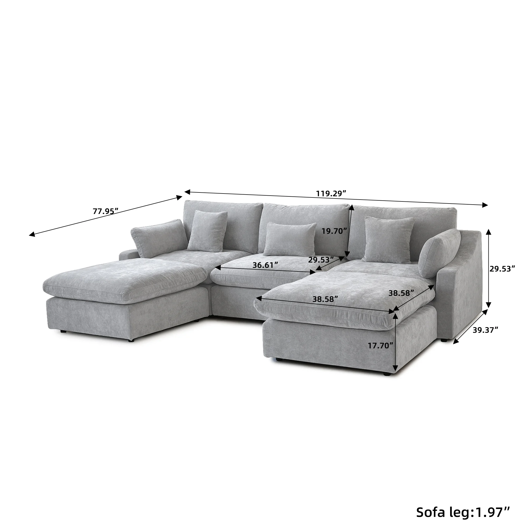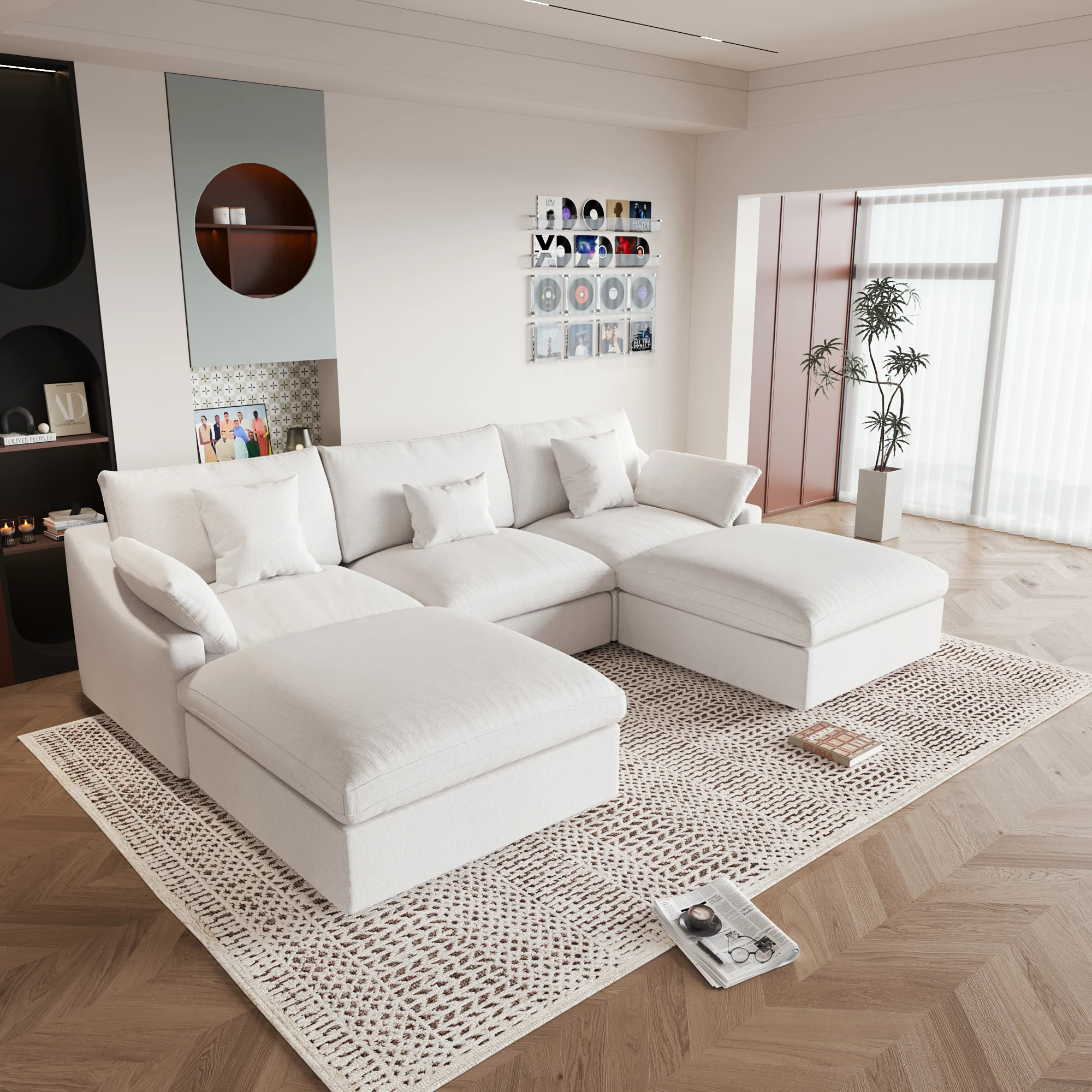 Comfy Cloud Couch 120'' Modern Sectional Sofa for Living Room Down Filled Couch with Ottoman U Shaped 5 Seater Convertible Sofa