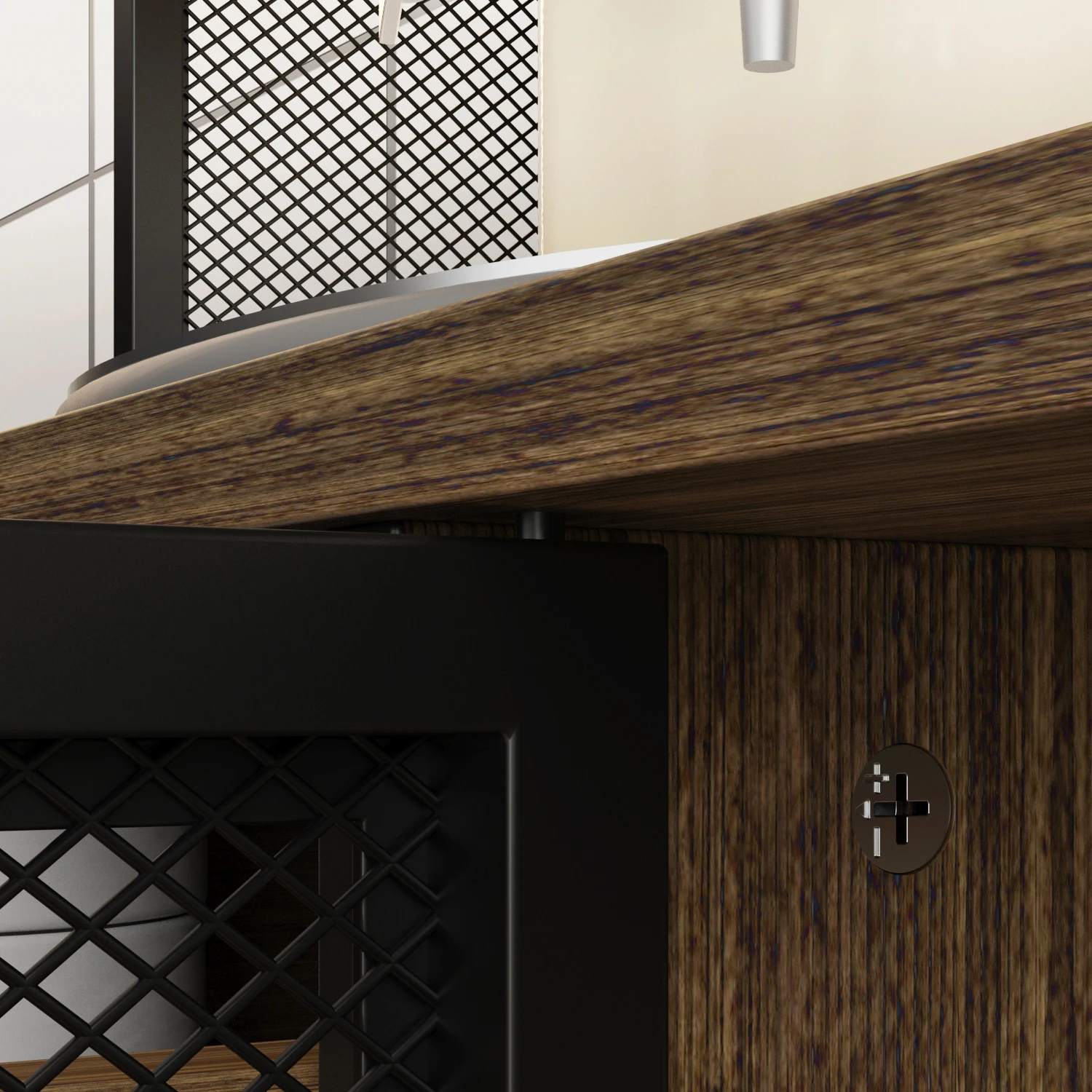 【Stylish Industrial Look】This kitchen pantry cabinet mixes dark wood and black metal, giving an industrial charm that suits kitchens well. Your kitchen will look trendy and coordinated.
