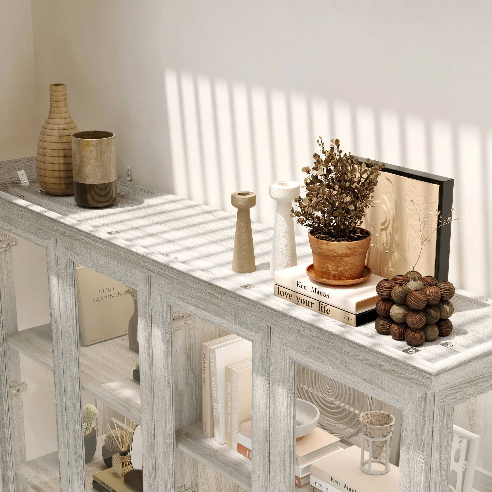 【Glass Door Showcase】The clear glass doors allow full visibility of your displayed items, making it ideal for showcasing books, decor, or collectibles. The wooden frames around the glass add a touch of sophistication and contrast beautifully with the rustic finish.