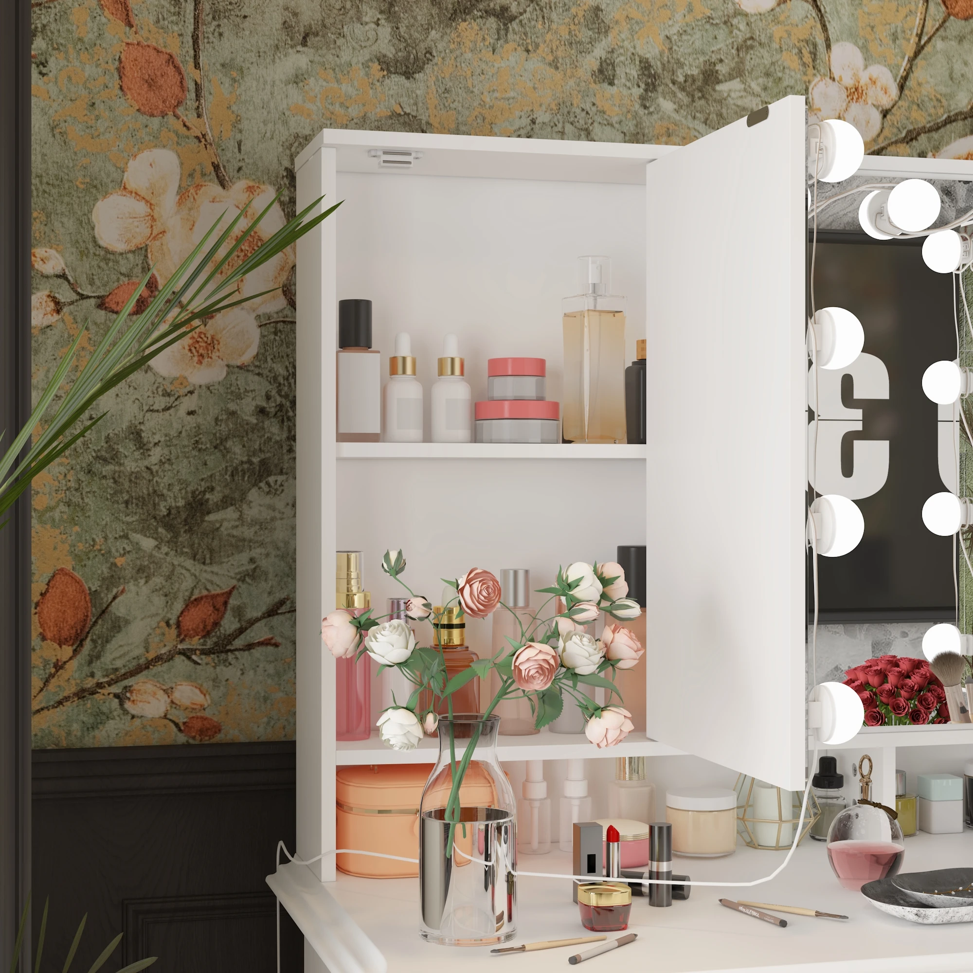 【Mirror Door Storage】With mirror doors that open to shelves, this vanity keeps skincare and makeup organized. You can hide clutter while having essentials within reach for your daily beauty routine.