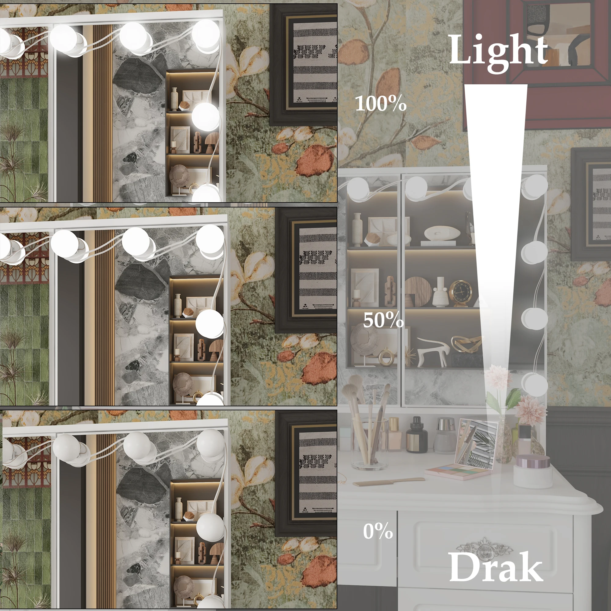 【3-Color Bulb Lighting】The makeup vanity has bulbs with cool, natural, and warm light modes (USB included). When doing makeup for a daytime meeting or a night event, switching lights gives you perfect illumination, and the USB makes device charging easy.