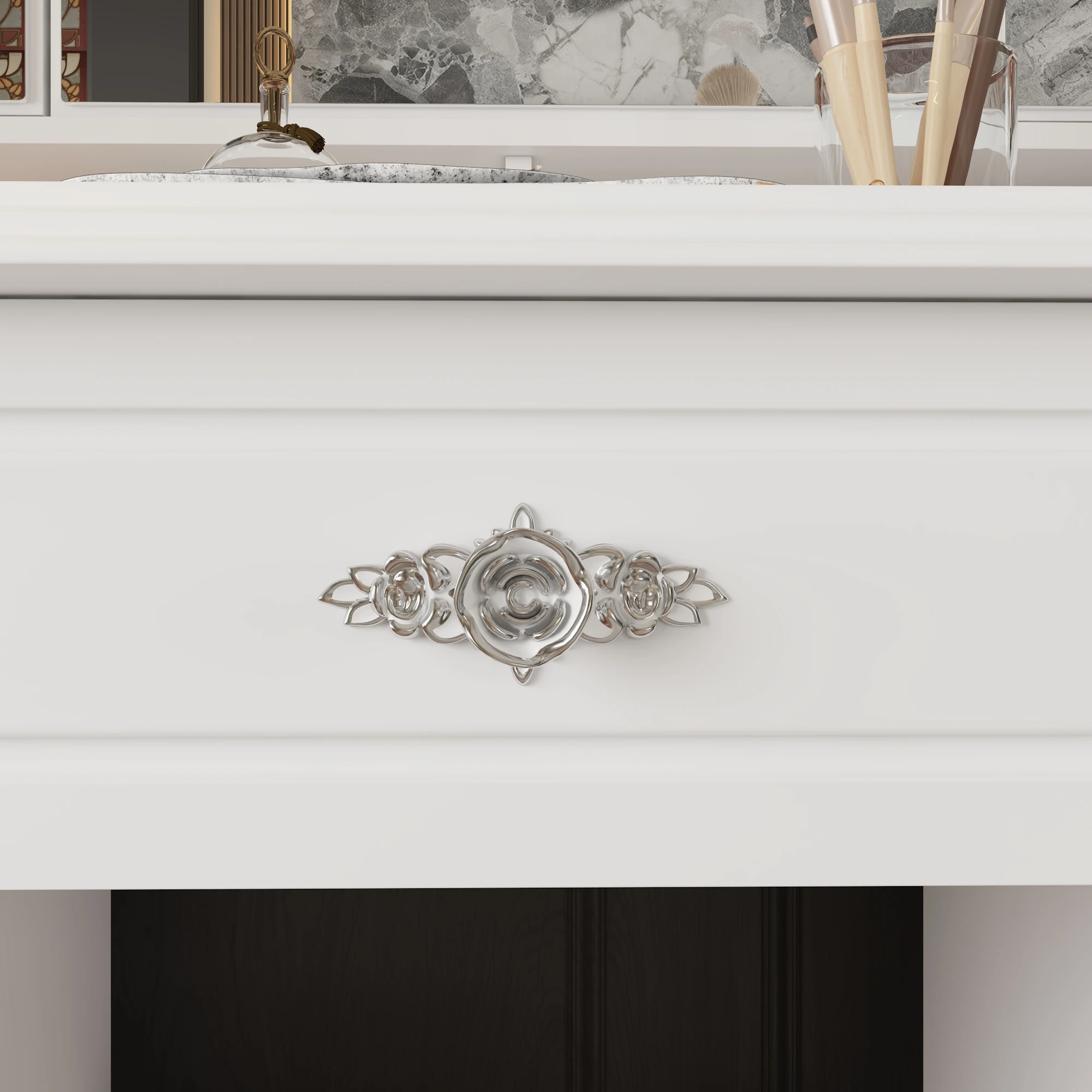 【Elegant Rose Handles】Adorned with silver rose - shaped decorative hardware, this vanity set adds a sophisticated, romantic touch to your bedroom.
