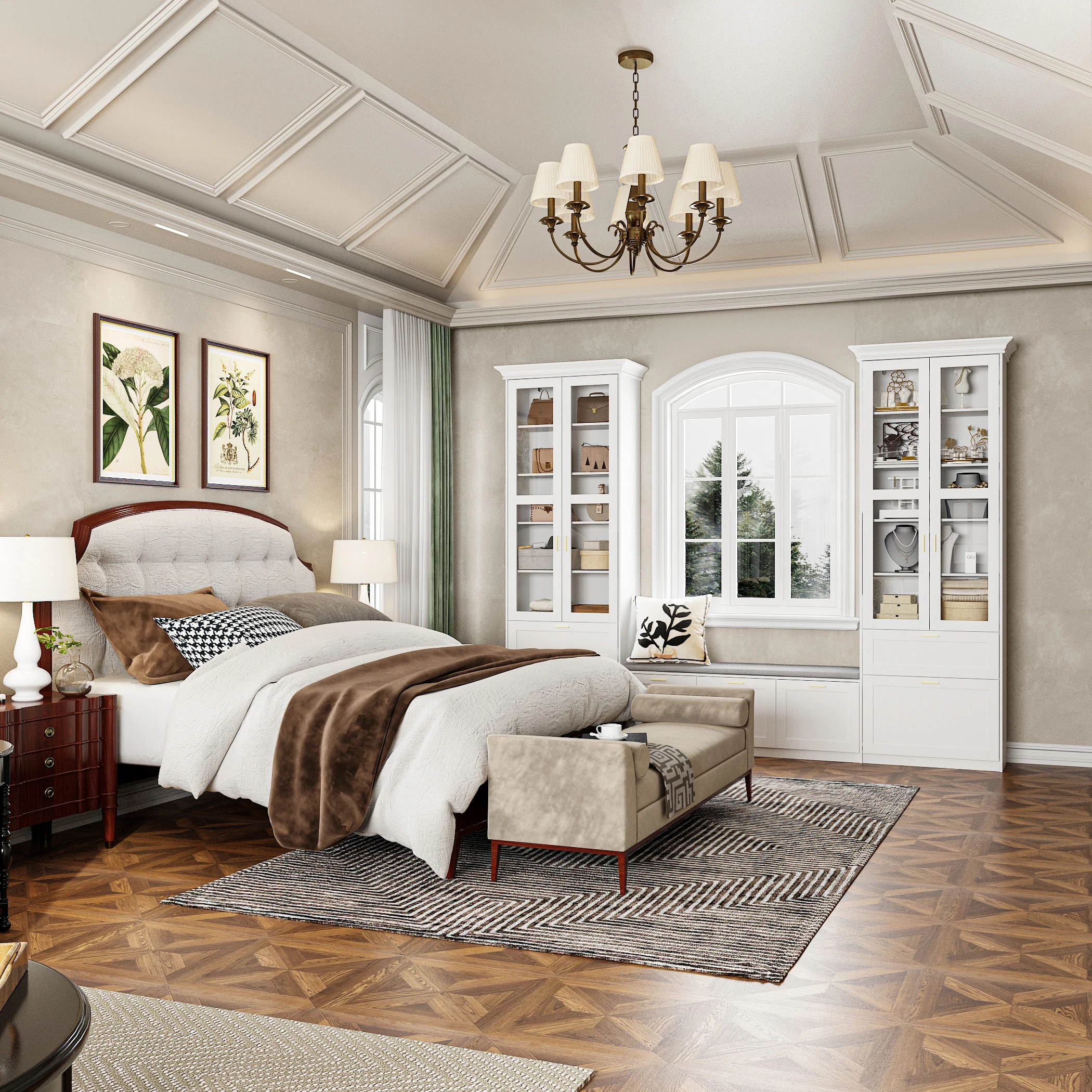 【Window-Integrated Perfection】Designed to perfectly complement windows, this cabinet features glass-paneled doors that harmonize with window aesthetics. It offers both storage and a stylish solution that enhances natural light and view, making it ideal for living spaces with window features.