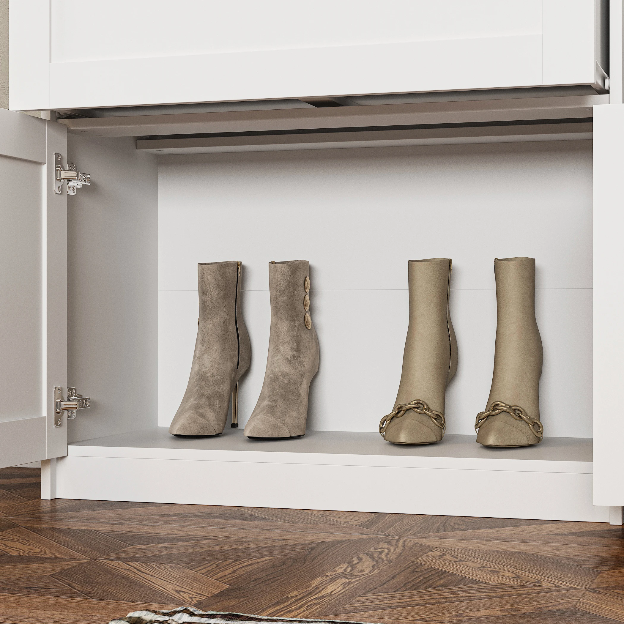 【Elegant Design】This storage cabinet boasts a sophisticated white finish with a soft luster, creating a clean and contemporary look perfect for modern interiors. Its seamless design allows it to blend effortlessly with various decor styles, adding a touch of elegance to any room.