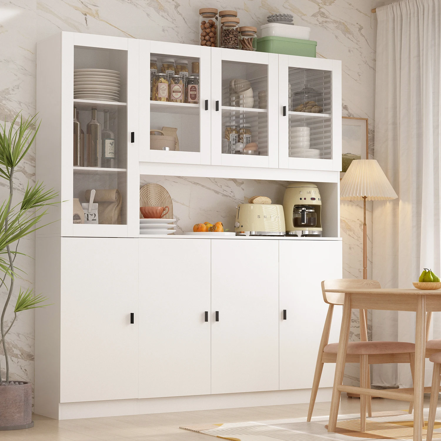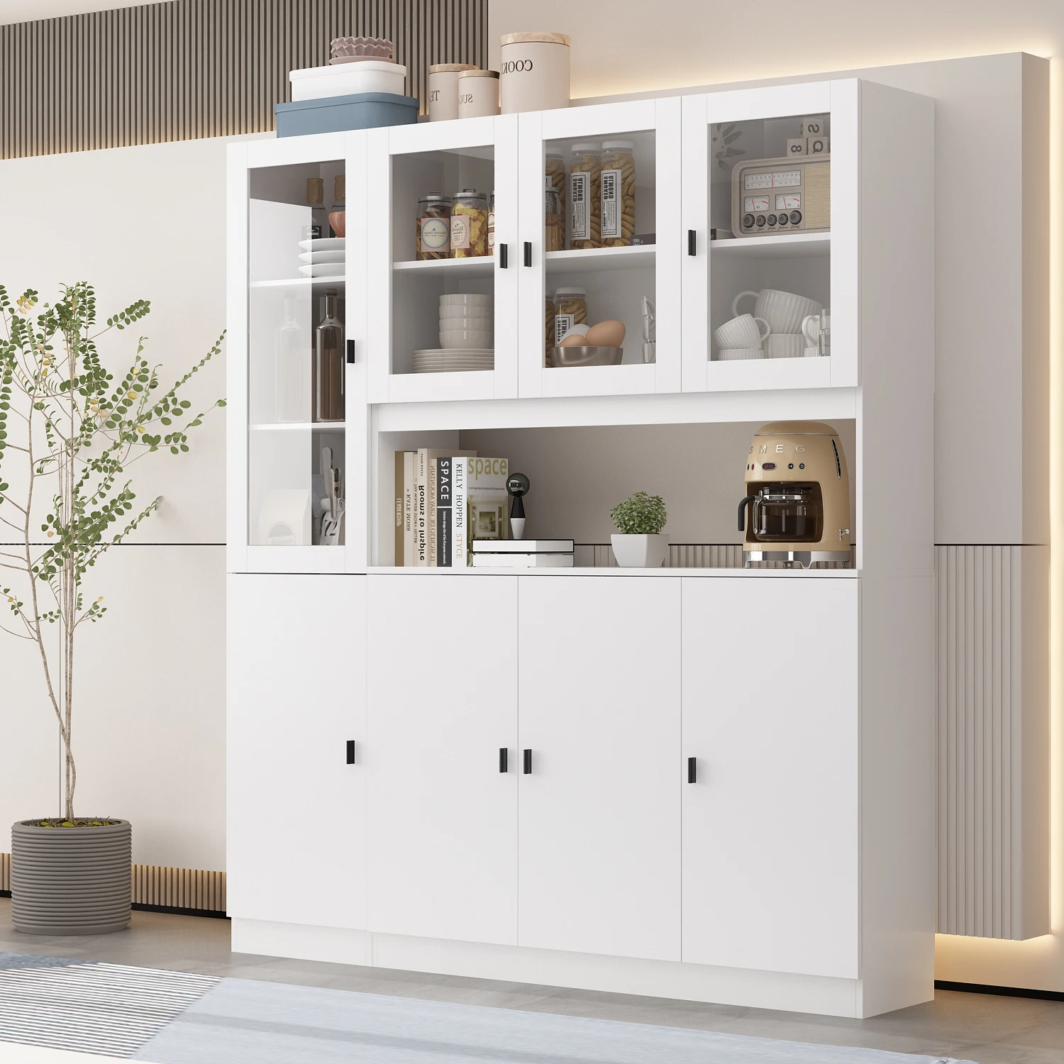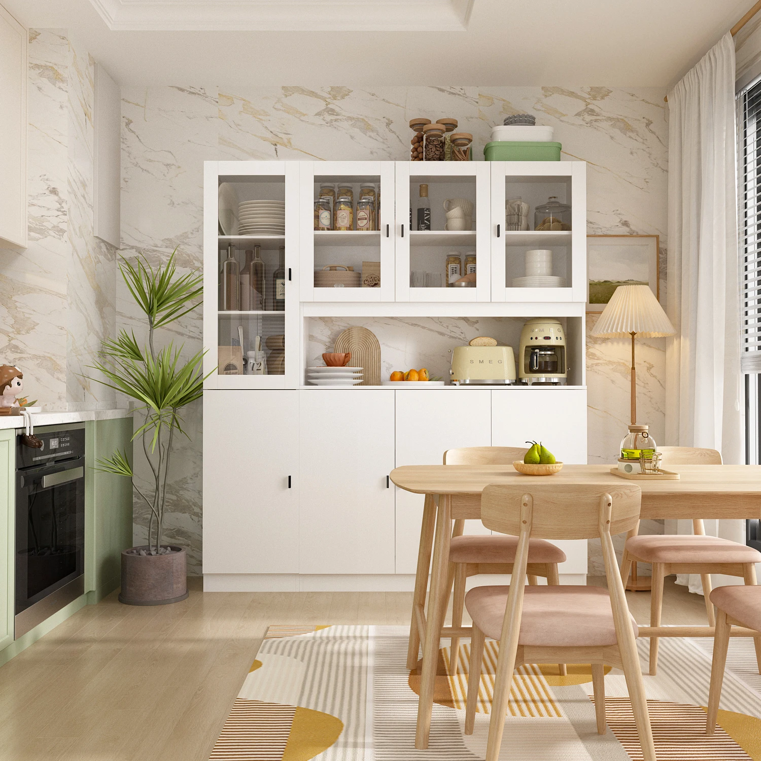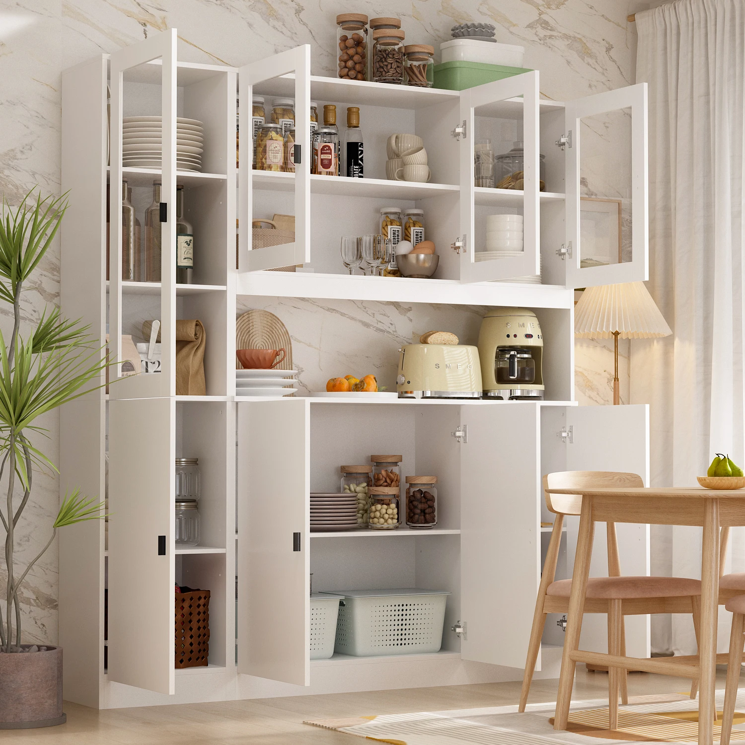 Looking for a functional and stylish storage piece? This tall cabinet with doors is perfect for your home. It has a minimalist white design with sleek metal handles, working as a versatile dining cabinet, sideboard, credenza, or part of tall sideboards and buffets that fits seamlessly in kitchens, dining rooms, or living areas. Made from durable PB material, it's built to last and safe for daily use. With adjustable shelves and multiple compartments behind doors, there's ample space to organize dishes, jars, or decor—you can even customize shelf heights for tall items. Plus, with two available widths, you can mix and match to create a custom storage setup that fits your space perfectly, whether it's a cozy nook or a spacious wall. Whether you need kitchen storage or a chic living room accent, this cabinet combines style and practicality to keep your home neat and trendy.