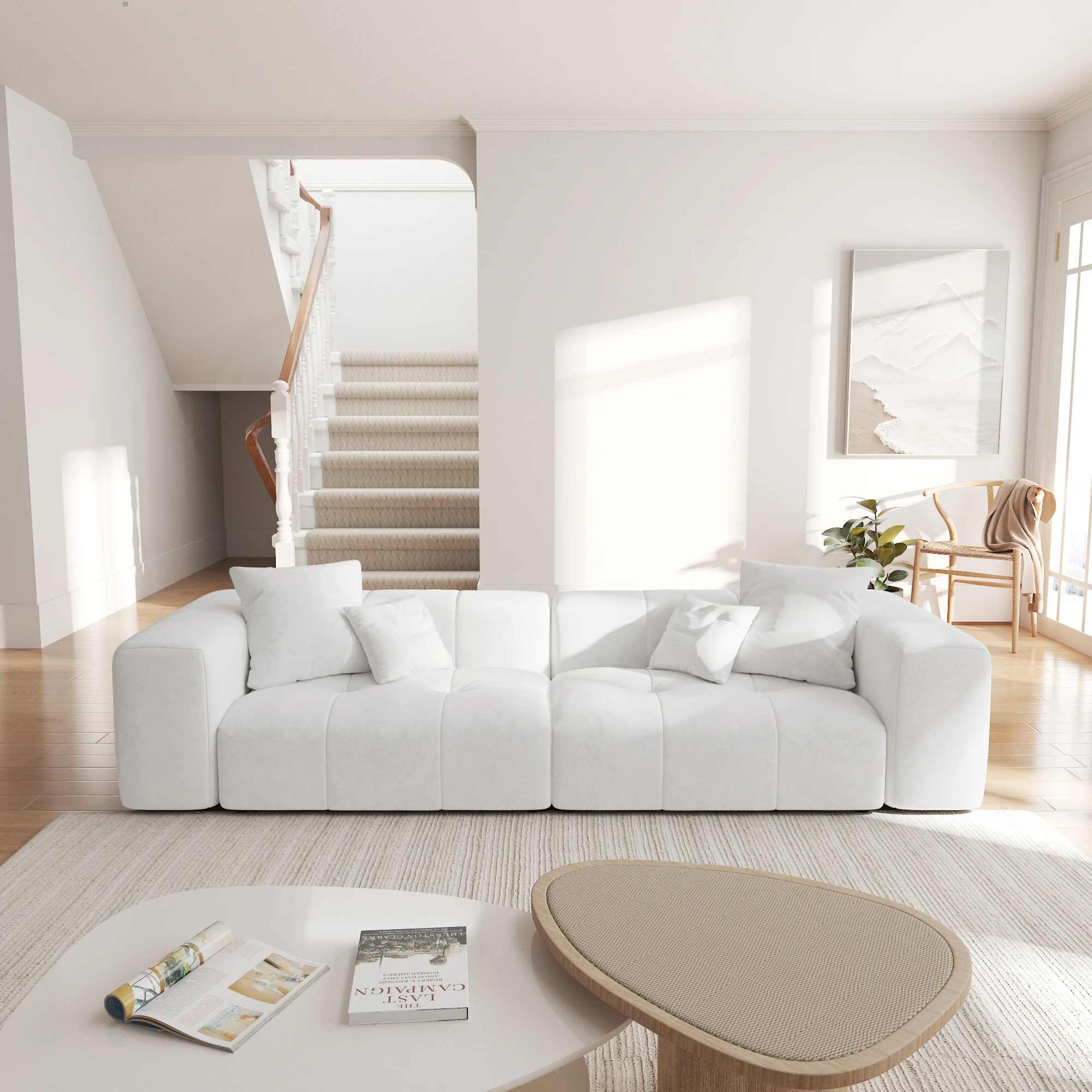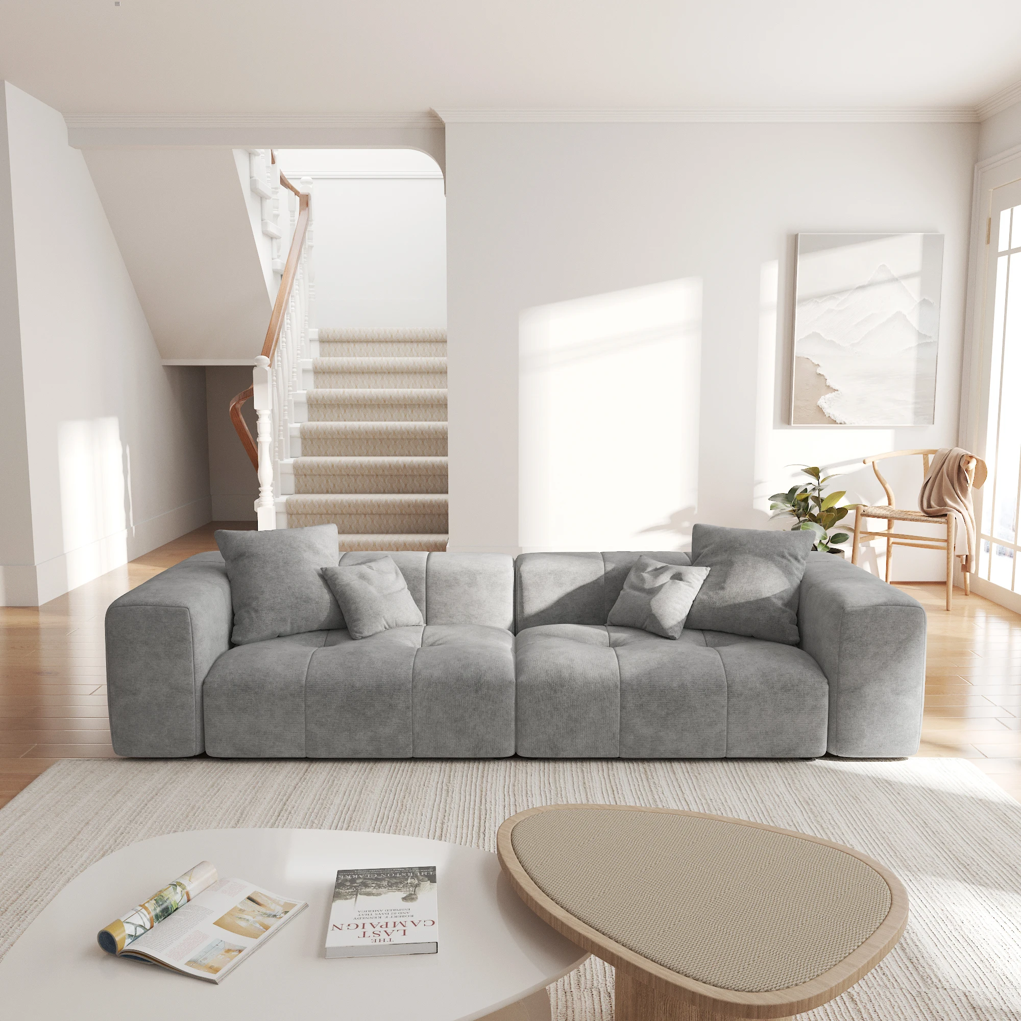 • The linen upholstery provides a soft, breathable, and skin-friendly texture, complemented by its distinctive woven grain, creating a simple yet cozy home ambiance,Additionally, the sofa fabric is exceptionally easy to clean.