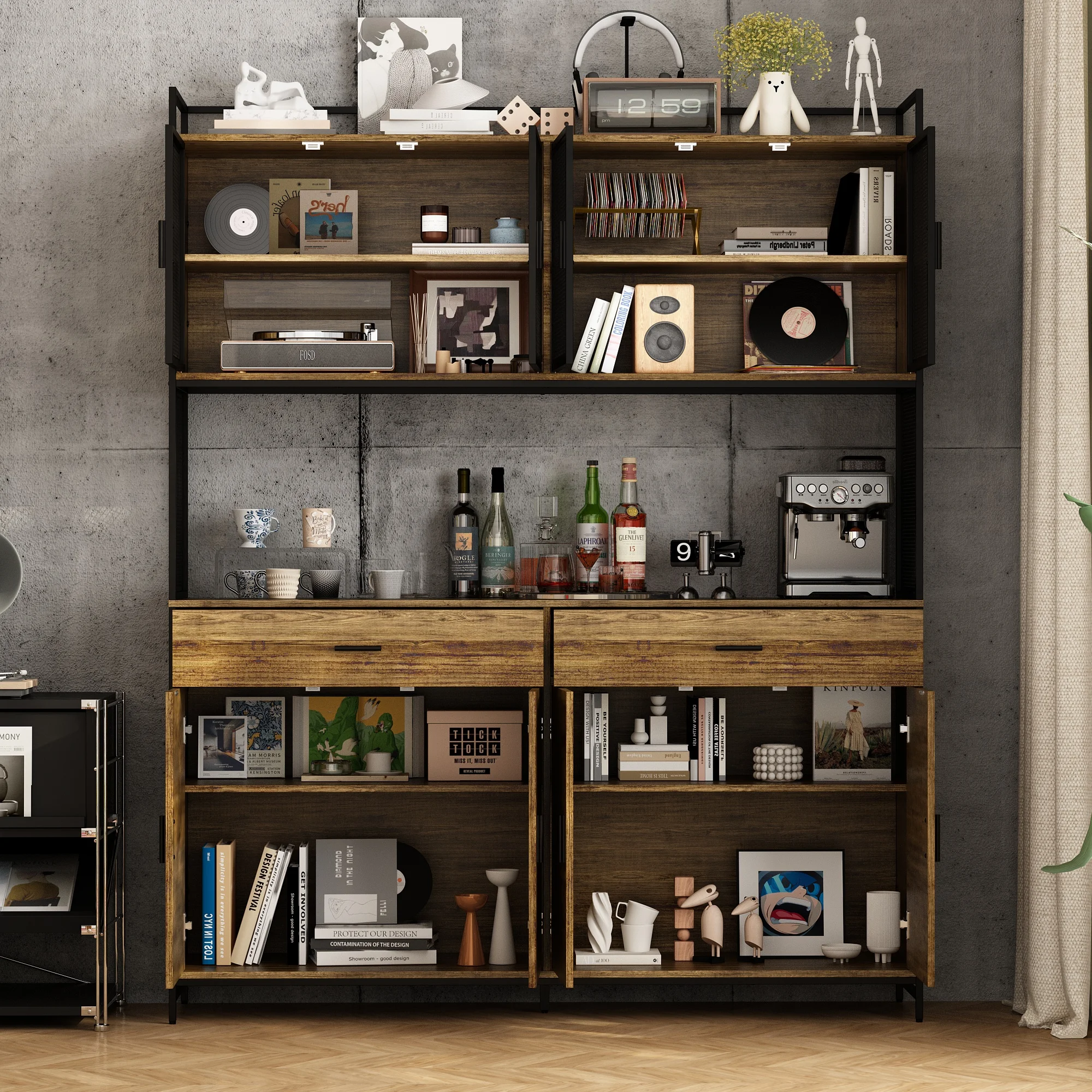 【Customizable Layout】Designed with flexibility in mind, the interior features adjustable shelving and multiple compartments for tailored organization. Whether storing books, collectibles, or kitchenware, you can personalize the layout to suit your specific needs and enhance your space efficiently.