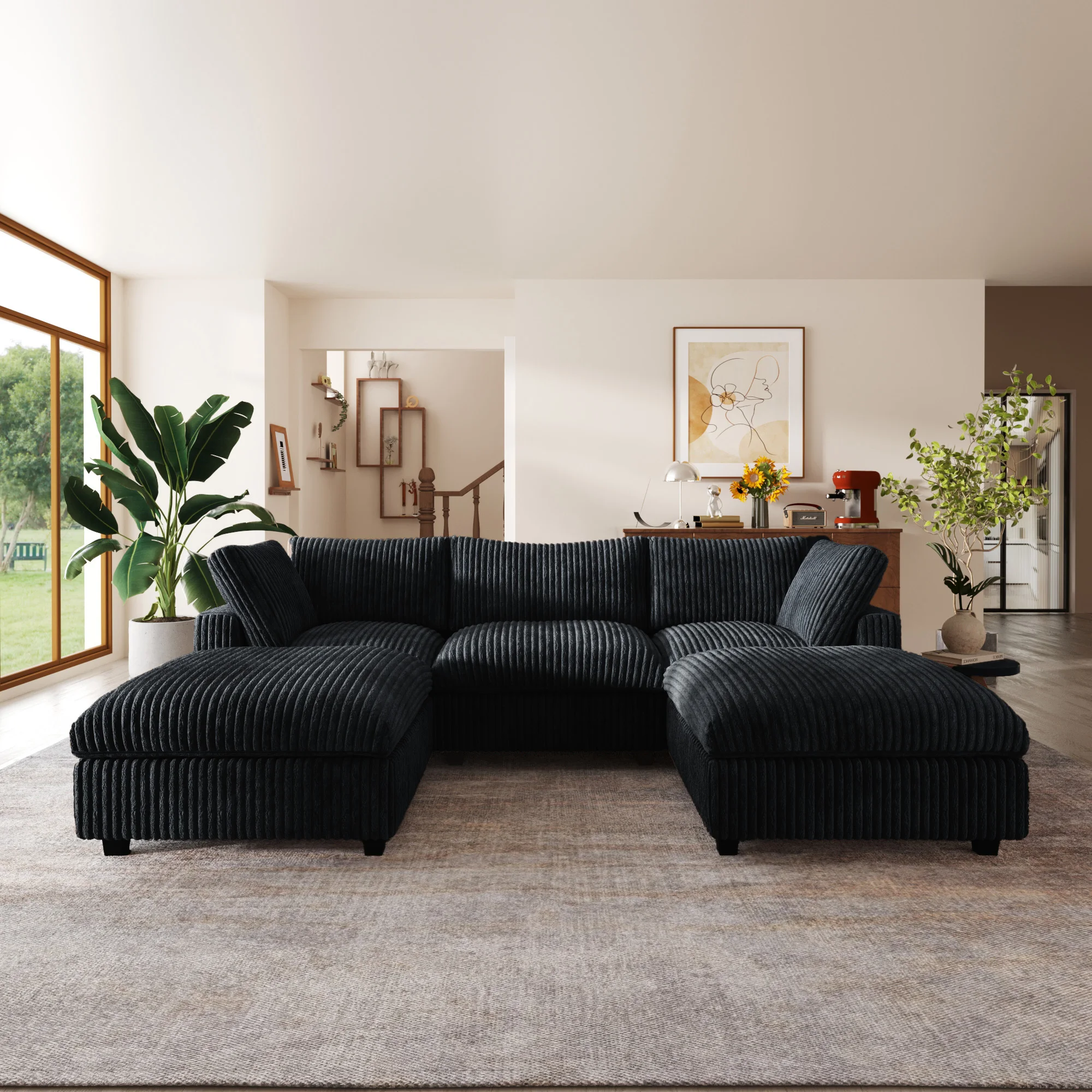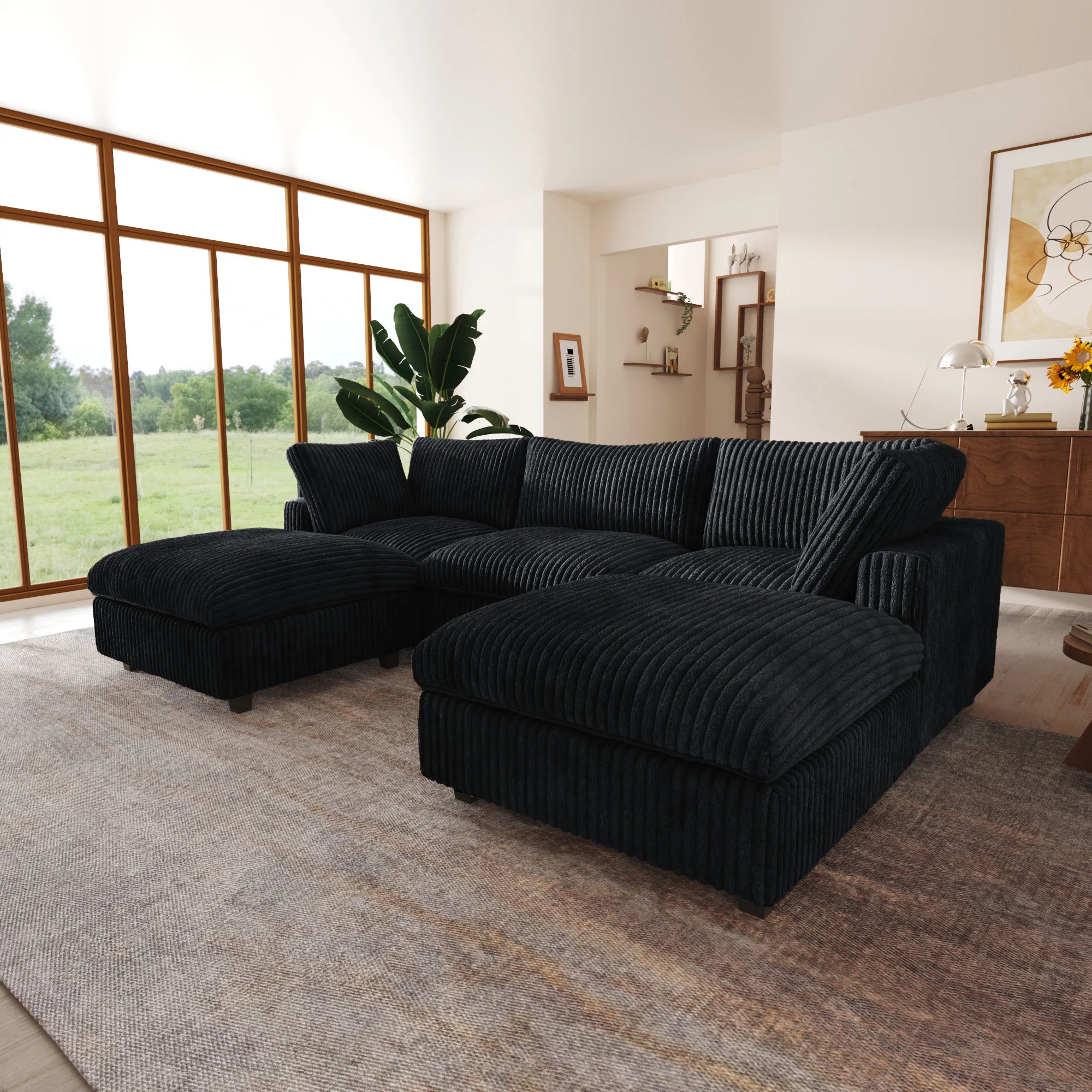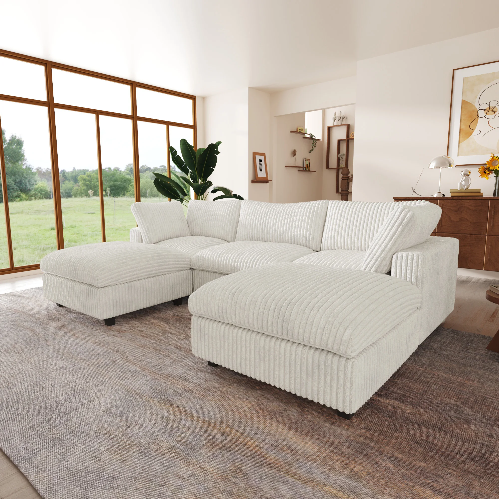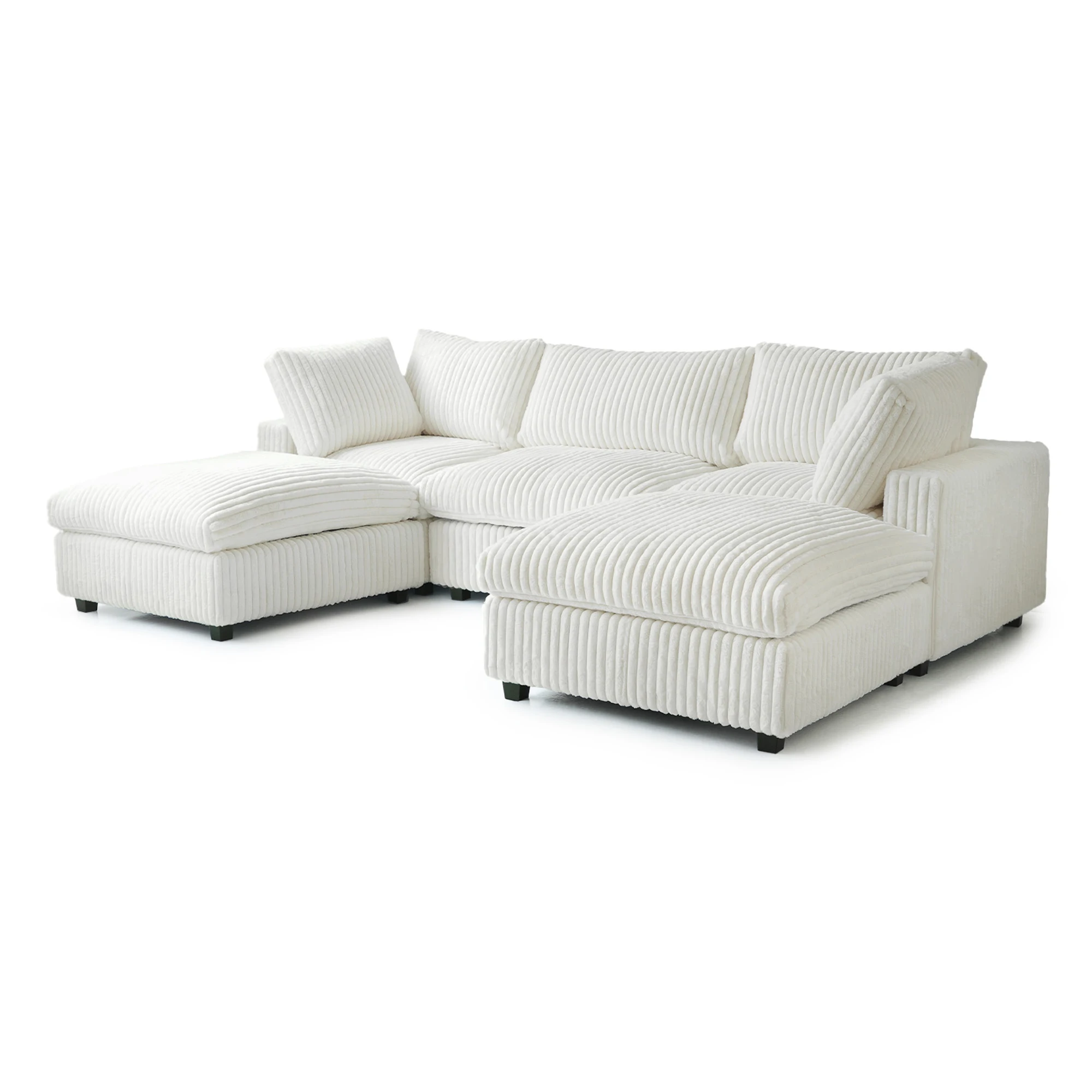 118'' Comfy Plush Fabric Sectional Sofa Couch Modula U-shape Upholstered Couch 3 Seats with 2 Ottomans for Living Room Sofa Set