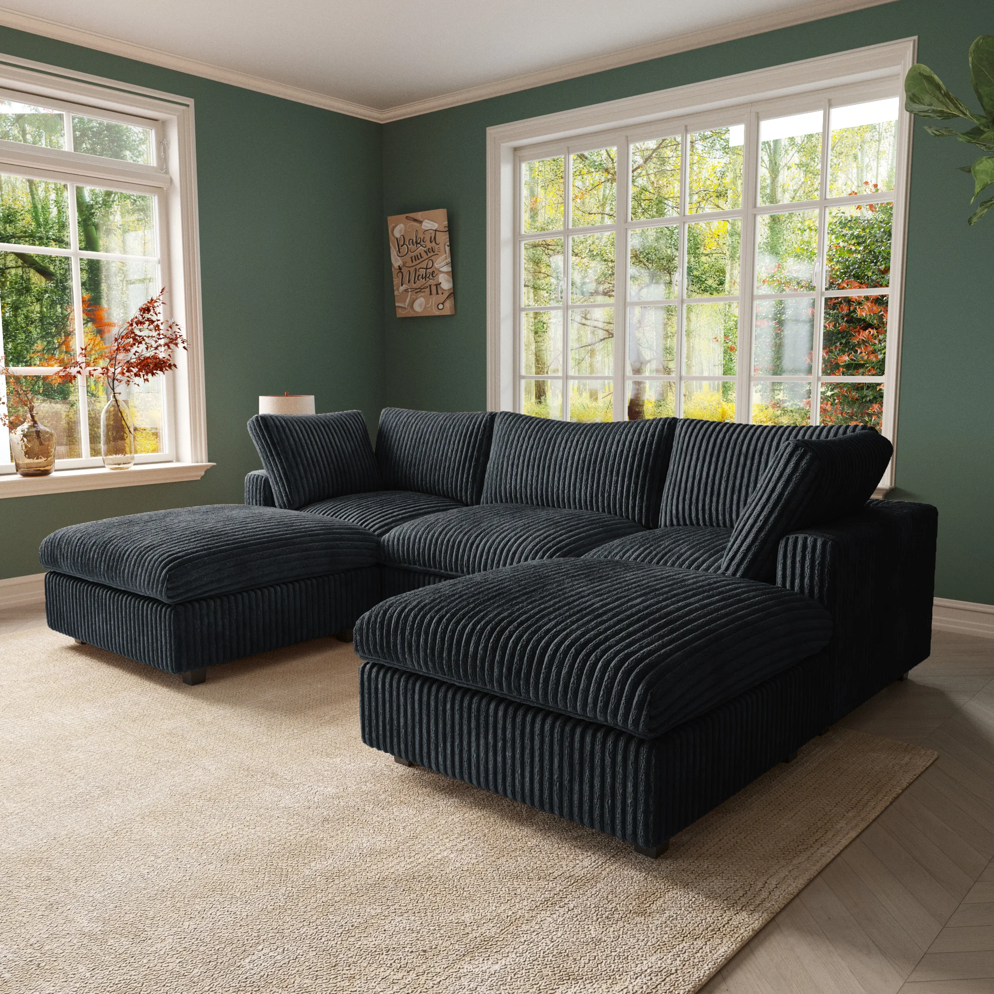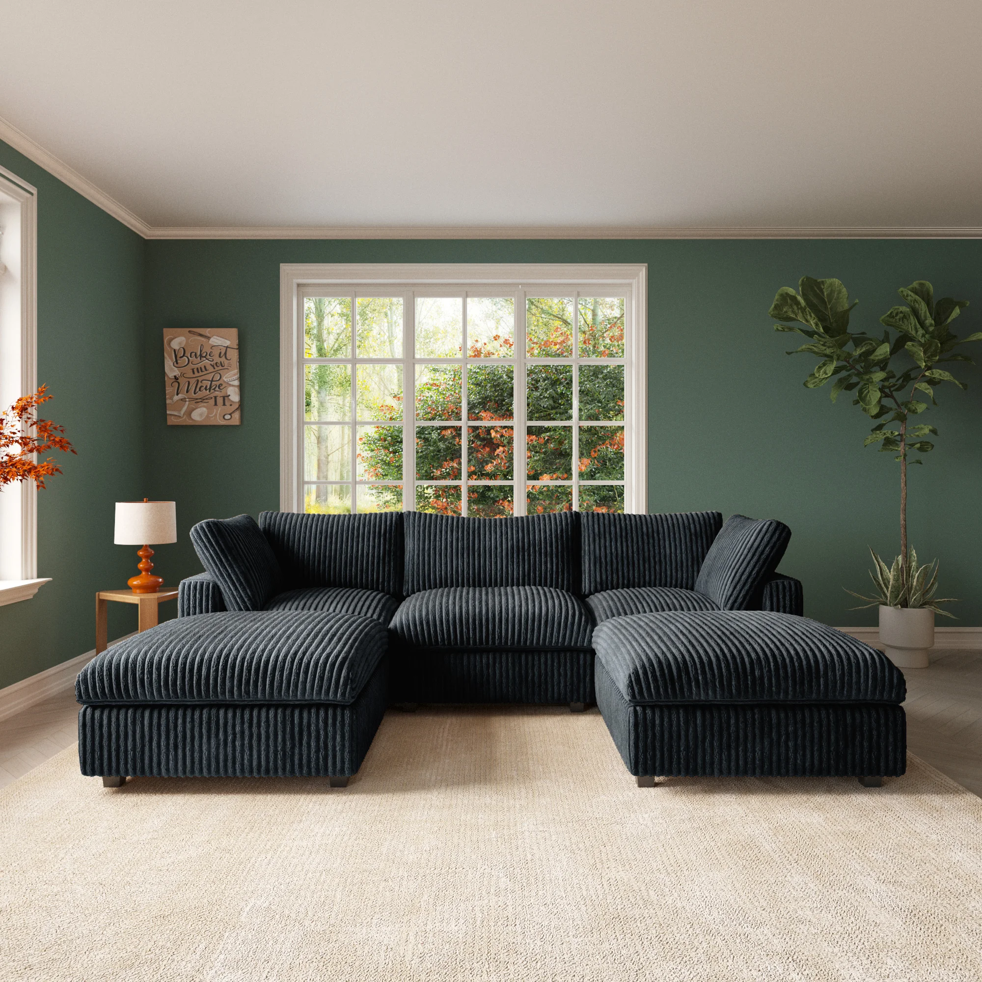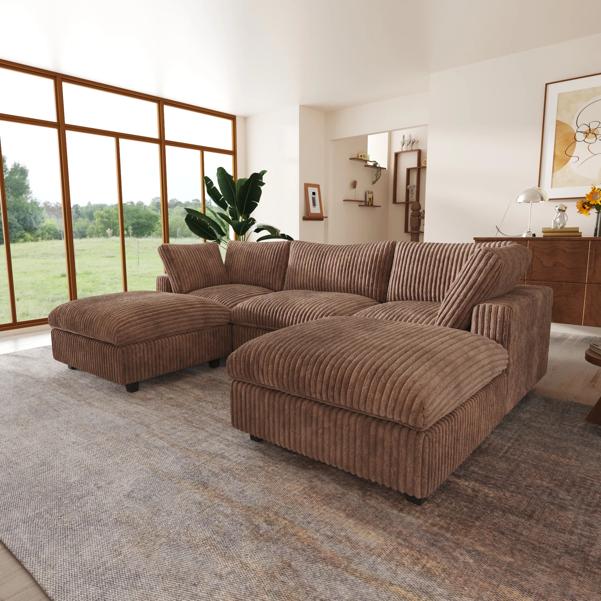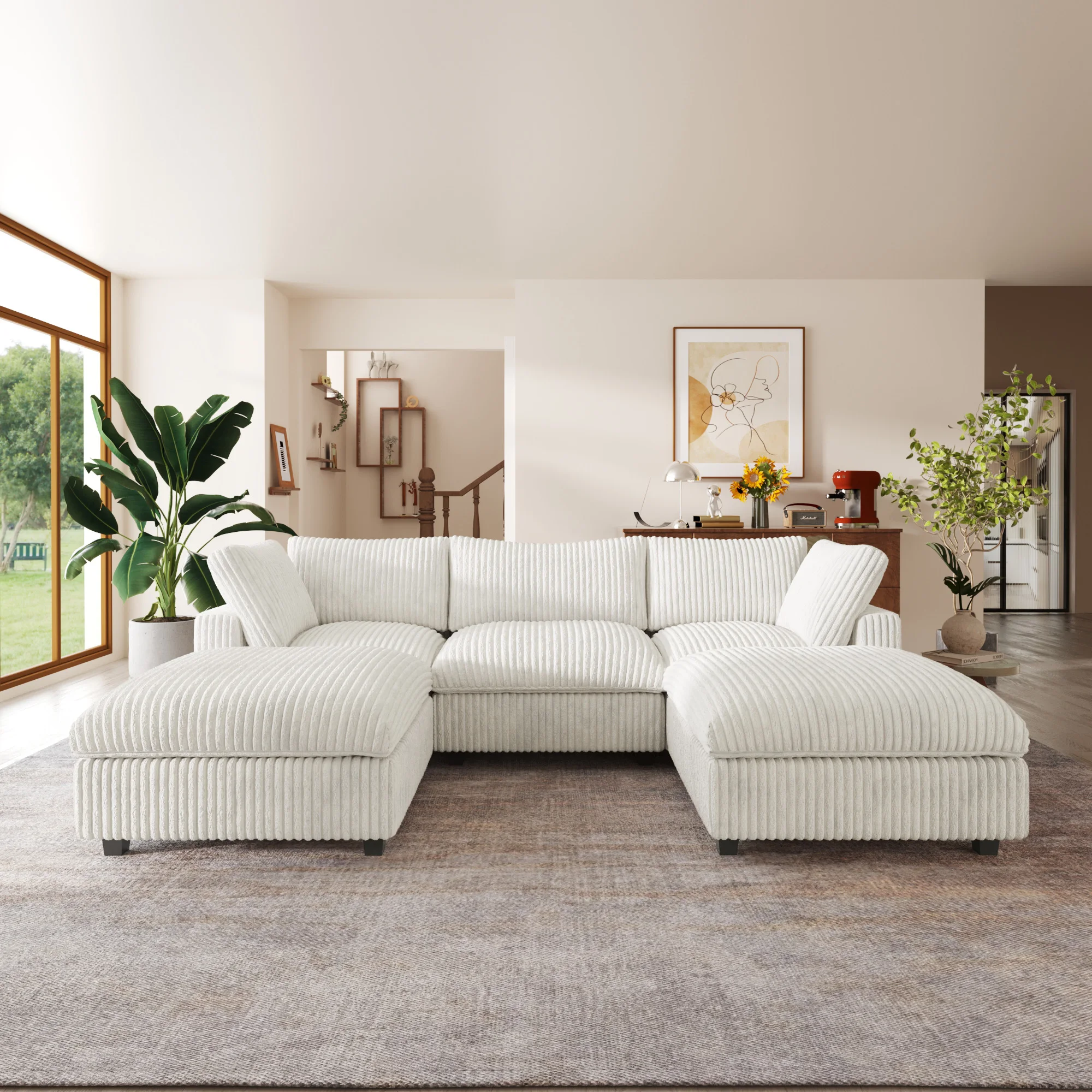 118'' Comfy Plush Fabric Sectional Sofa Couch Modula U-shape Upholstered Couch 3 Seats with 2 Ottomans for Living Room Sofa Set
