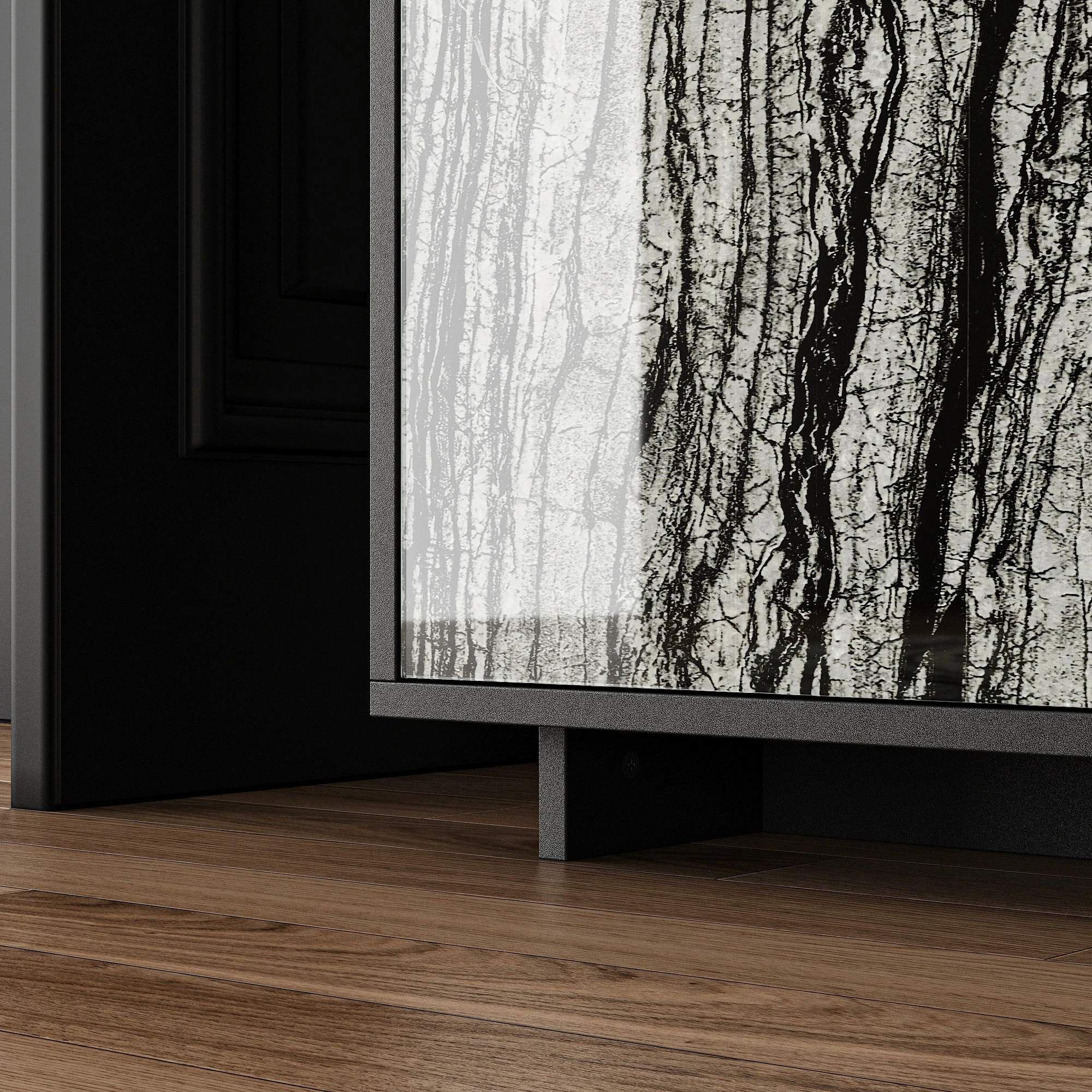 【Chic Appearance】Dazzle guests with stone - textured glass doors that blend modern art with function. Silver electroplated legs add a sleek, elevated look – your space will feel instantly stylish.