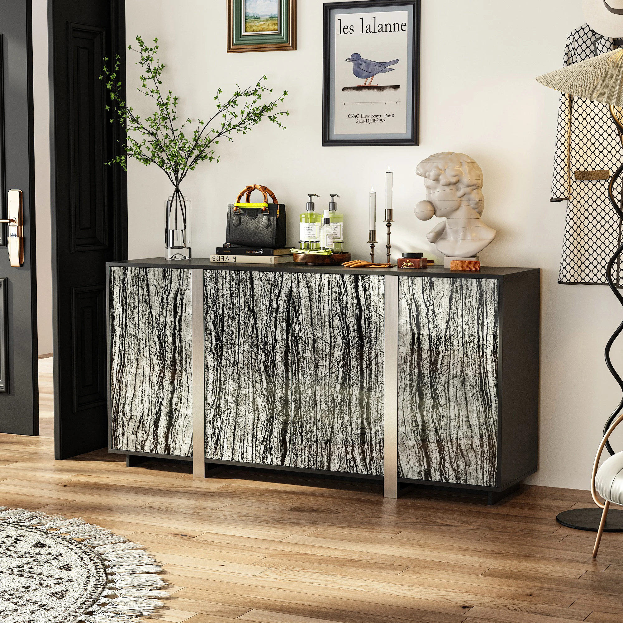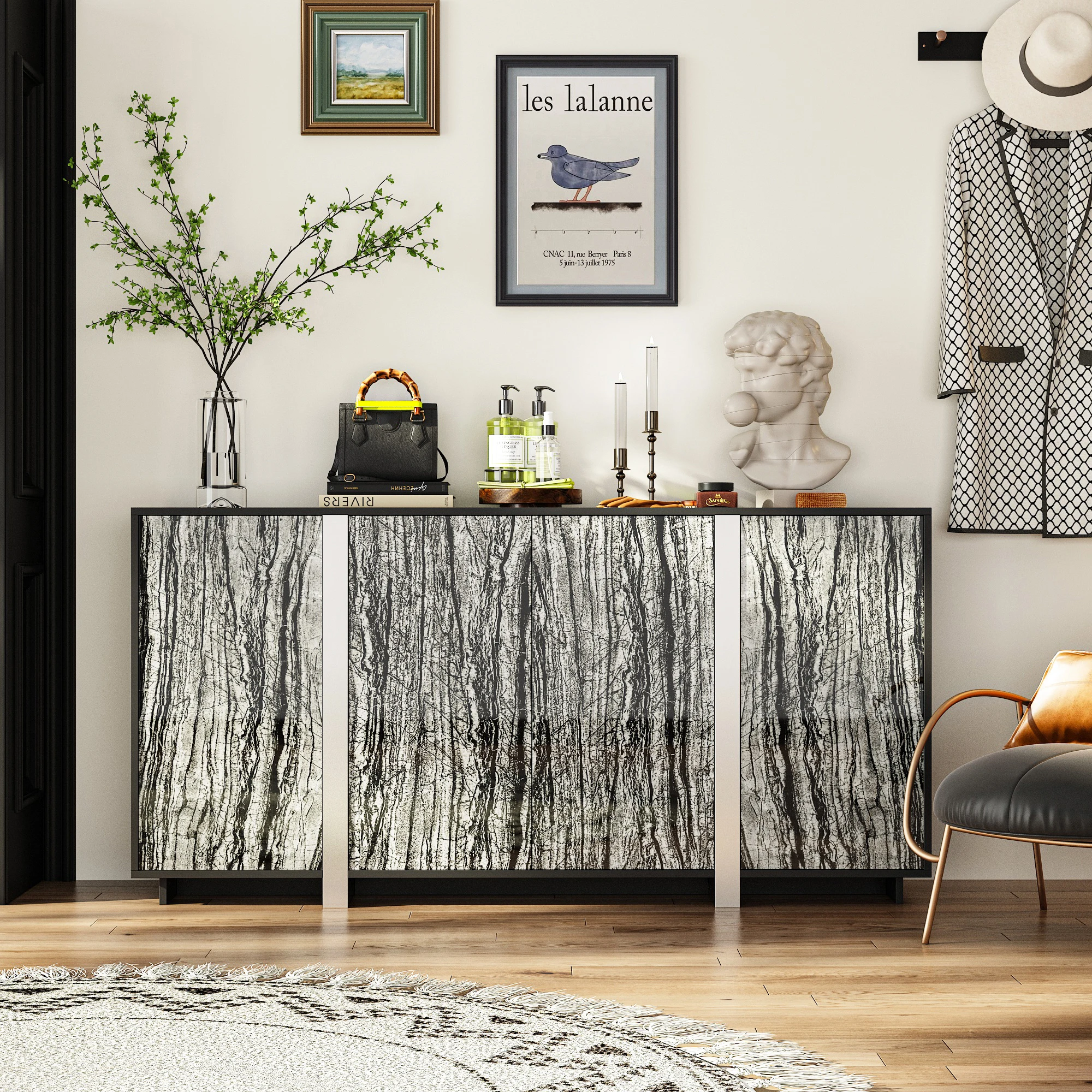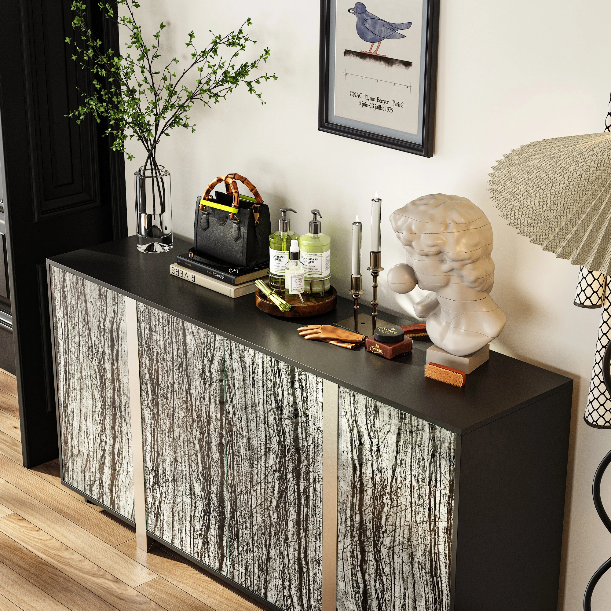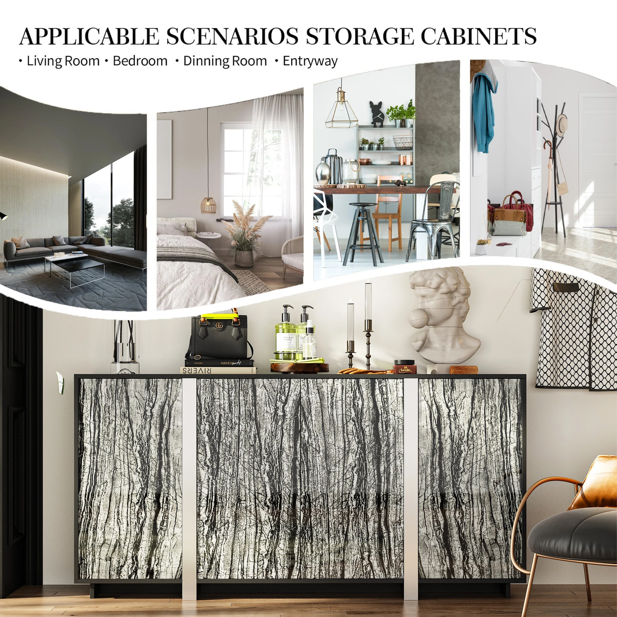 Transform chaos into curated style with this multi - scene storage cabinet. Featuring 4 stone - patterned glass doors and 2 roomy shelves, it's a storage powerhouse for entryways, kitchens, living rooms, or dining rooms. Tuck shoes, organize cookware, display decor – whatever you need! Silver electroplated legs add modern flair, while durable P2 - grade MDF (with scratch - resistant melamine) ensures lasting use.