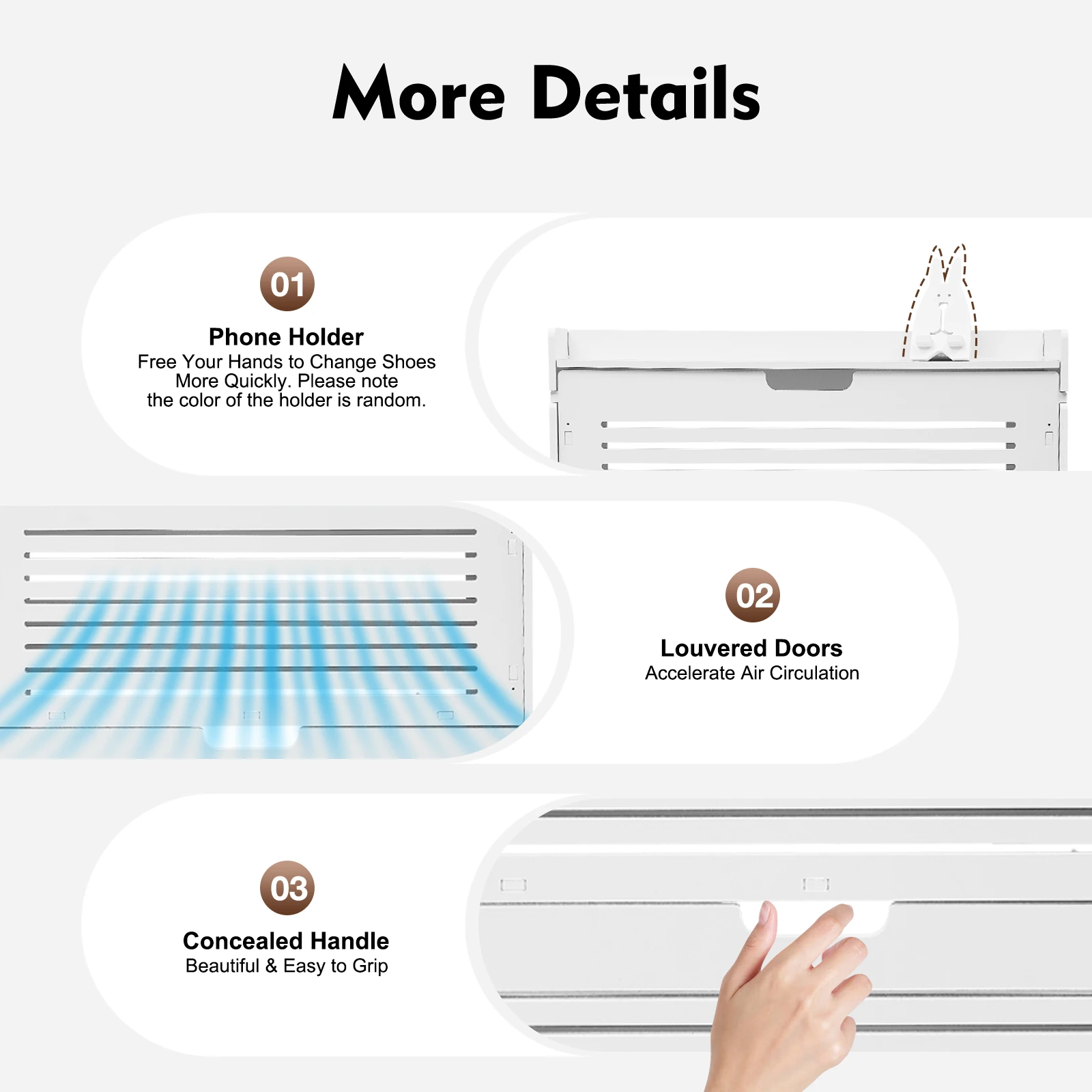 Tipping Bucket Design: The entire shoe cabinet features a tipping bucket design for easy opening and closing, making it very easy to use. It also keeps dust out of the shoe cupboard.