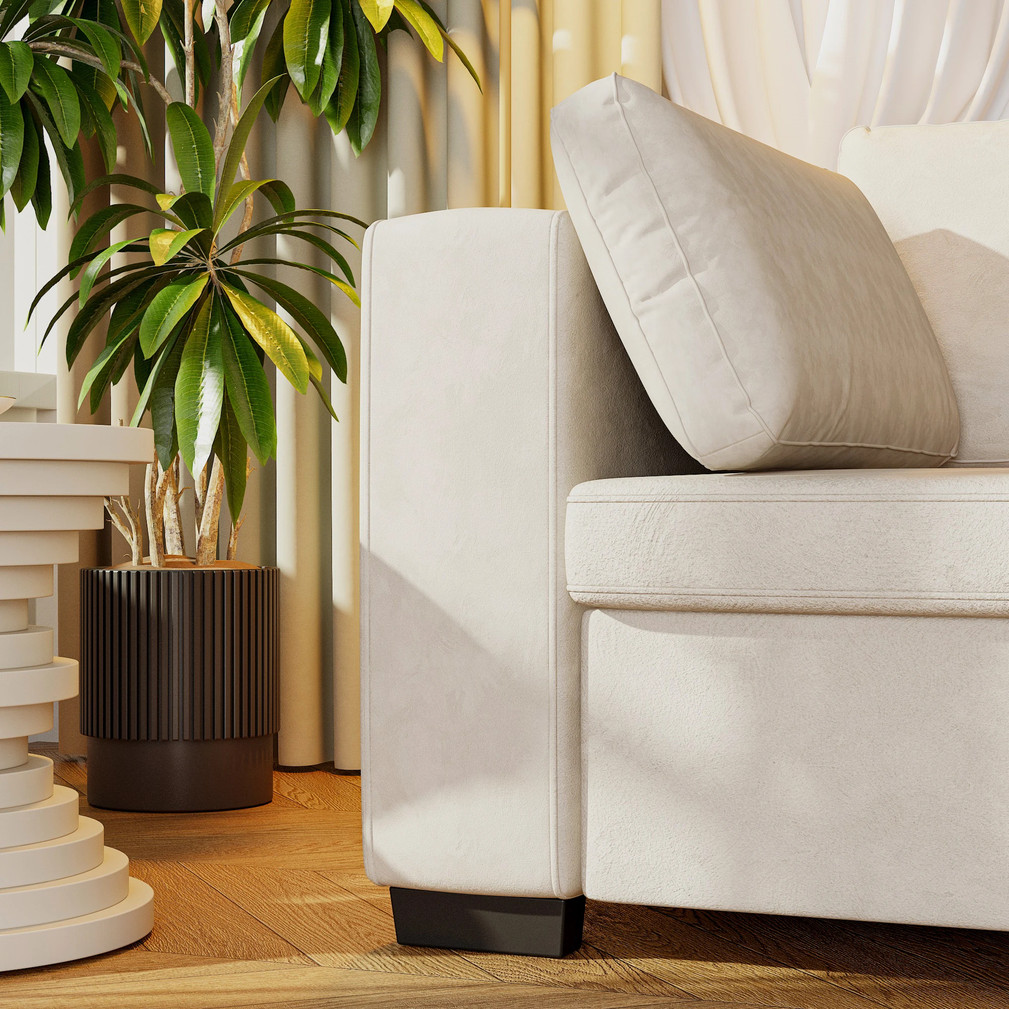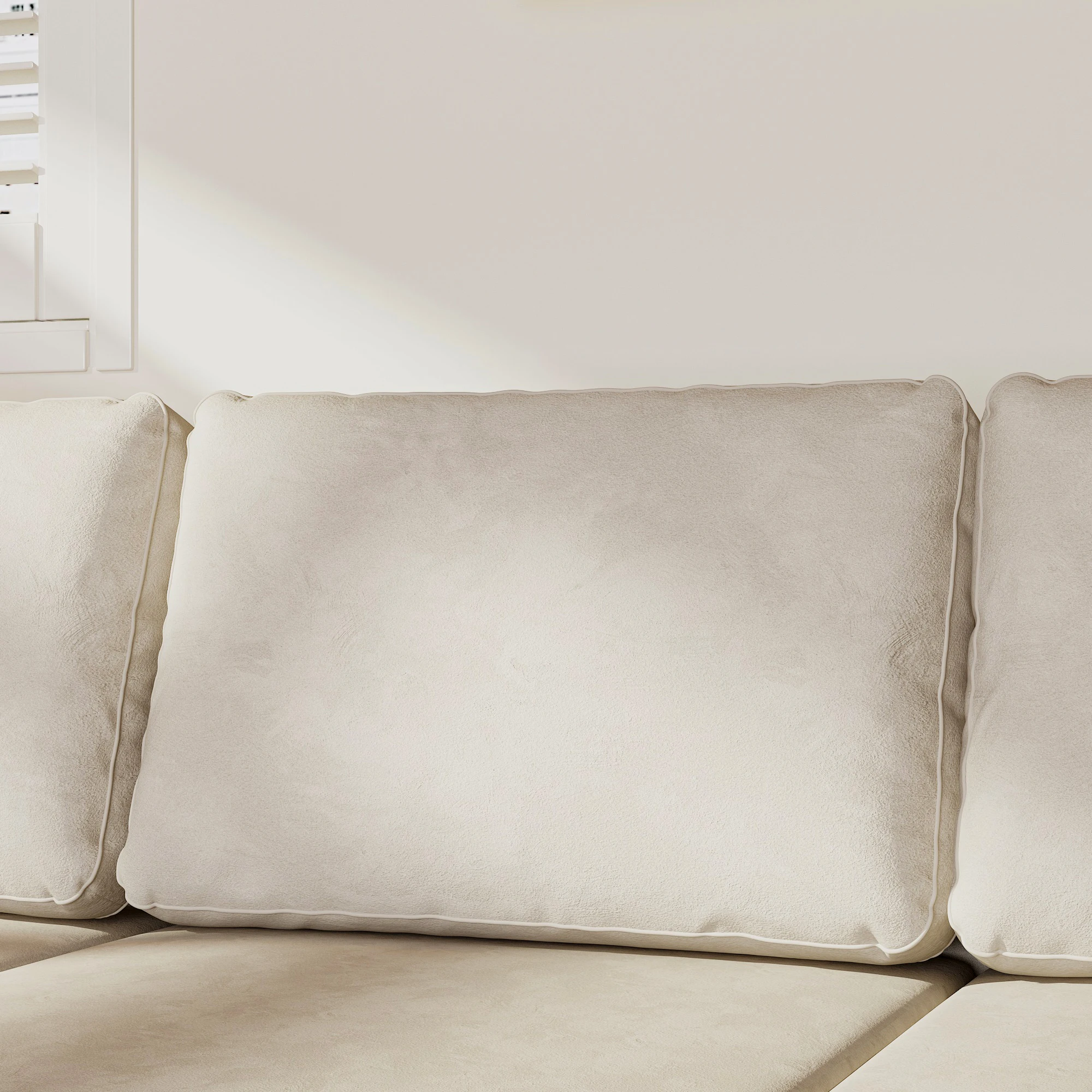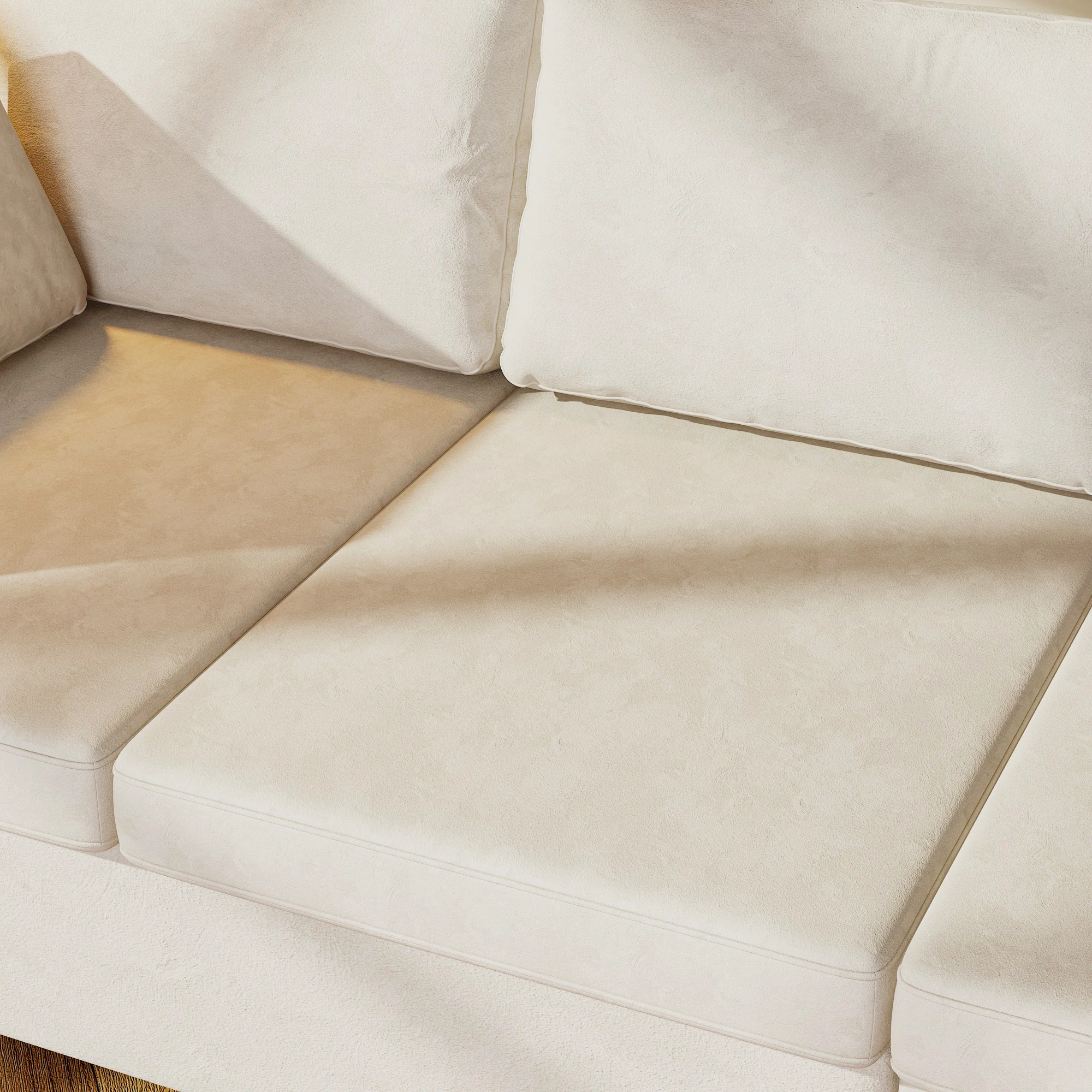 4 Seater Comfy Couch with 6 Pillows, Modern Sofa with Wooden Frame & L-Shaped Legs for Living Room, White