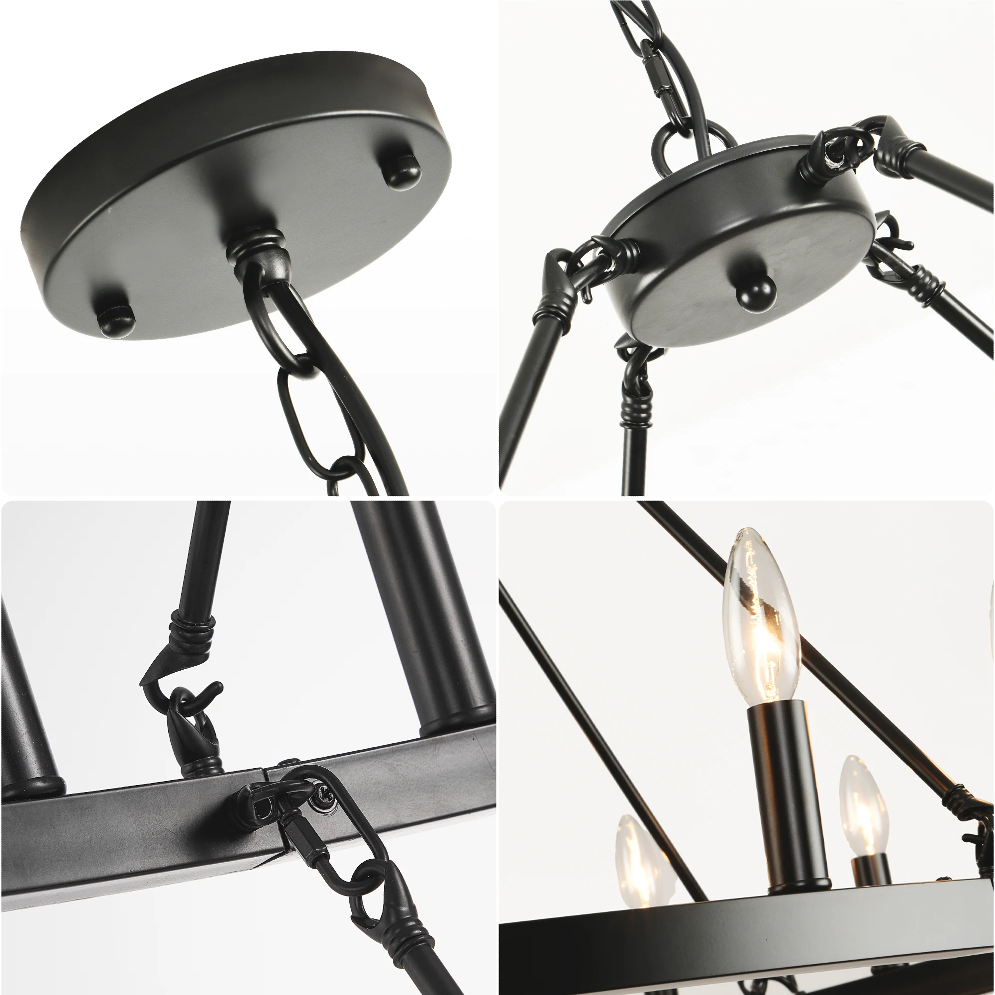 ✅【Easy to Assemble & Easy To Clean】Although the large black chandelier is easy to assemble, we highly recommend that you seek a qualified electrician and have a partner help you with the installation process due to the size and weight of the fixture, as well as safety concerns. This Farmhouse Wagon Wheel Chandelier No glass lampshades to collect dust and insects, making this high ceiling chandelier easy to clean and look new, as well as easy to replace light bulbs. Perfect for your home!