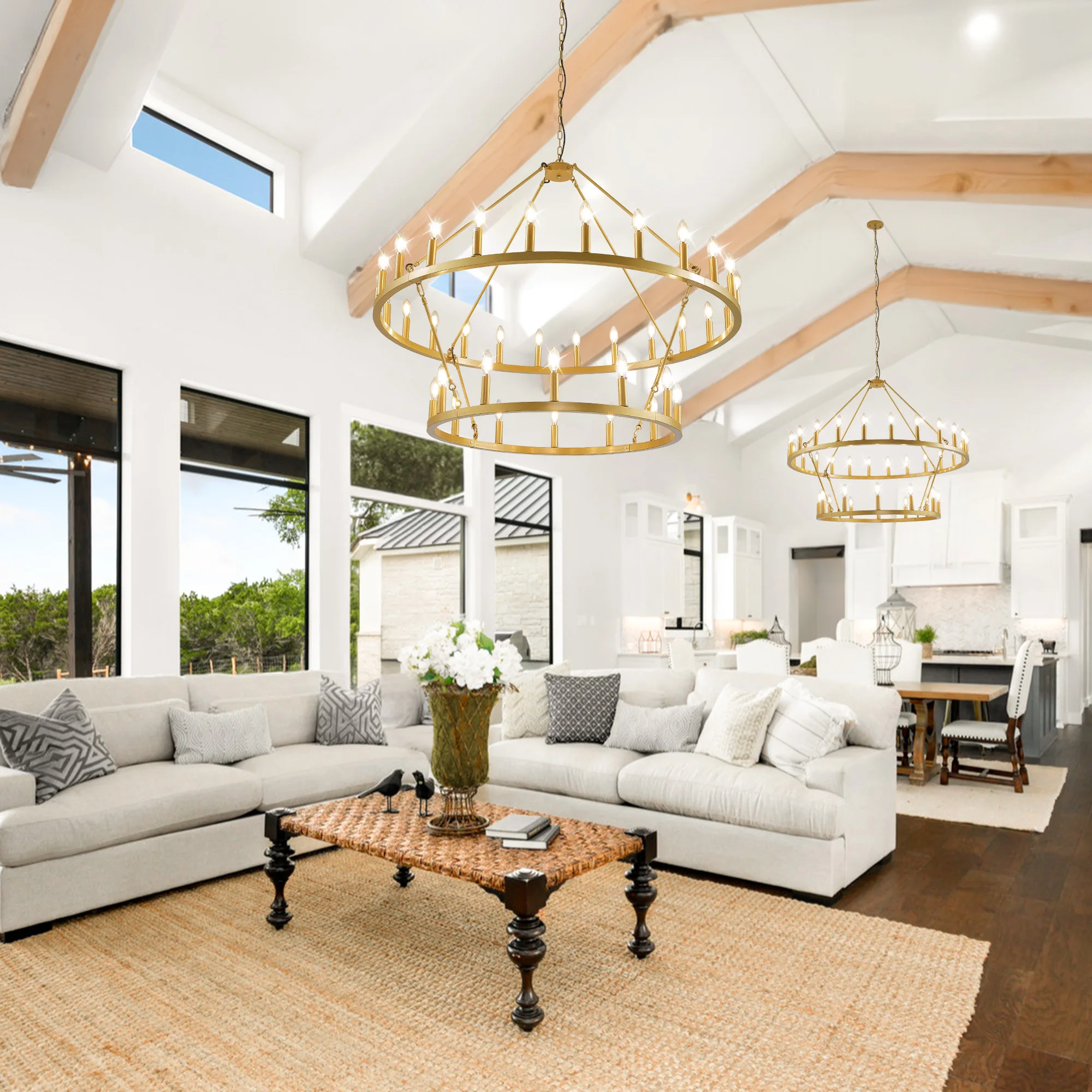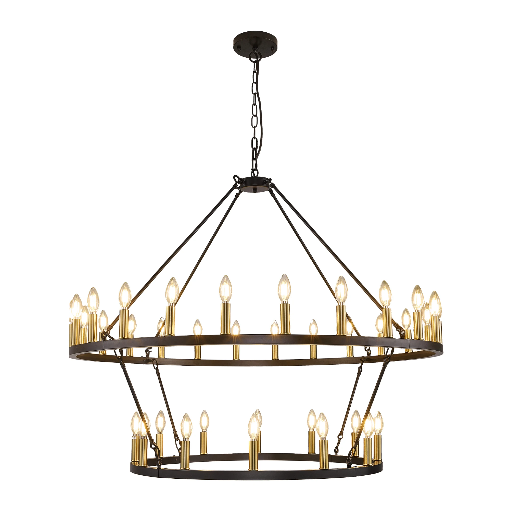 47'' Extra Large Wagon Wheel Chandelier 2 Tier 36-Lights Farmhouse Pendant Light Fixture Hanging Lighting for High Ceiling