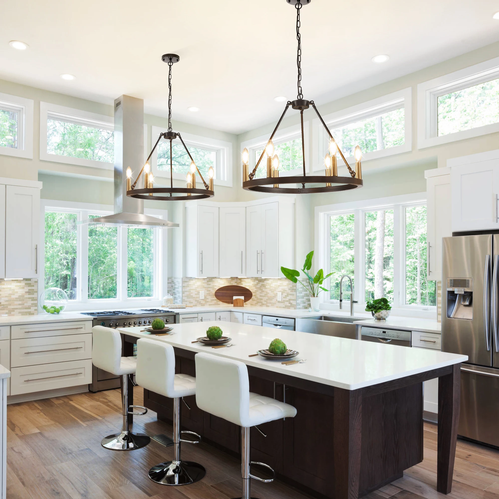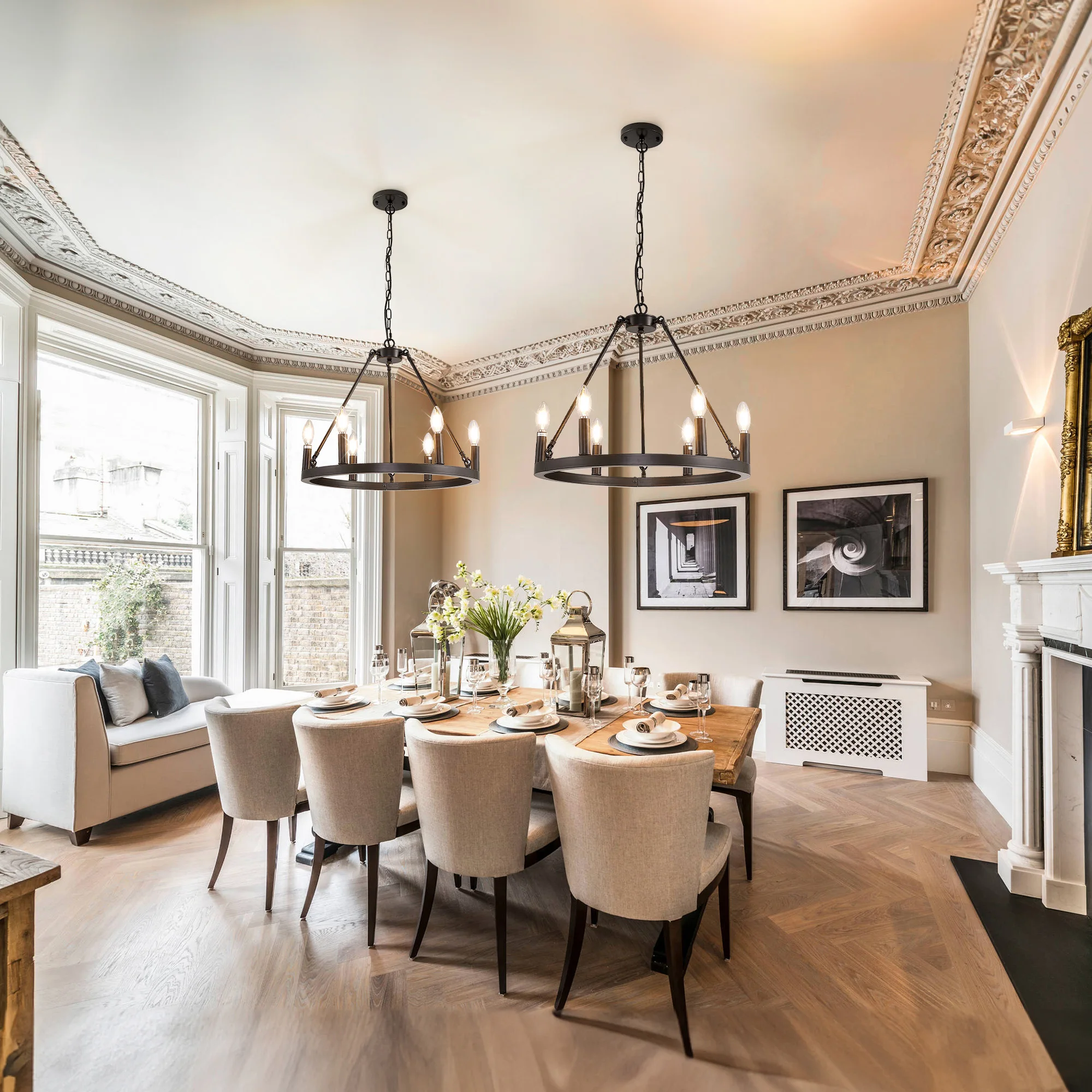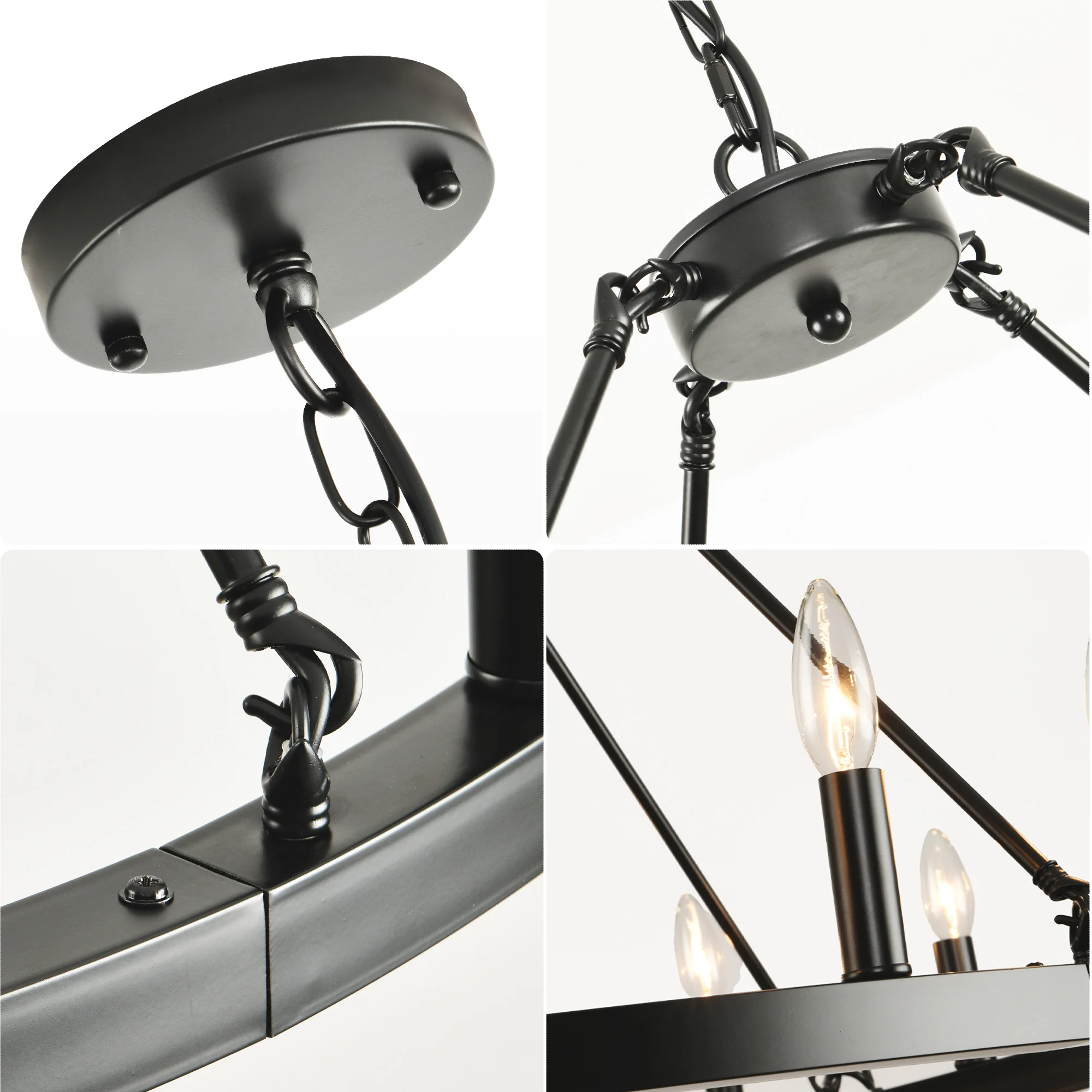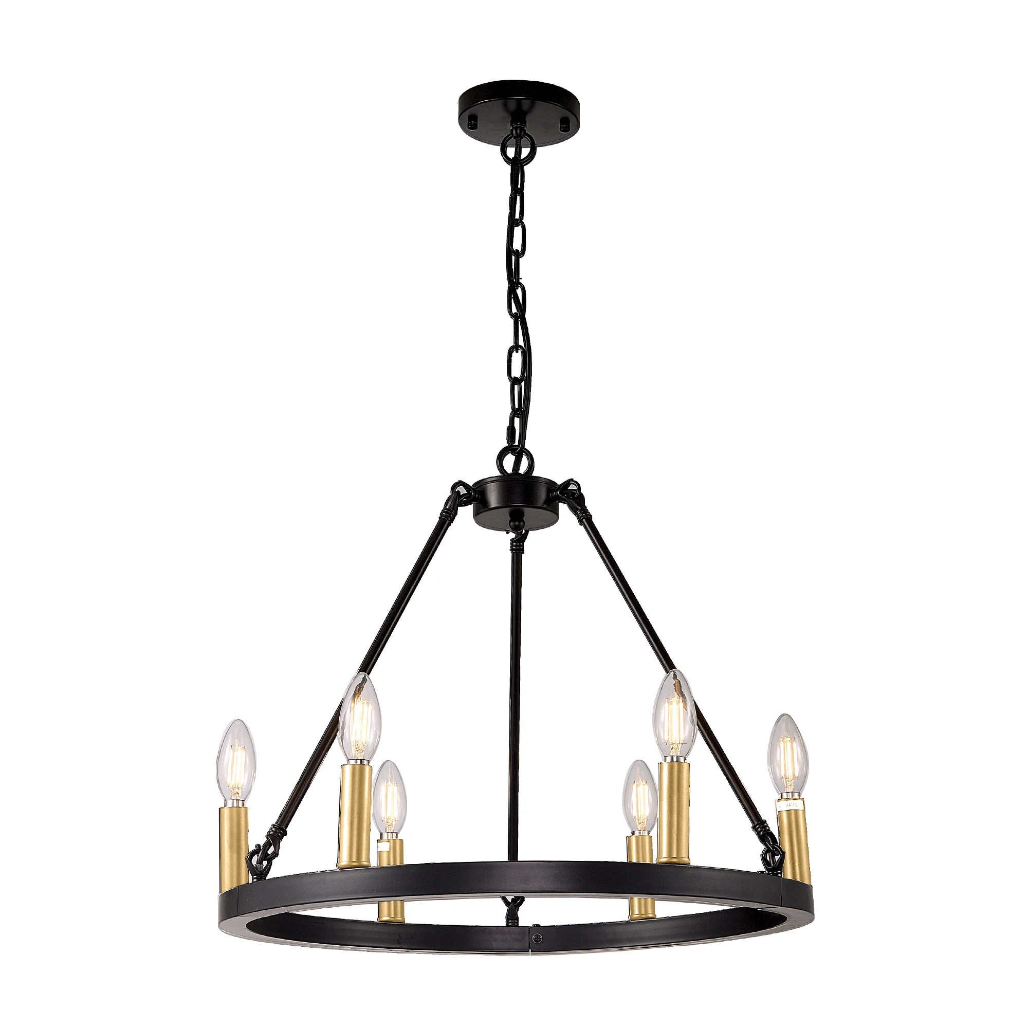 6-Light Black Wagon Wheel Chandelier 20.65 inch Candle Pendant Light Modern Rustic Farmhouse Large Chandeliers for Living Room