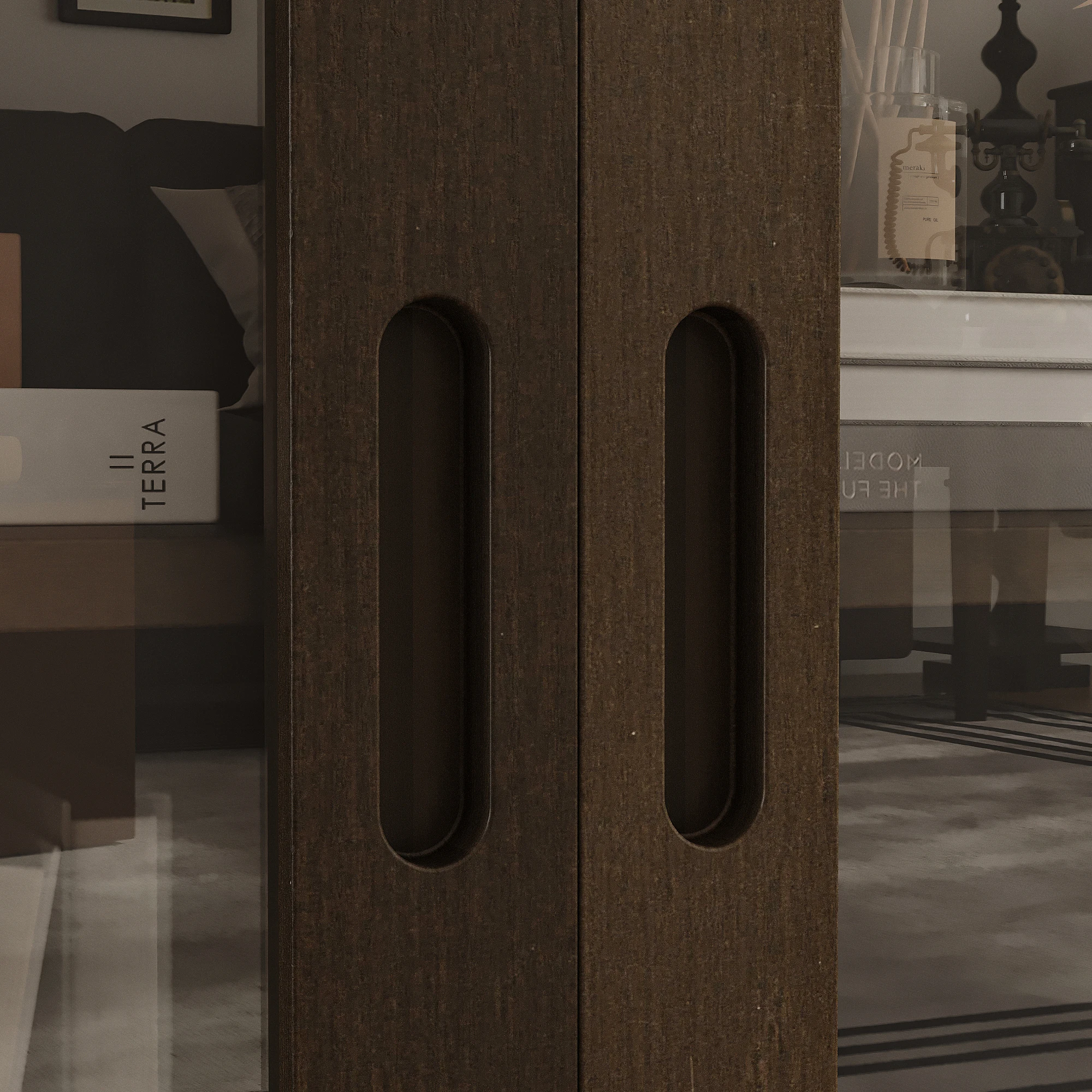 Sliding door design: The sliding door design facilitates access to stored items while maintaining a clean and tidy appearance.