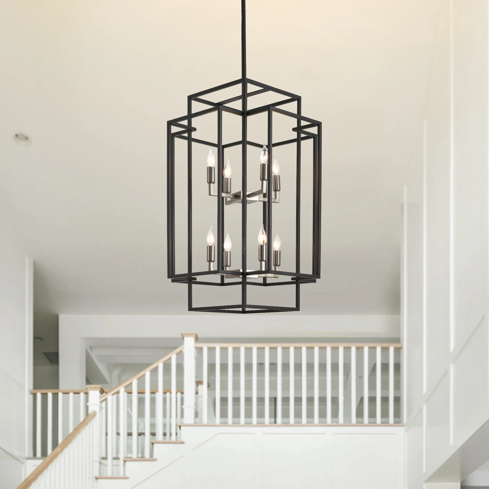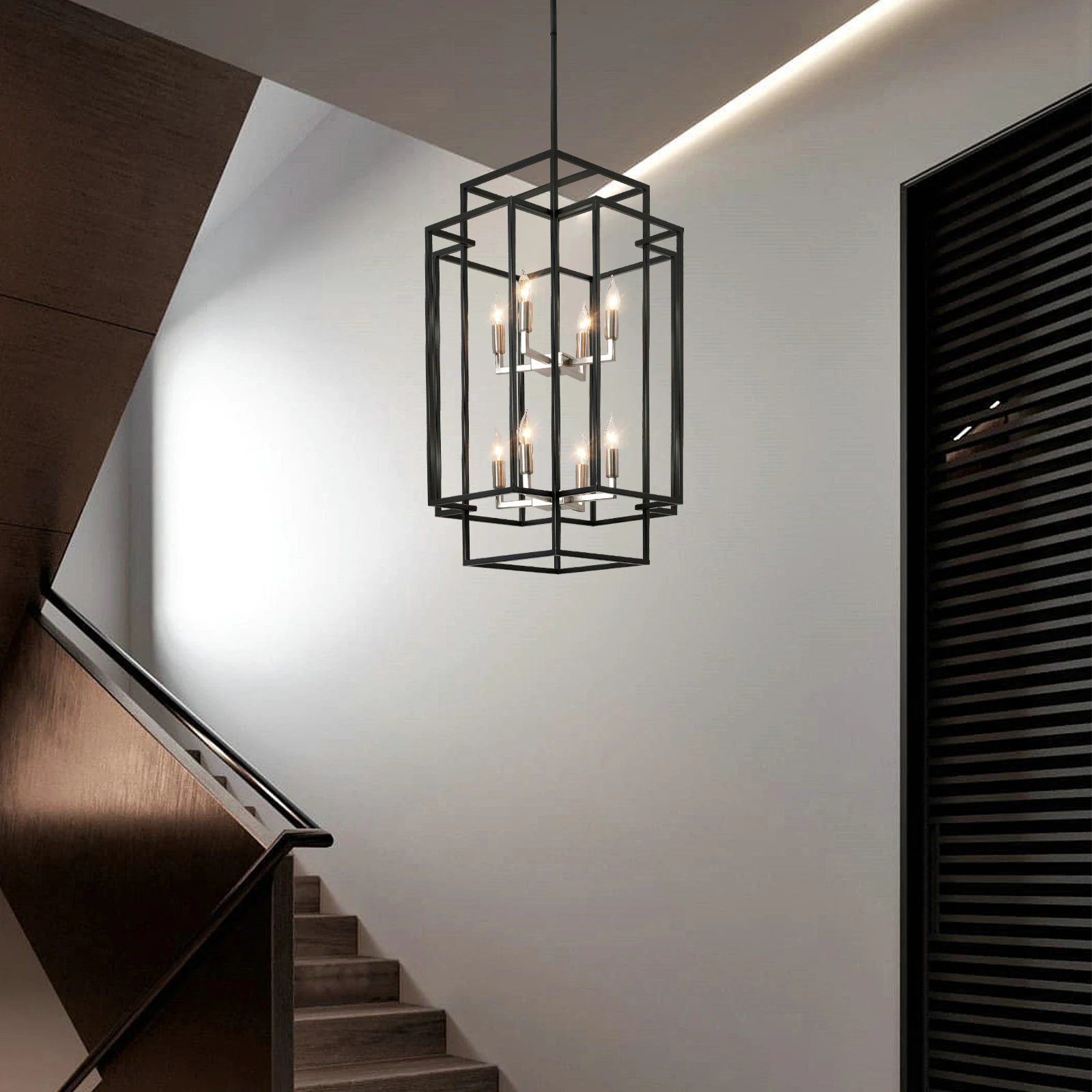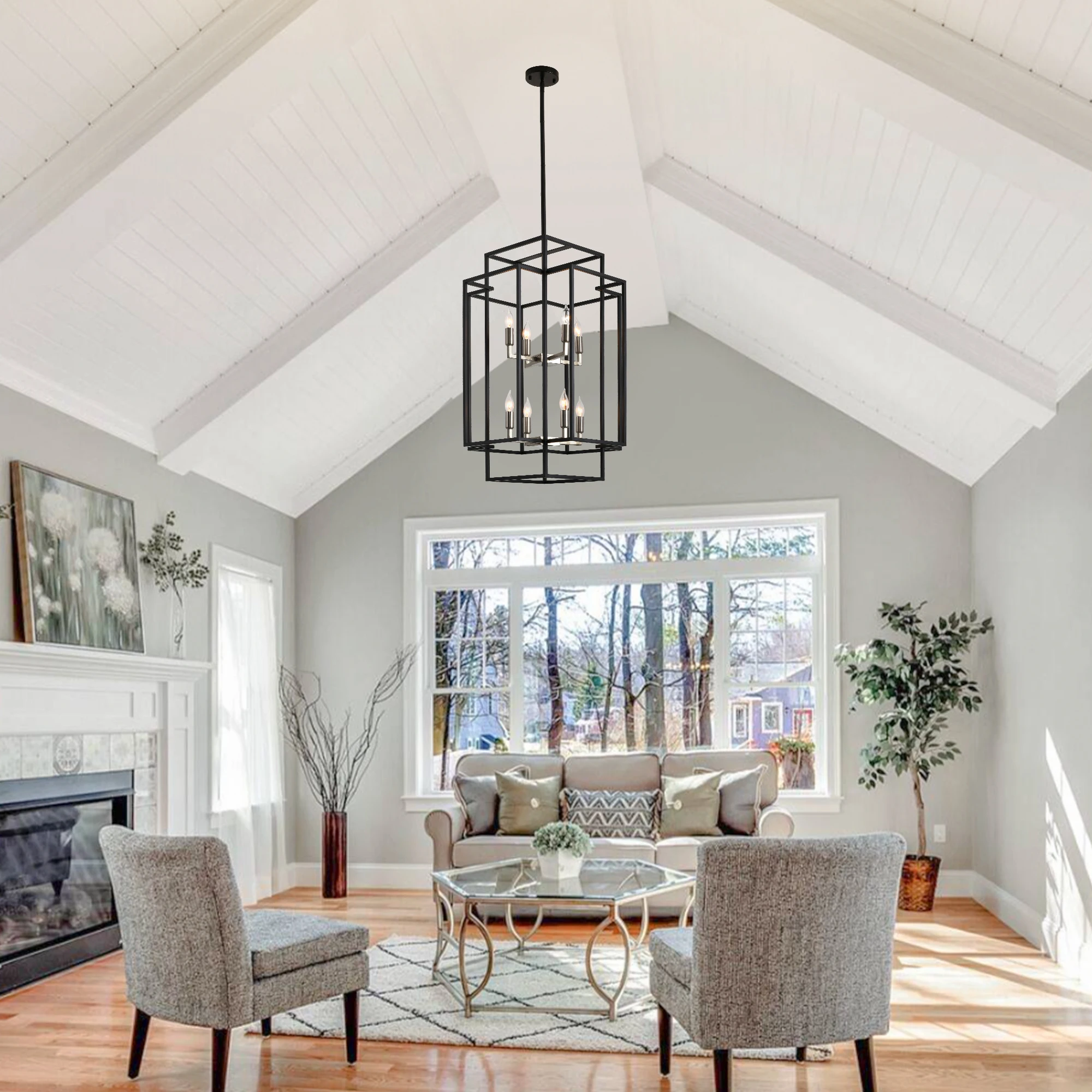 8-Lights Lantern Tiered Pendant Light Farmhouse Chandeliers for High Ceilings