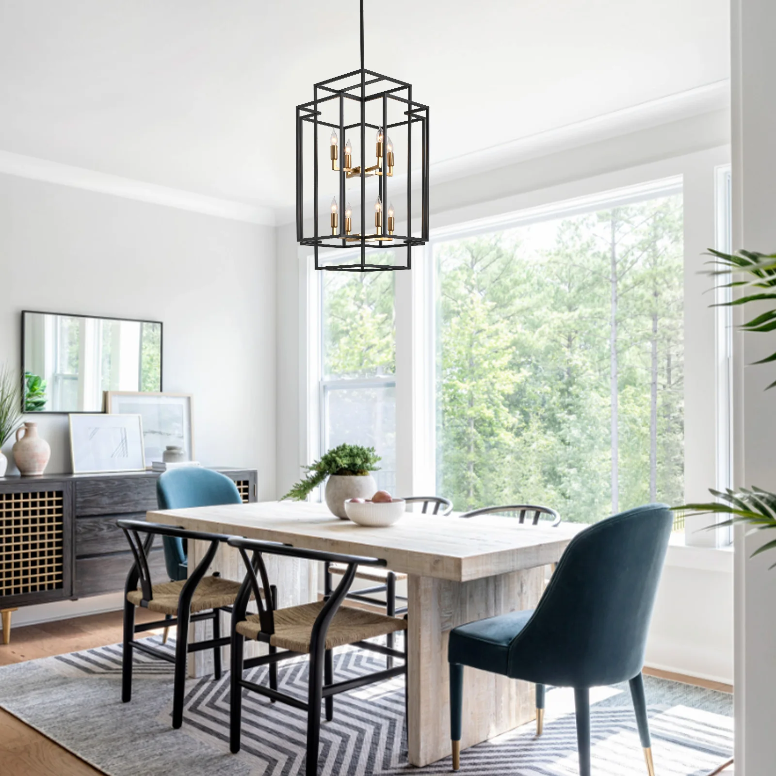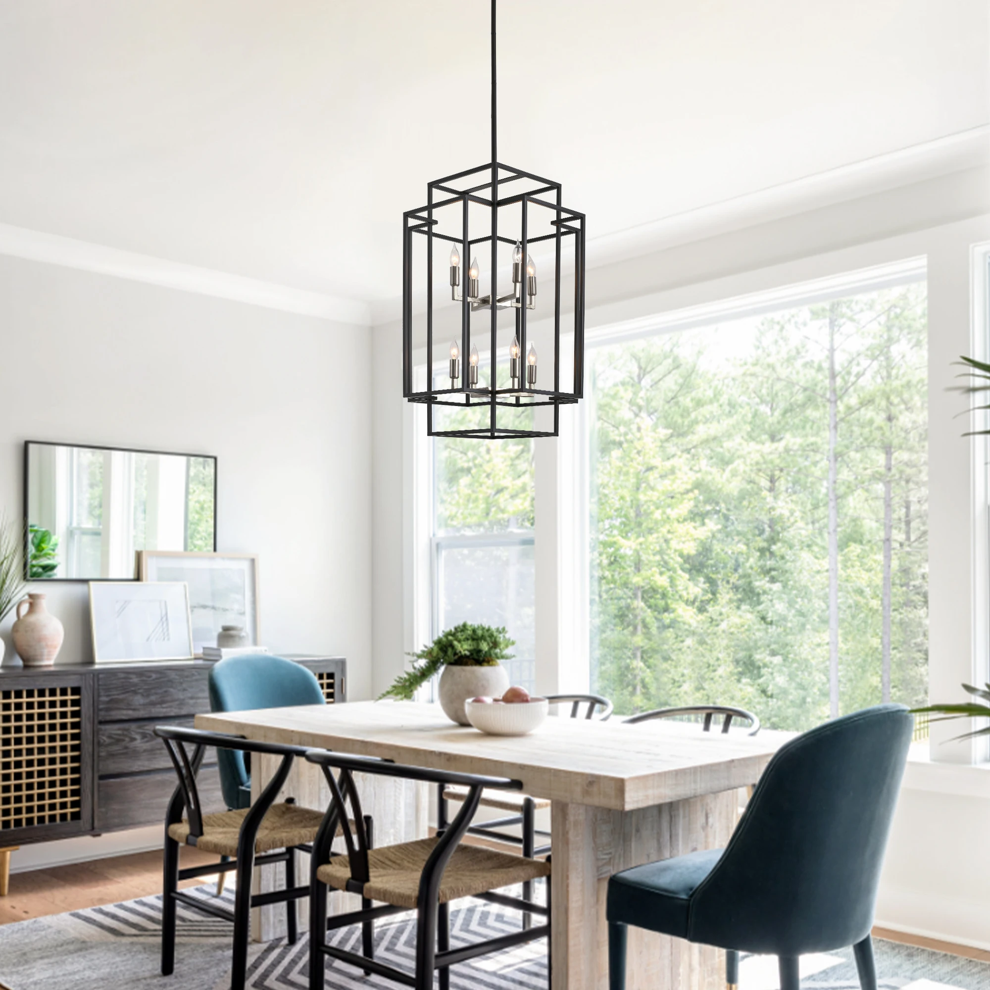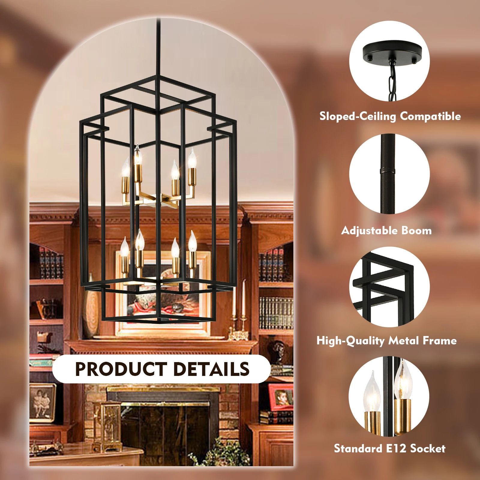 8-Lights Lantern Tiered Pendant Light Farmhouse Chandeliers for High Ceilings