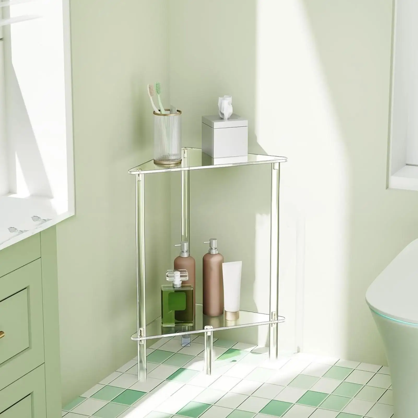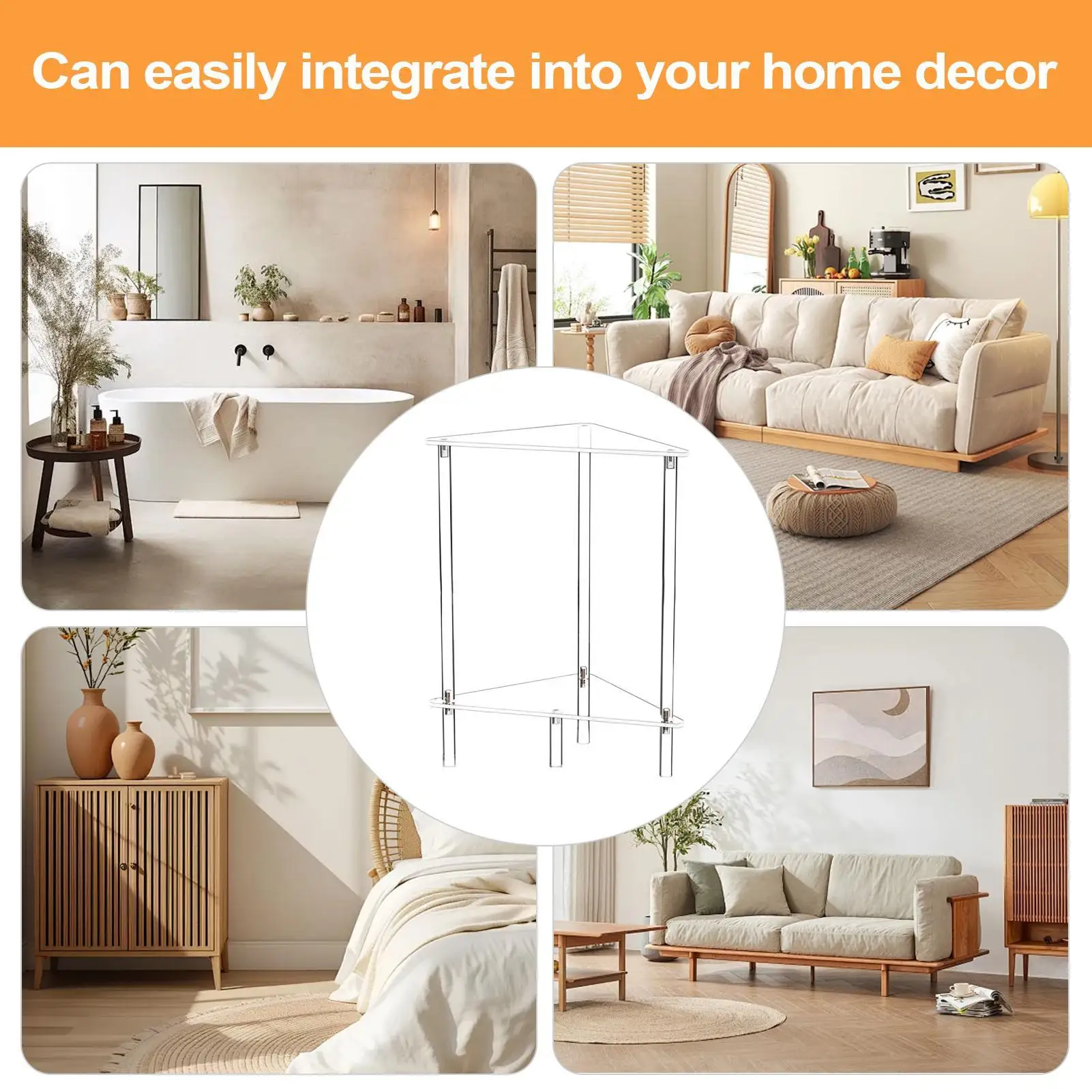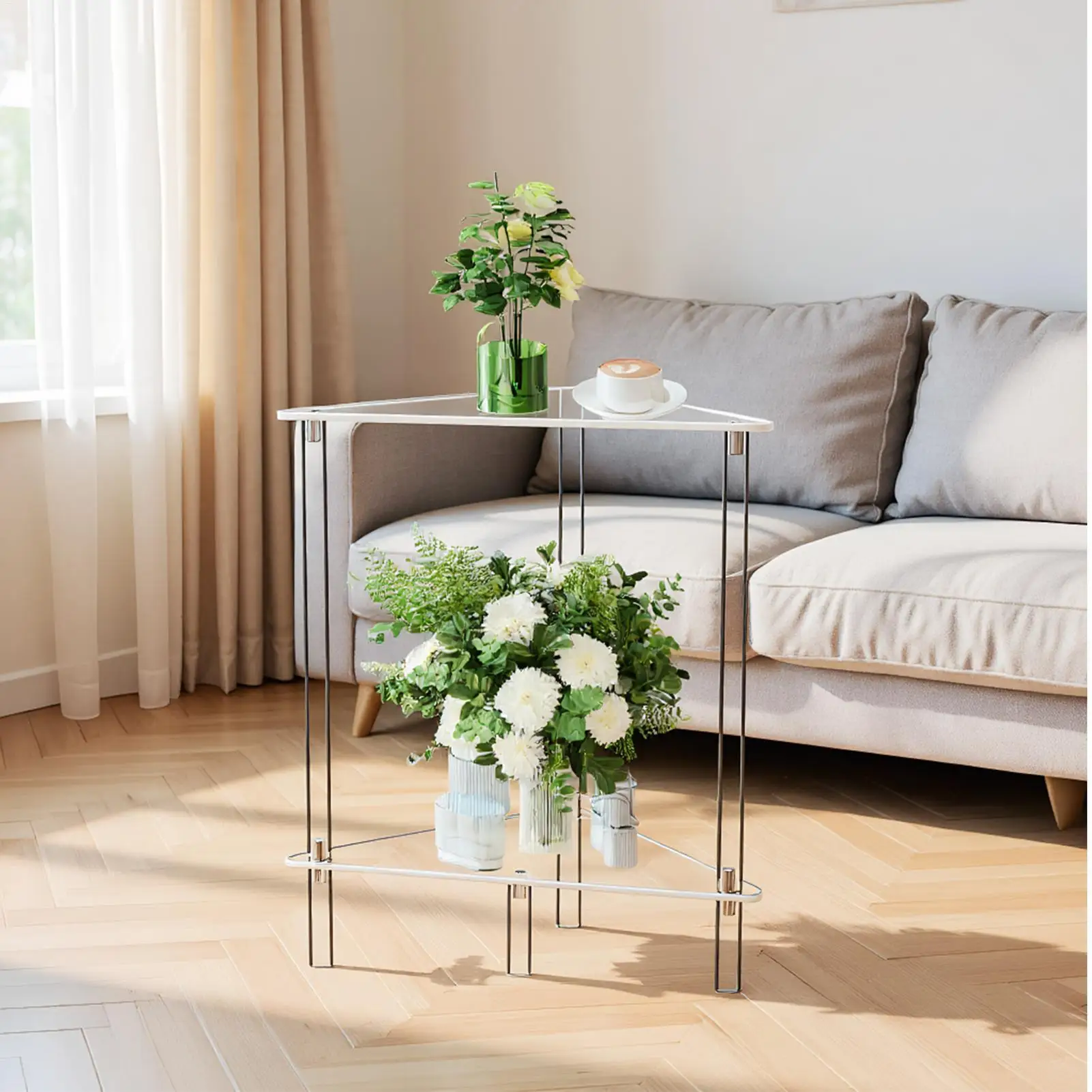 Enhance your home with this modern acrylic side table, featuring a 2-tier structure that blends practicality and decorative charm, perfect for bedrooms, bathrooms, kitchens, living rooms, or lobbies. Its triangle design makes it an excellent choice for optimizing small spaces stylishly.