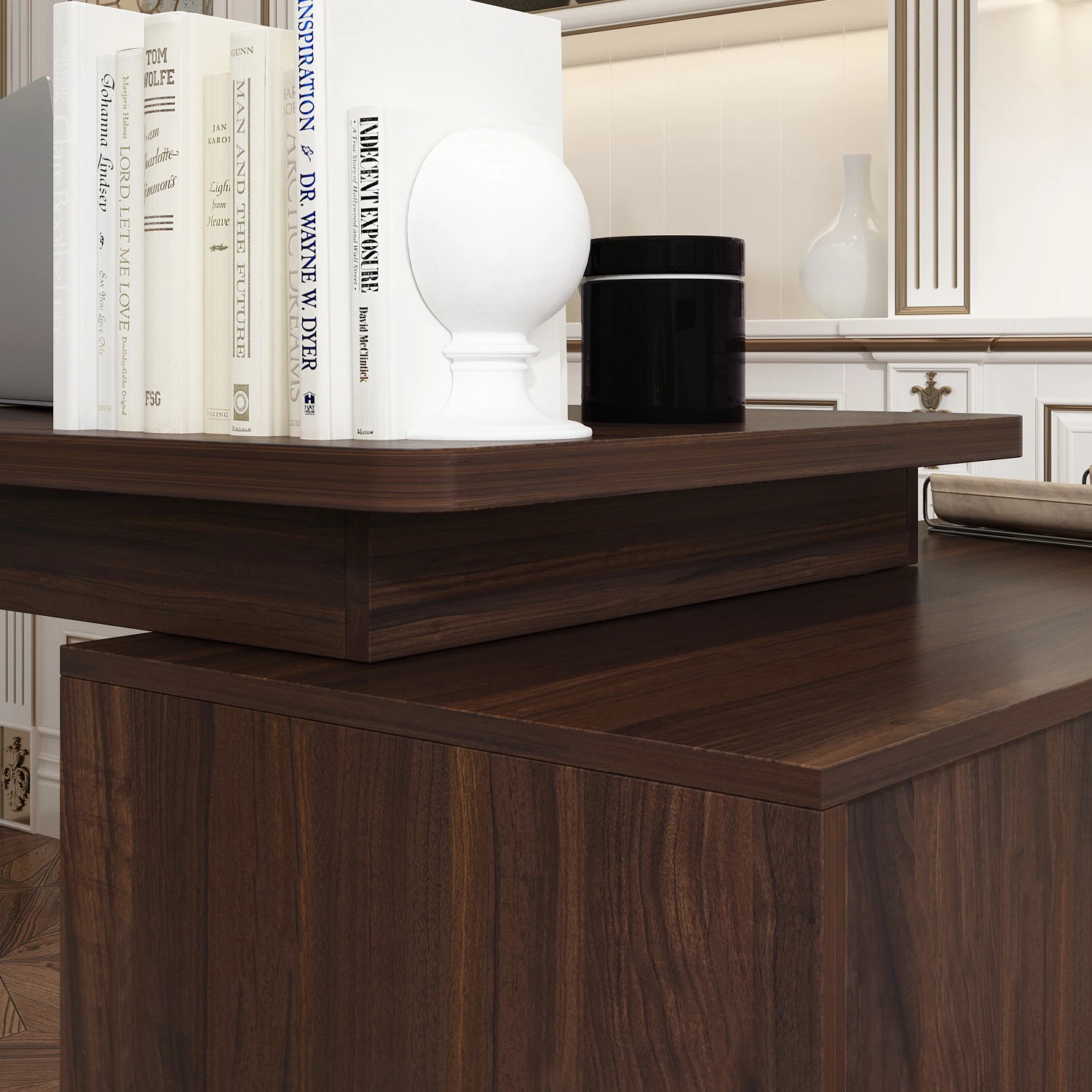【Versatile Use Cases】Perfect for a home office as a professional workstation or in the living room as a stylish display and work hub, this desk adapts to various settings, supporting both productivity and aesthetics seamlessly.