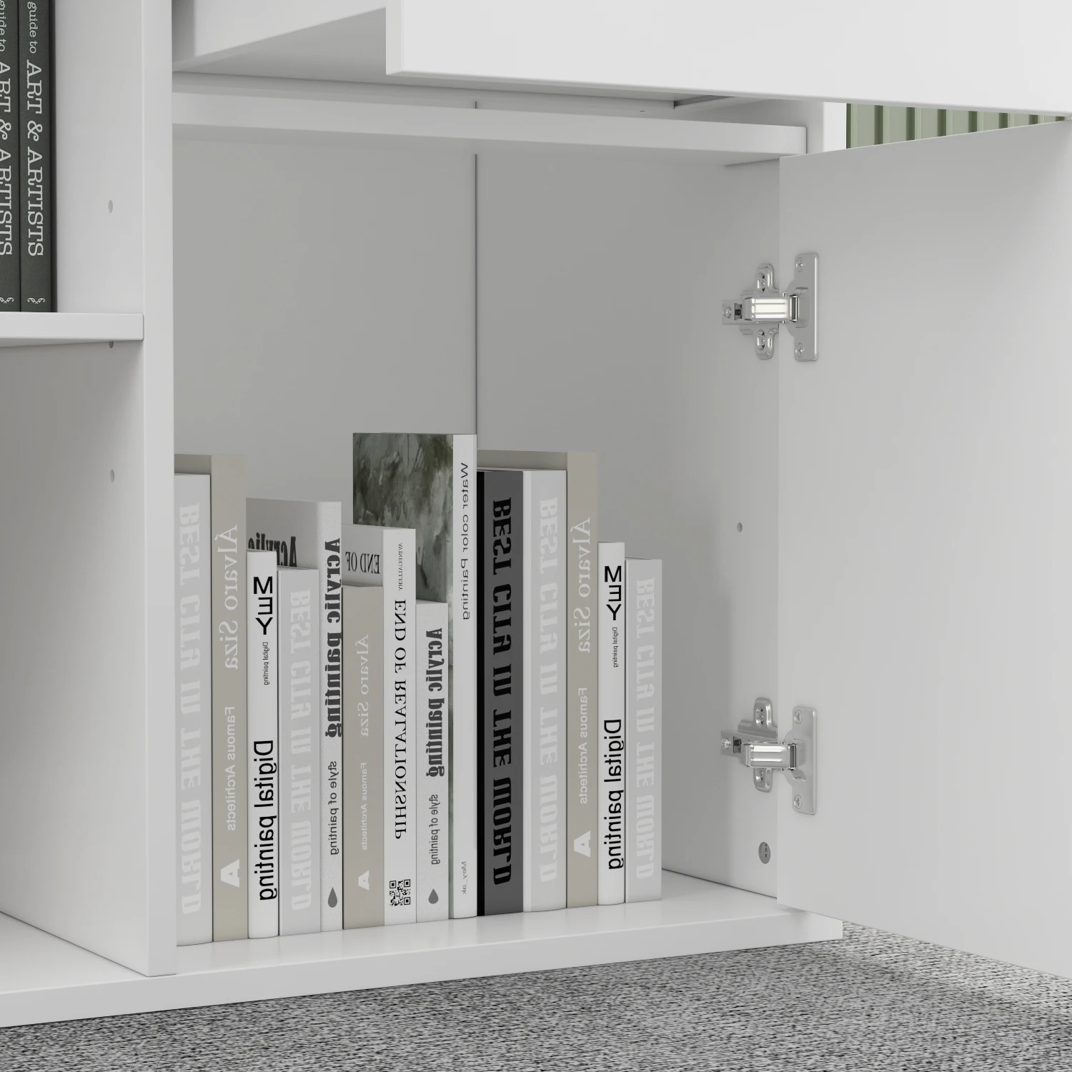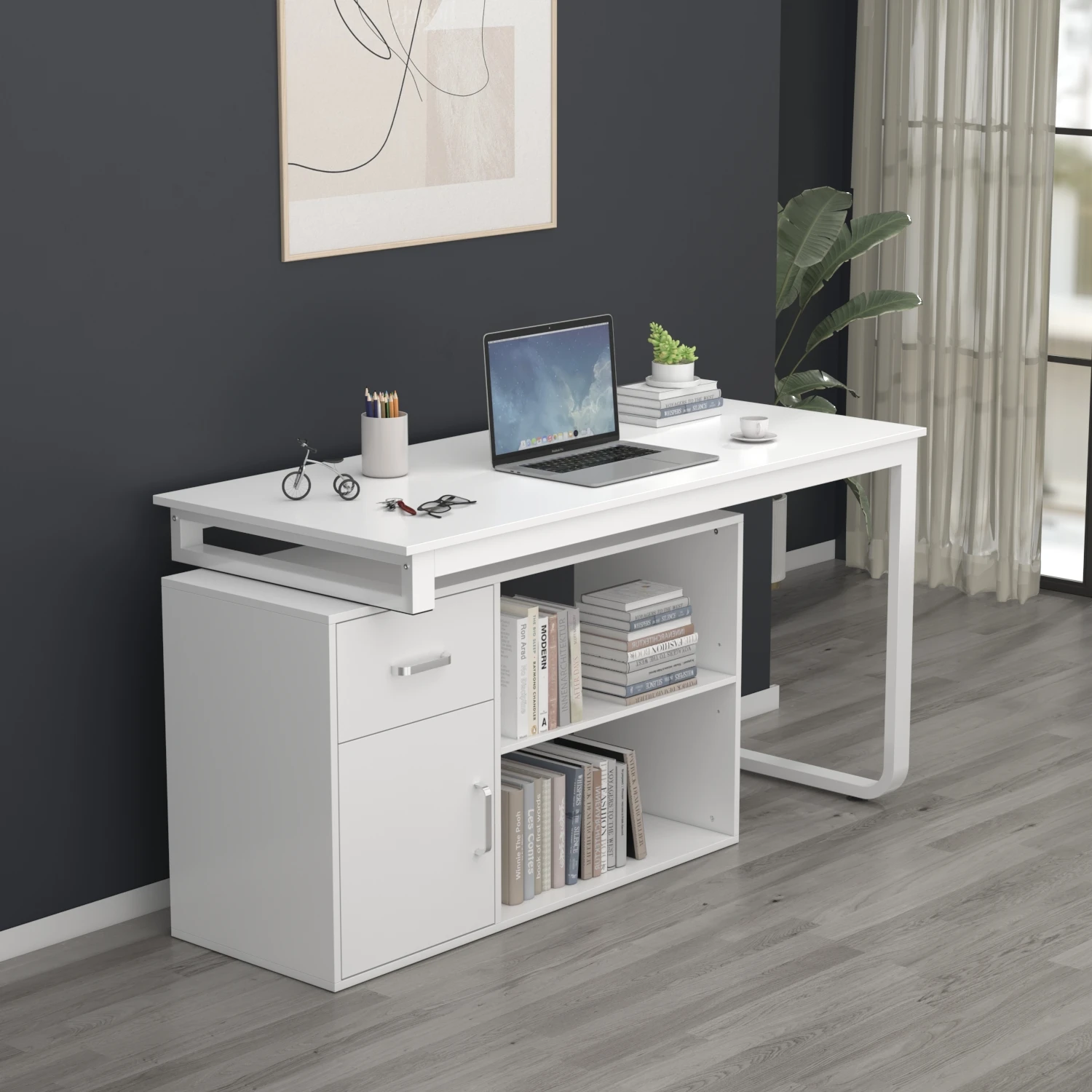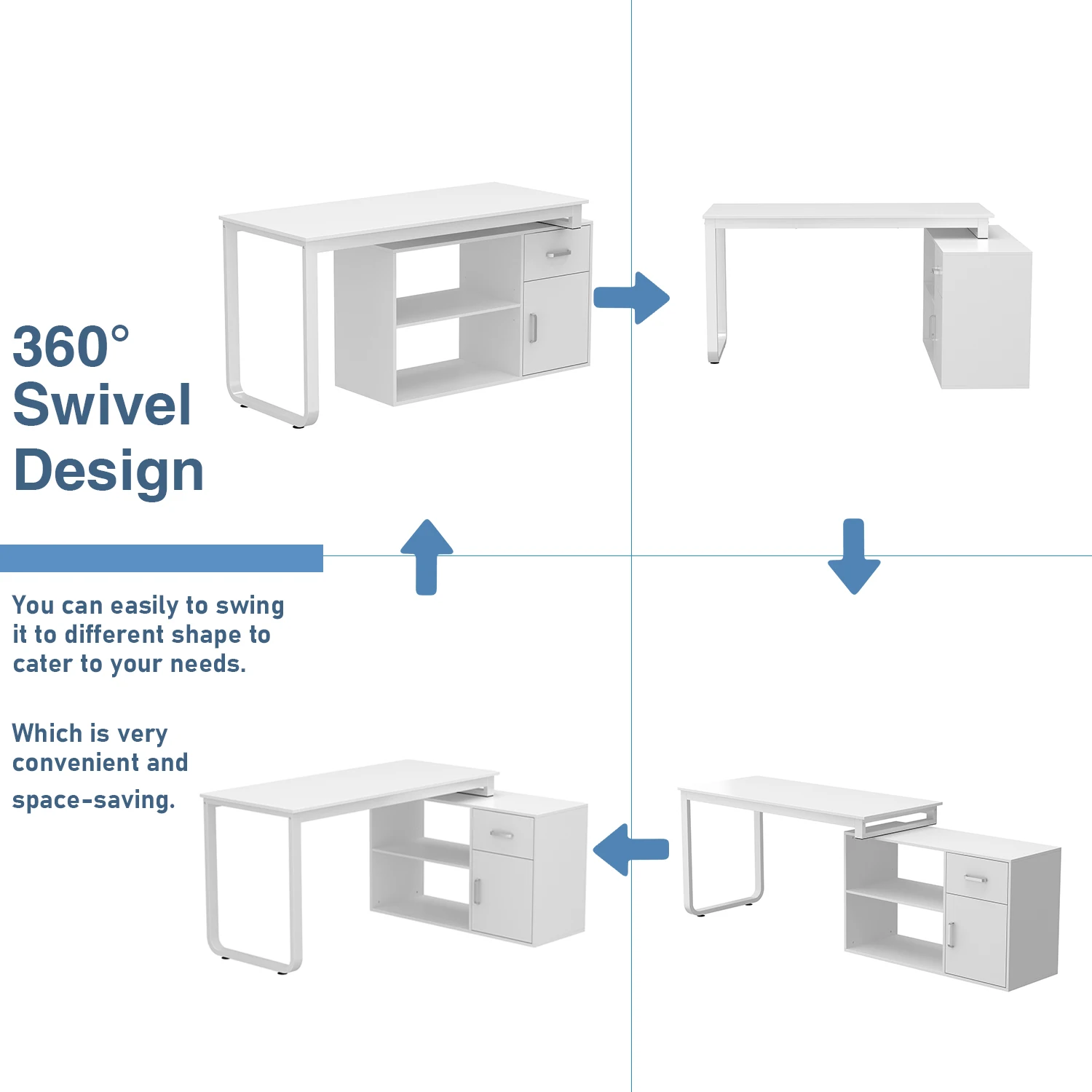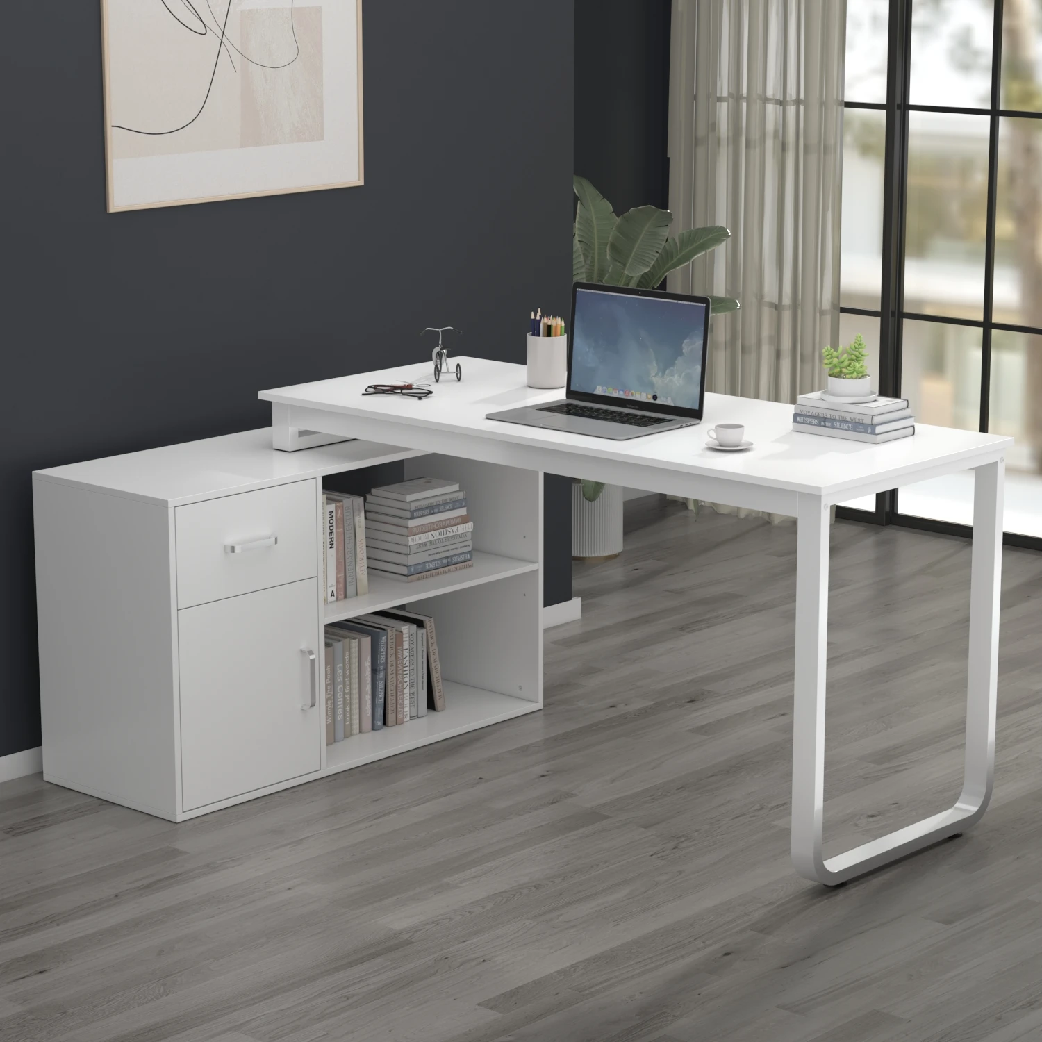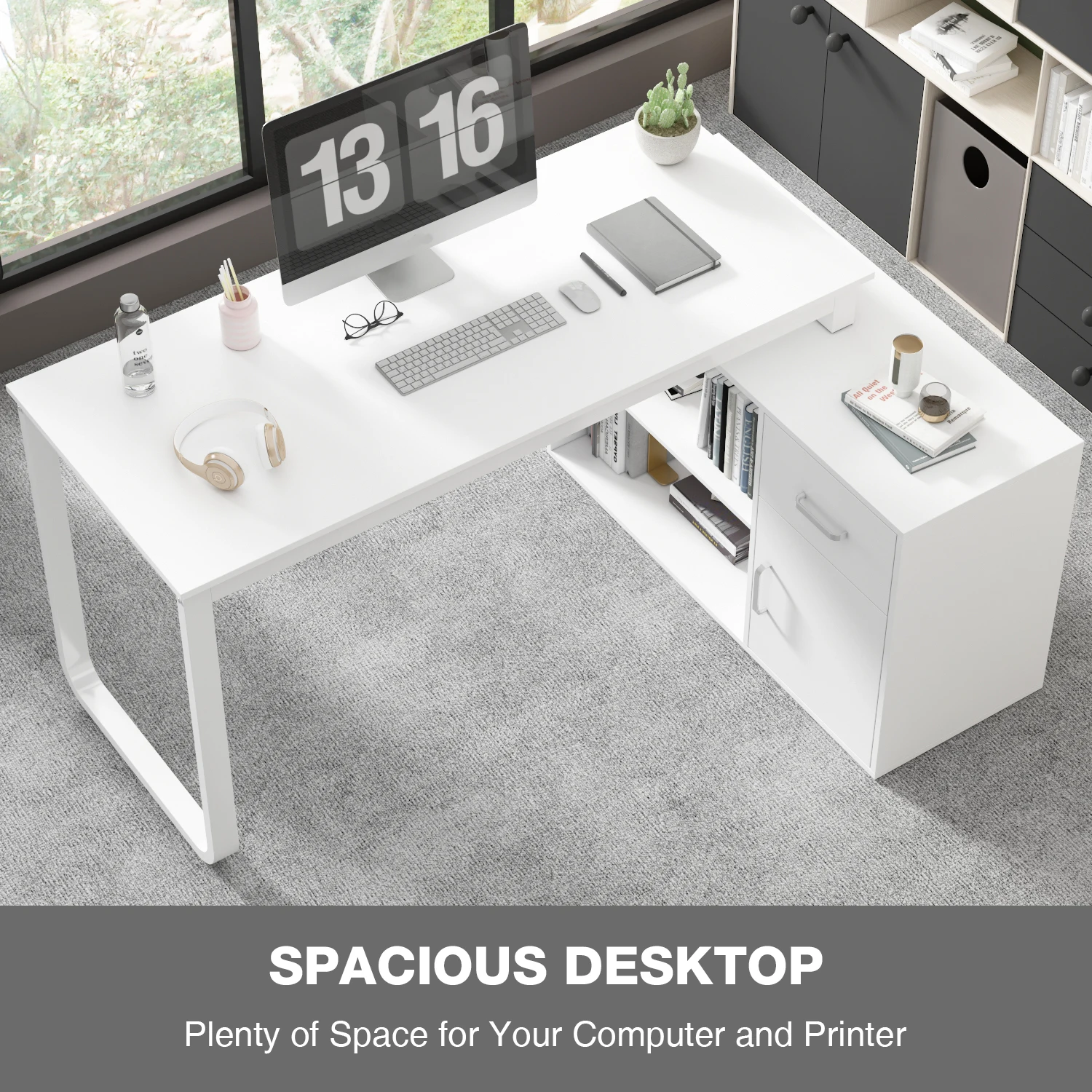 Adjustable L Shaped Desk with Drawers, Cabinet & Open Shelves, Home Office Computer Desk with Spacious Desktop, White