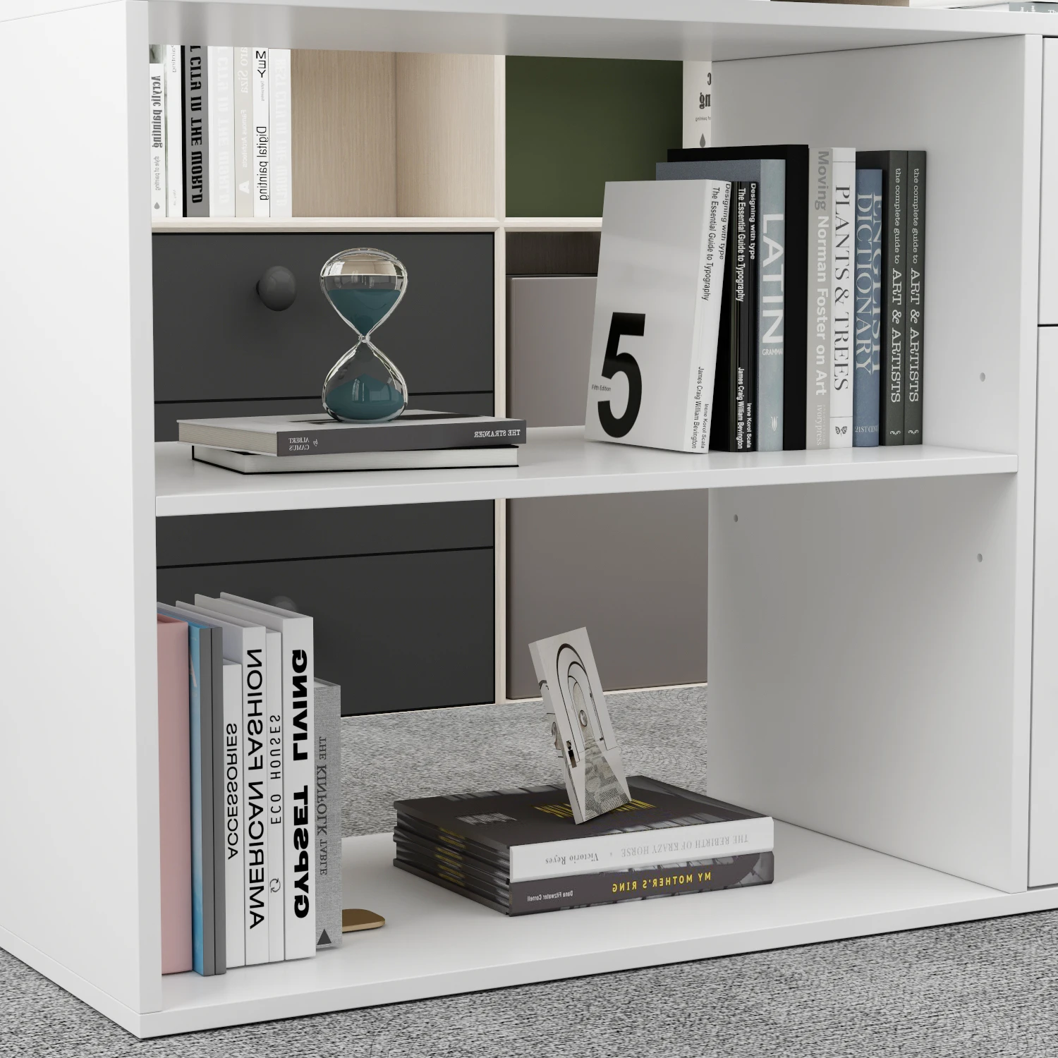 【Smart Storage Solutions】Features three drawers and one open grid shelf for organized storage. Tuck away stationery in drawers while keeping frequently used files visible in the grid, reducing desktop clutter effectively .