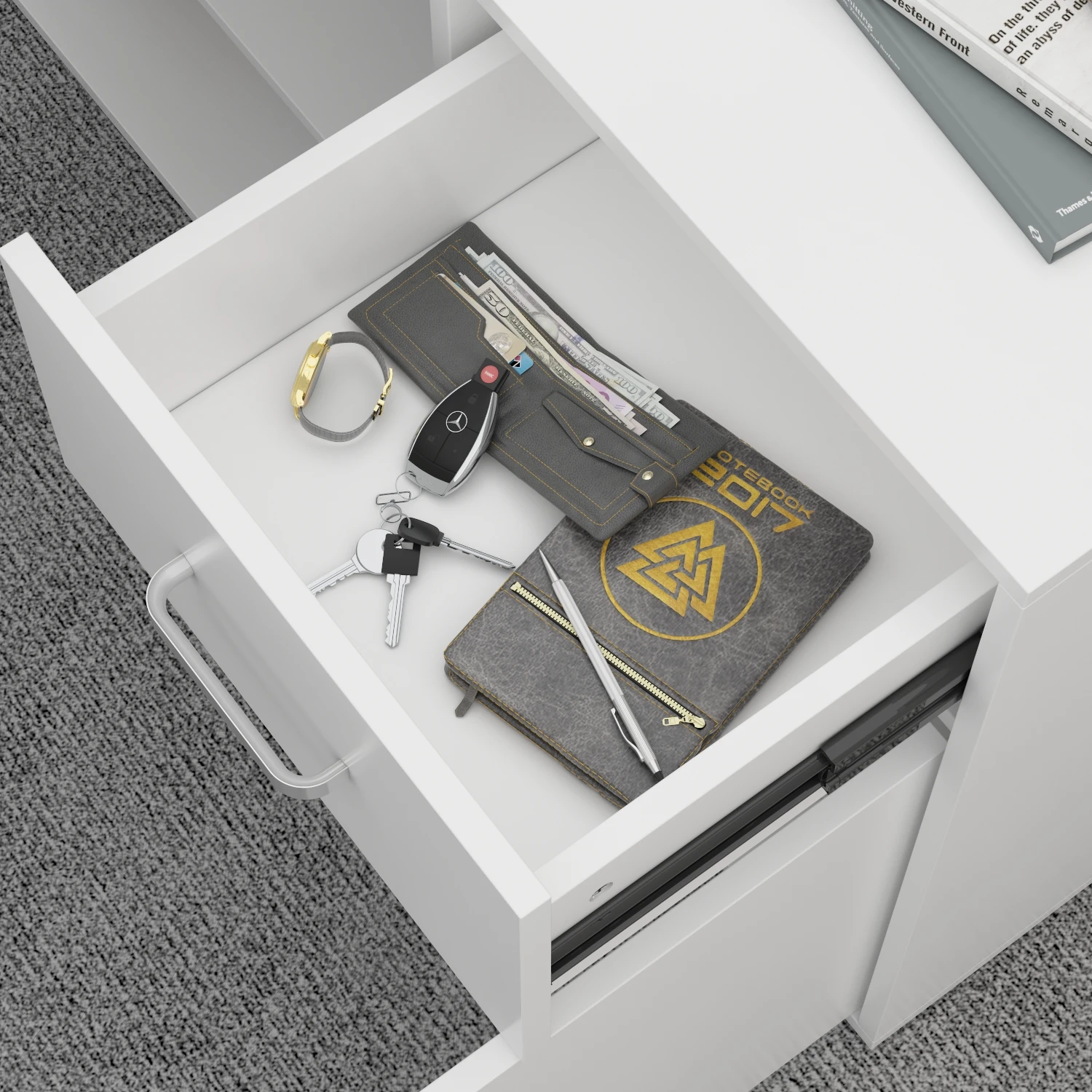 【Sleek Silver Accents】Matte silver metal handles complement the modern design, adding a polished touch to home offices or corporate workspaces. The understated finish blends seamlessly with various decor styles .