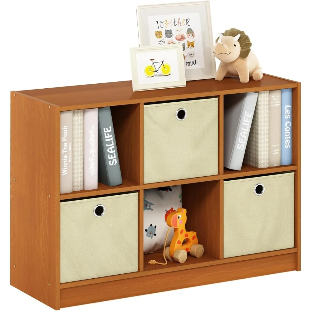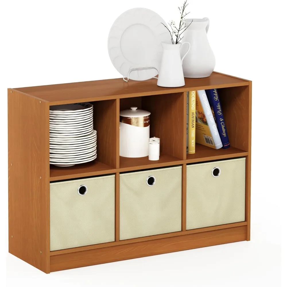 Basic 3x2 Bookcase Storage w/Bins, Light Cherry/Ivory