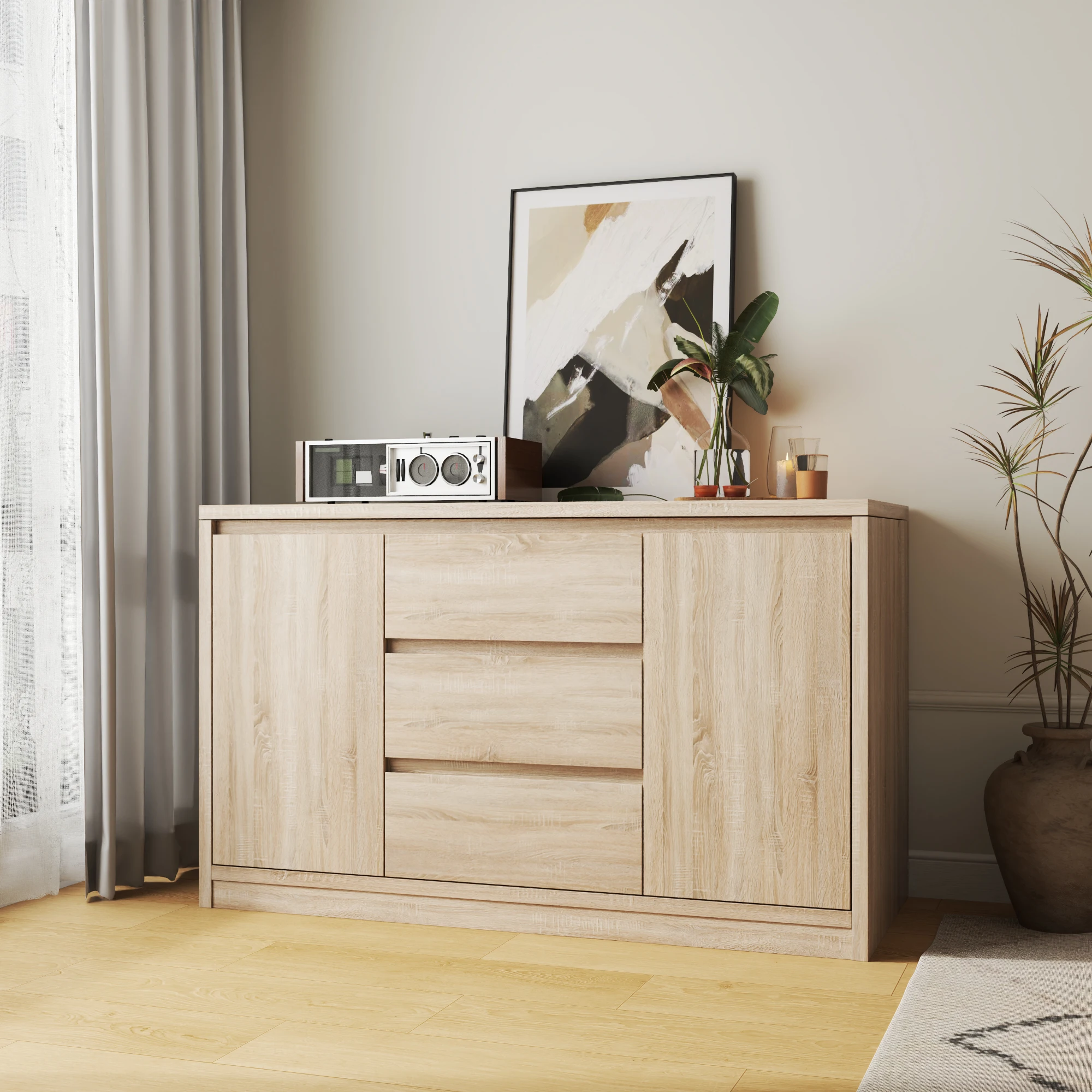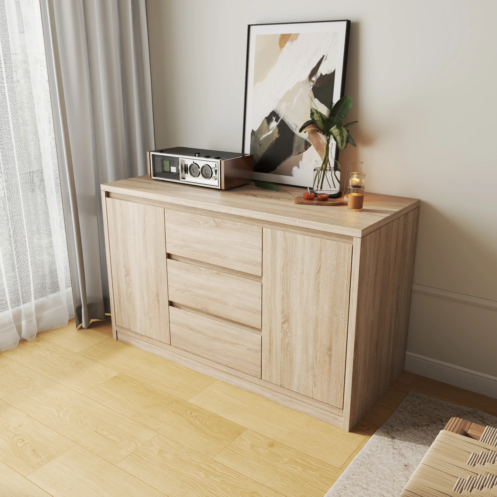 【Ample Storage】With 2 doors (hidden compartments inside) and 3 drawers, the cabinet offers abundant storage. You can store linens in the doors, daily essentials in the 3 drawers, and small valuables in the hidden drawers—keeping your space neat and items organized without clutter.