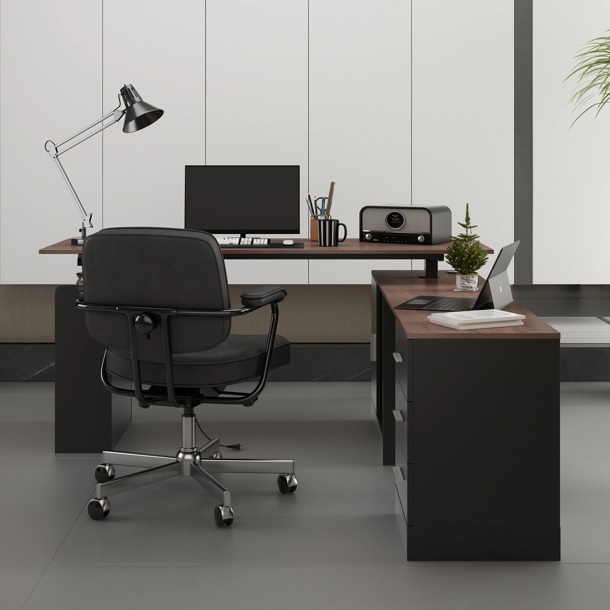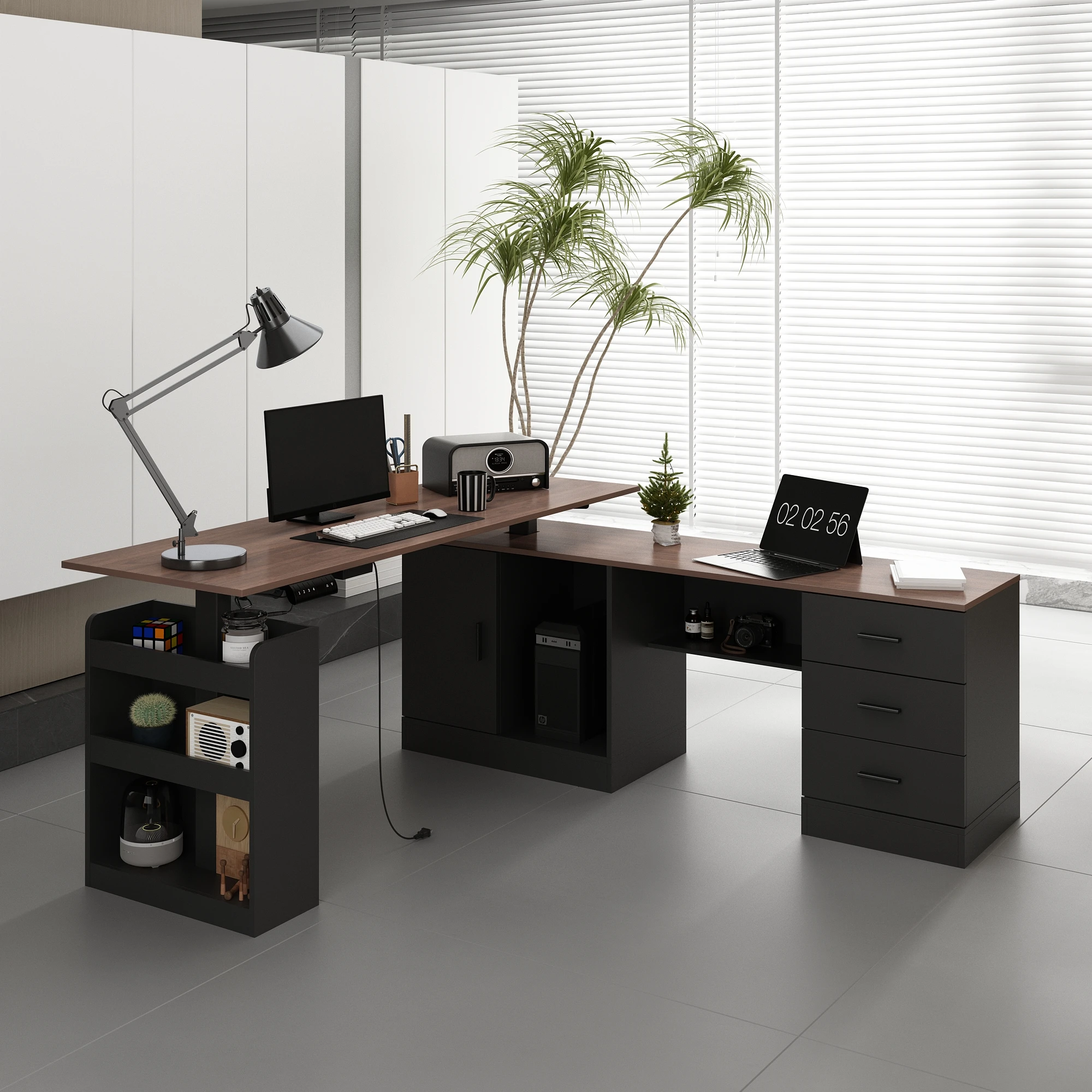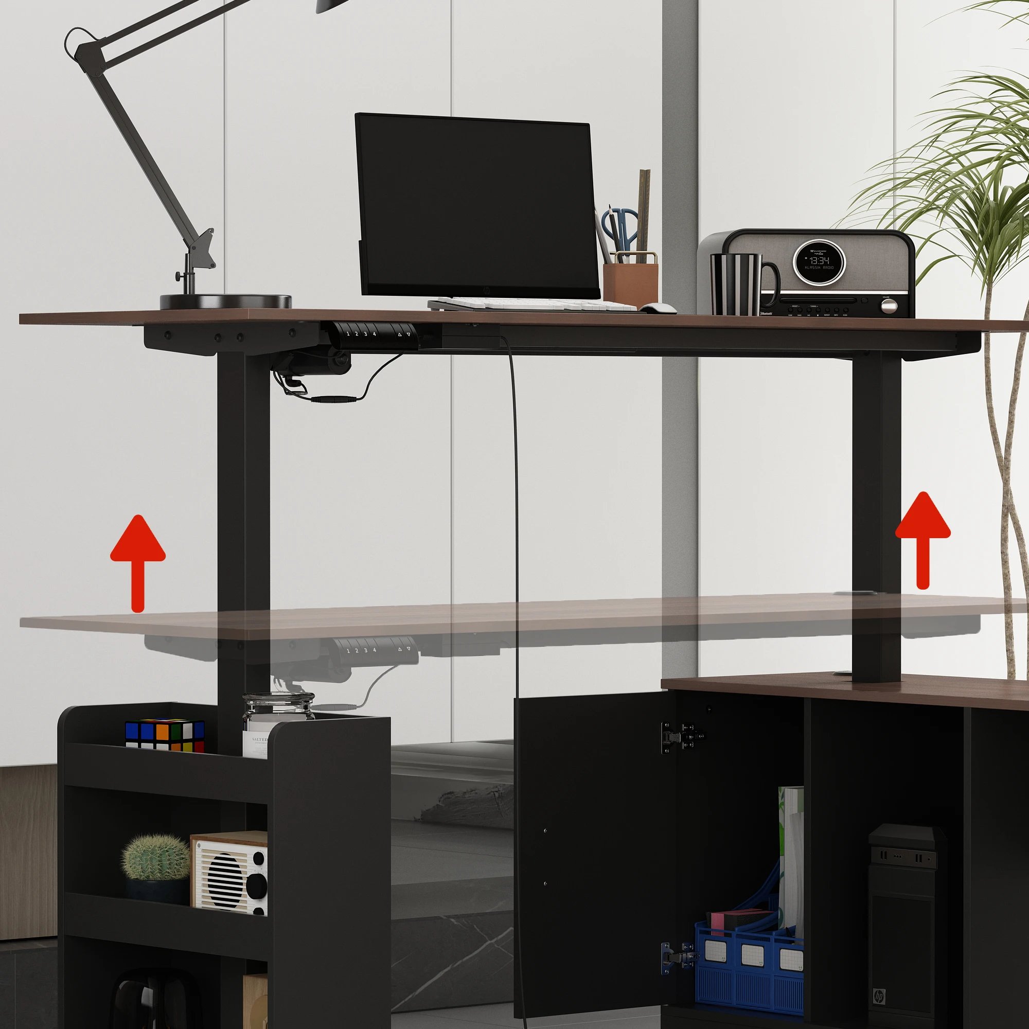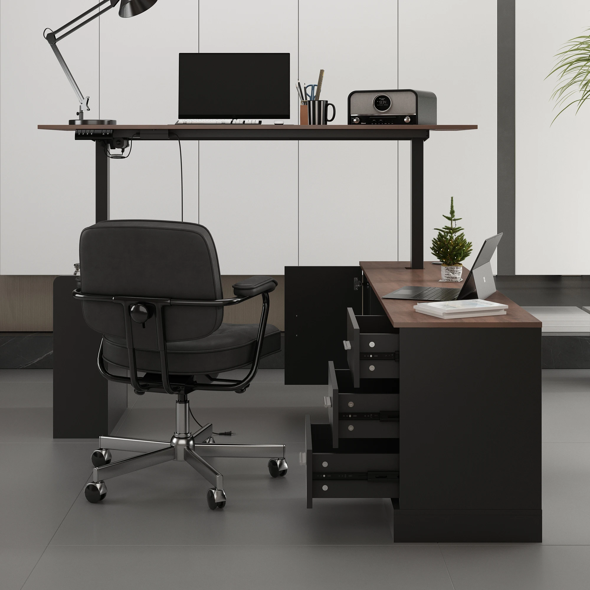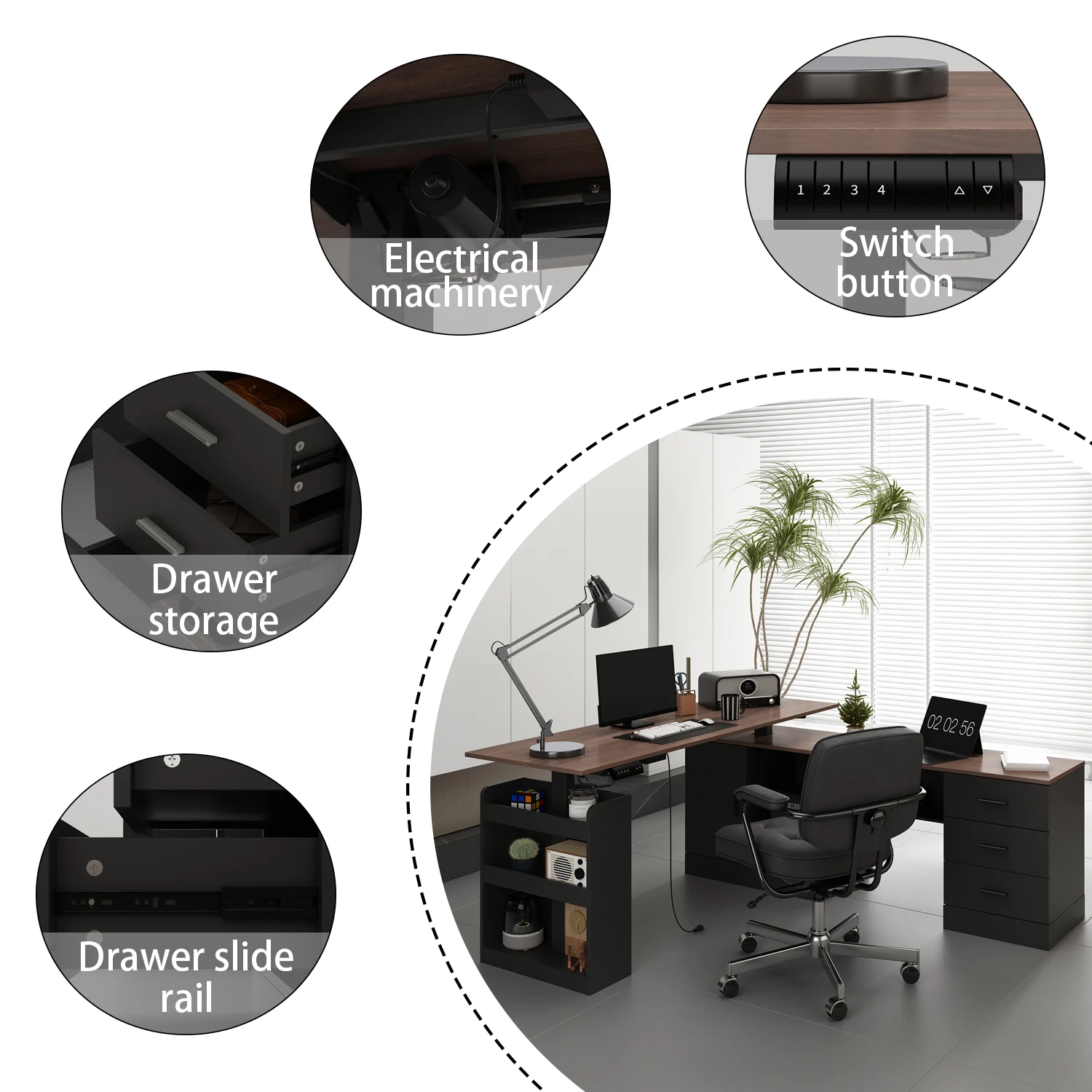 Electric Adjustable Computer Desk with Switch Button, L-Shape Desk with Drawers & Cabinets for Office, Black & Oak