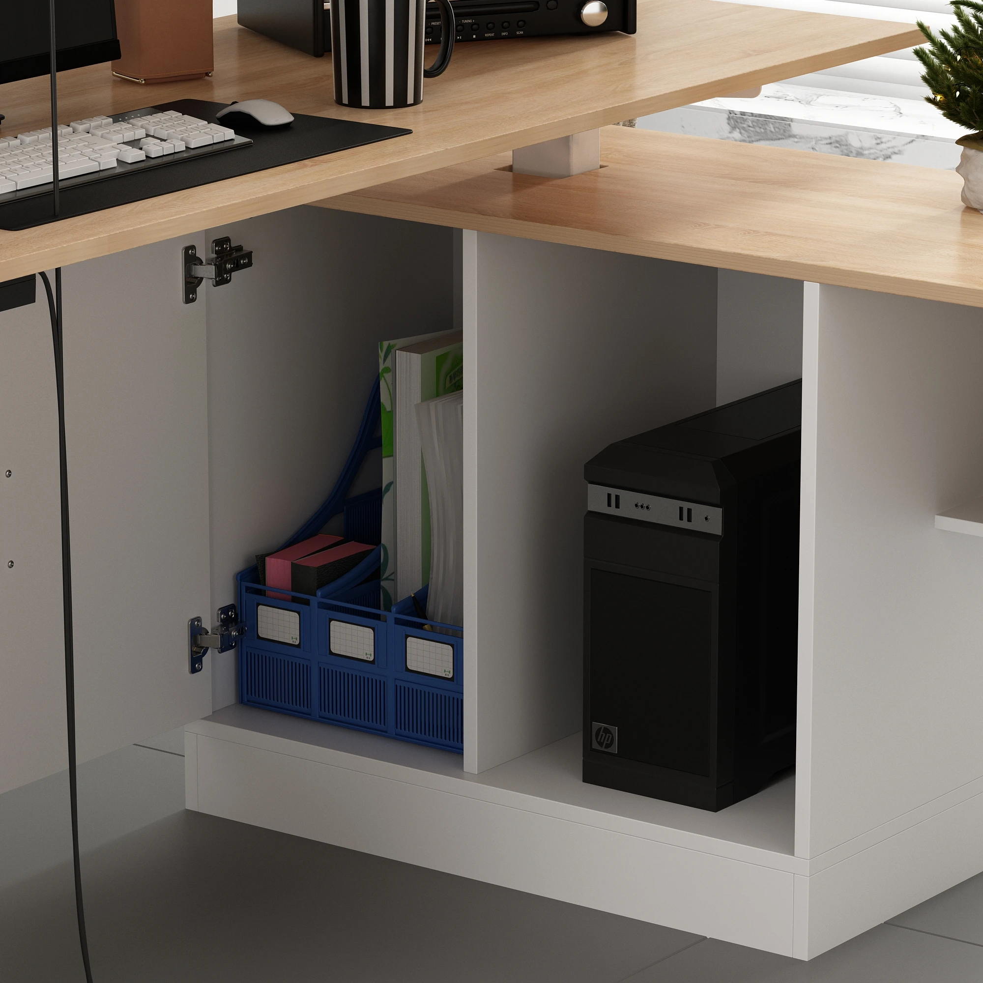 【L-Shaped Desk】Fits snugly into corners, turning unused nooks into functional areas. Perfect for 100 sq ft studios or large home offices—gives you 60% more surface area than a standard desk without wasting space.