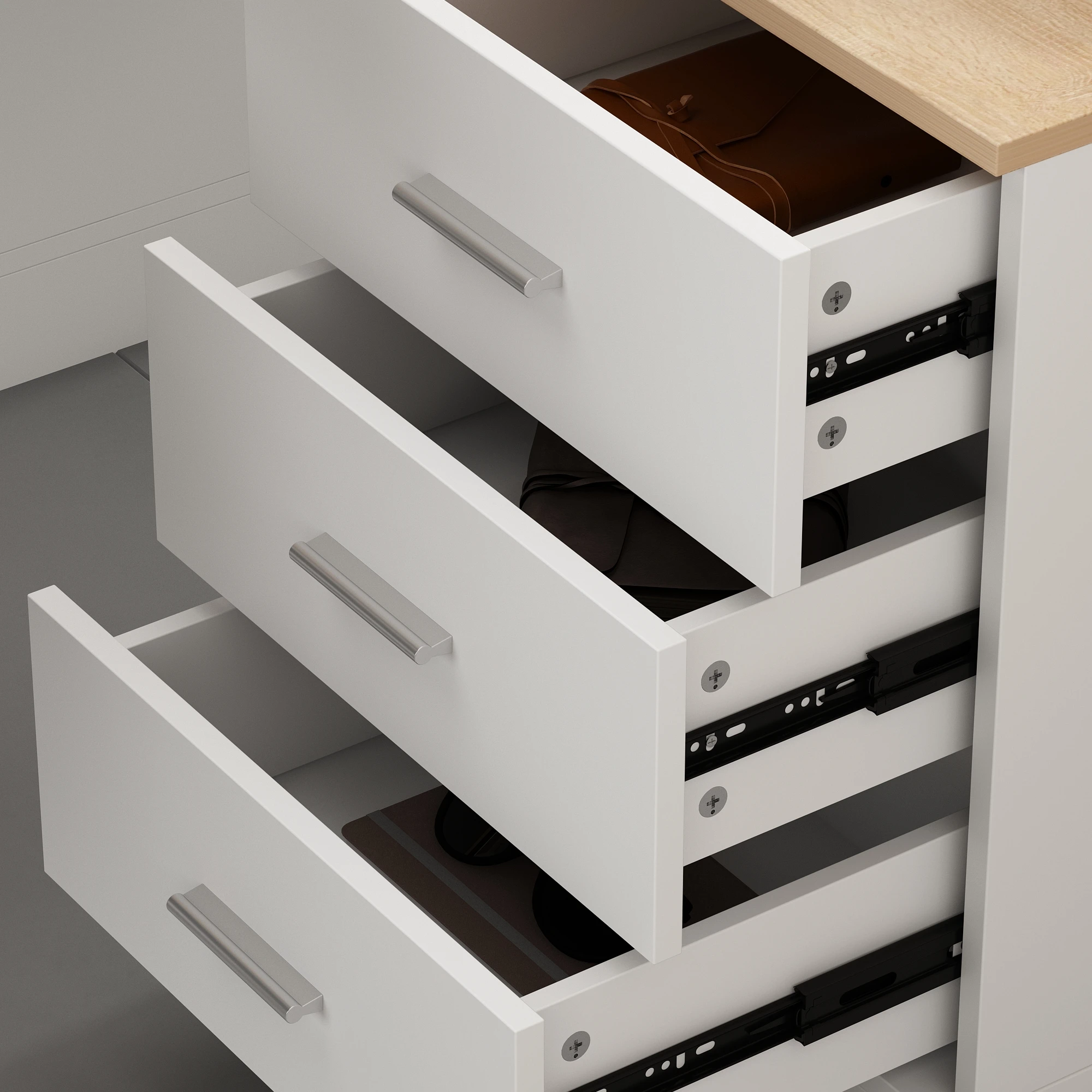 【Ample Storage Solutions】3 deep drawers (15"x10"x6") hold 50+ documents or office supplies. A hidden shelf tucks away chargers or jewelry, while the 3ft-wide open area displays books, plants, or gaming gear—keep your space tidy yet personalized.