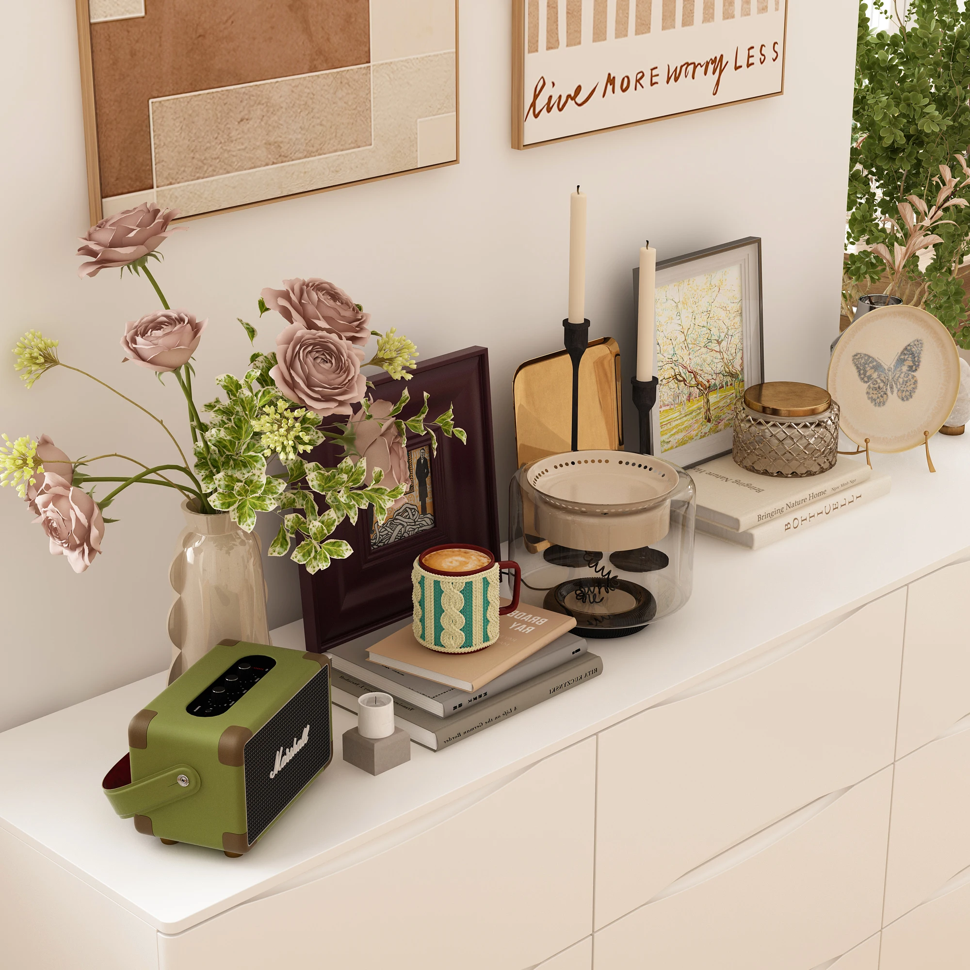 【Multi-Functional】This cabinet's versatile design allows it to adapt to various rooms and functions. Use it as a makeup dresser in the bedroom, a sideboard in the living room, or a functional storage unit in the bathroom, providing both style and practicality wherever it's placed.