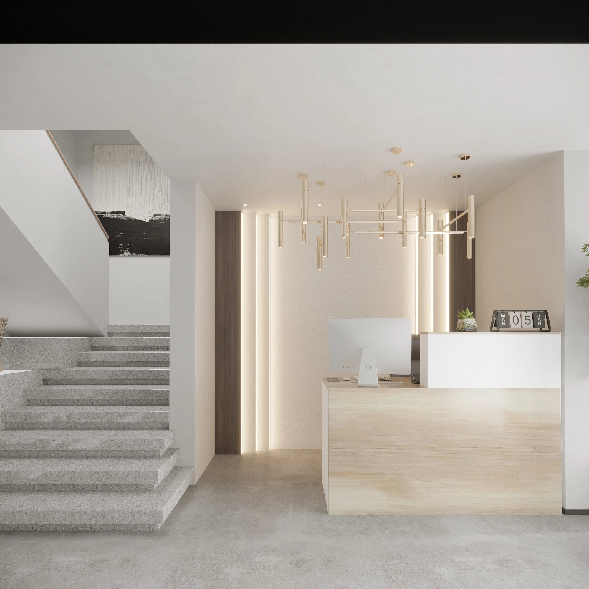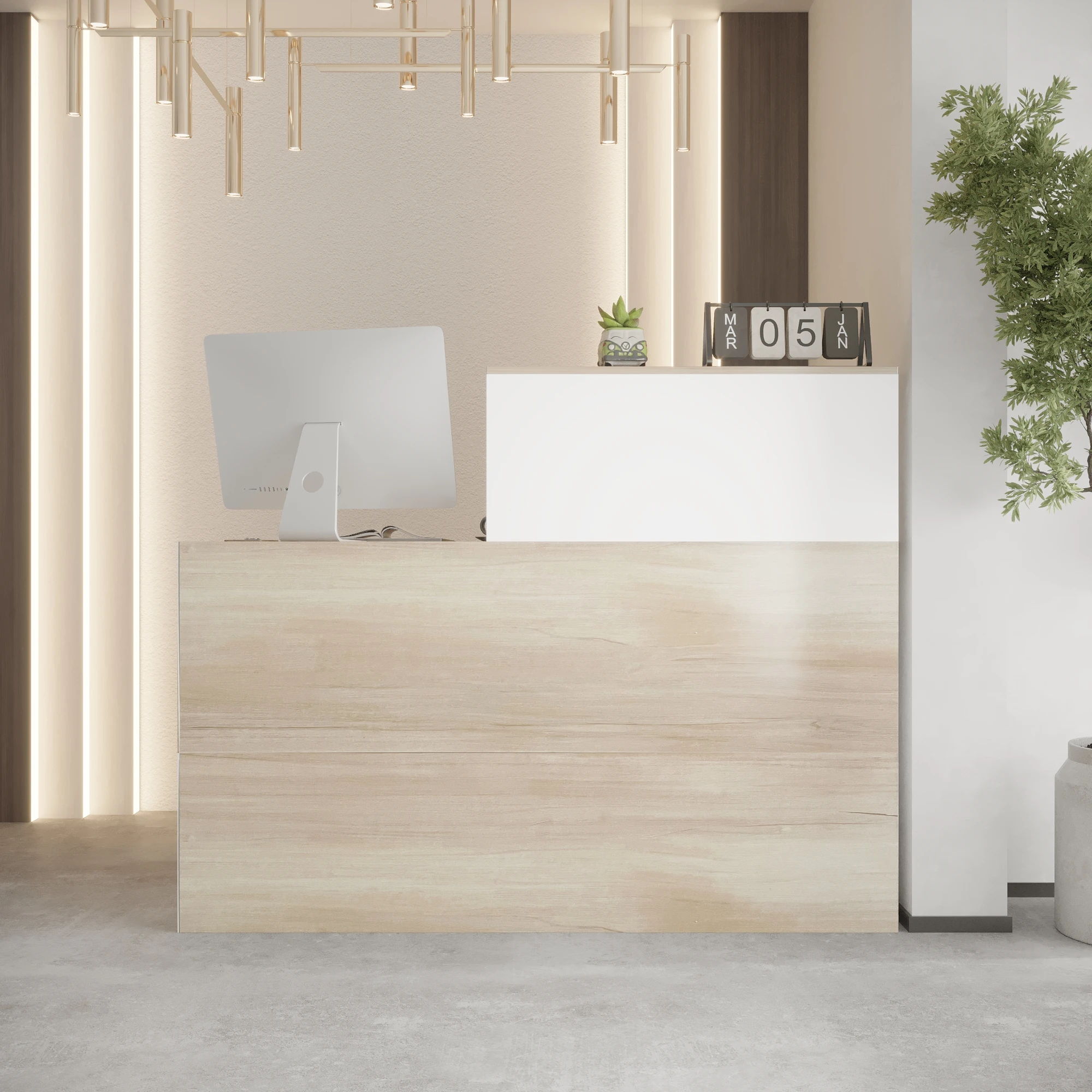 【Modern Design】The sleek and modern design of this reception desk, with its warm white and wood grain color scheme, creates a professional and inviting atmosphere. It's perfect for businesses that value both aesthetics and functionality, enhancing the first impression for clients and visitors.