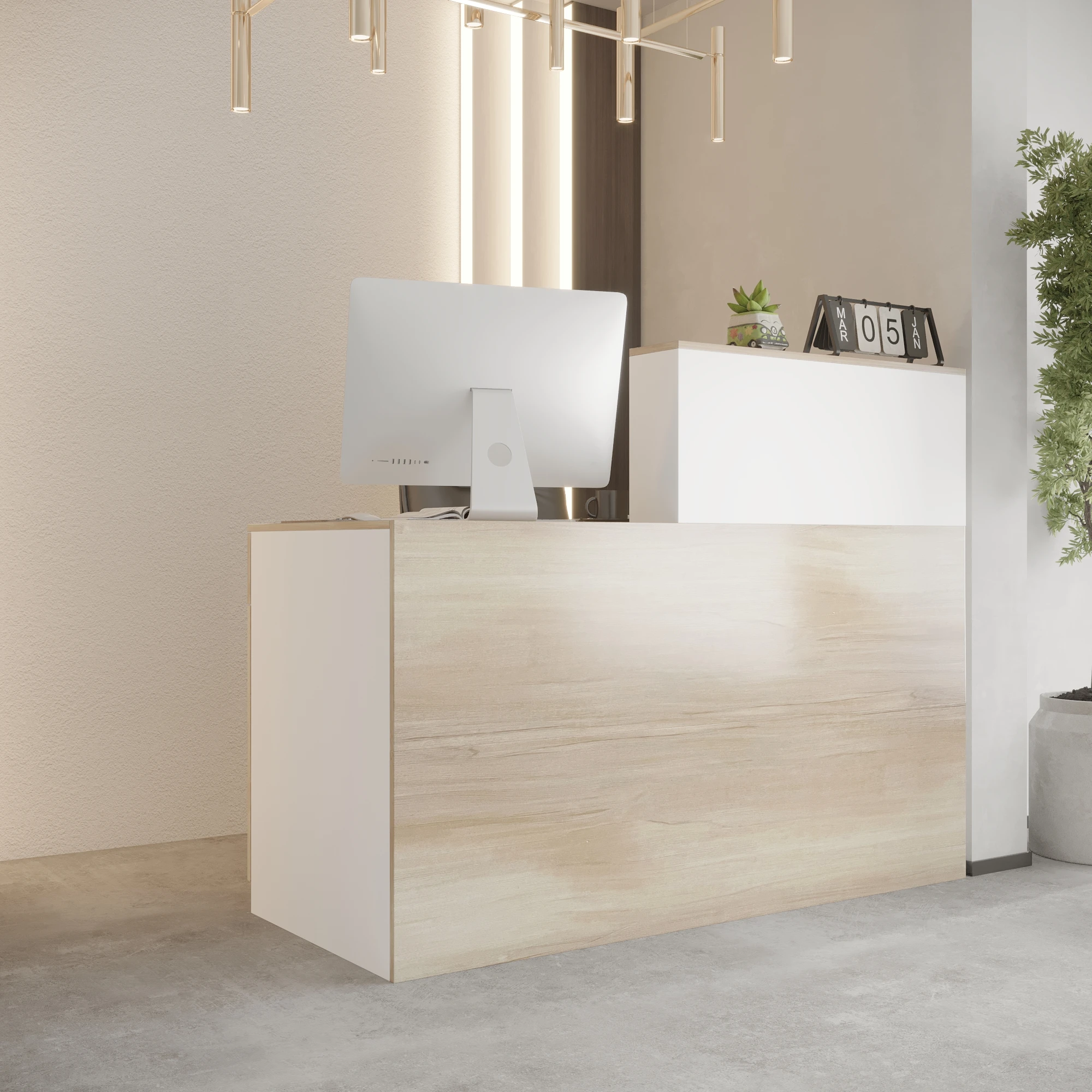 【Premium Material】Crafted from durable P2 MDF material, this reception desk offers a perfect blend of strength and style. Its smooth and sturdy surface can withstand daily wear and tear, ensuring long-term use in busy office environments.