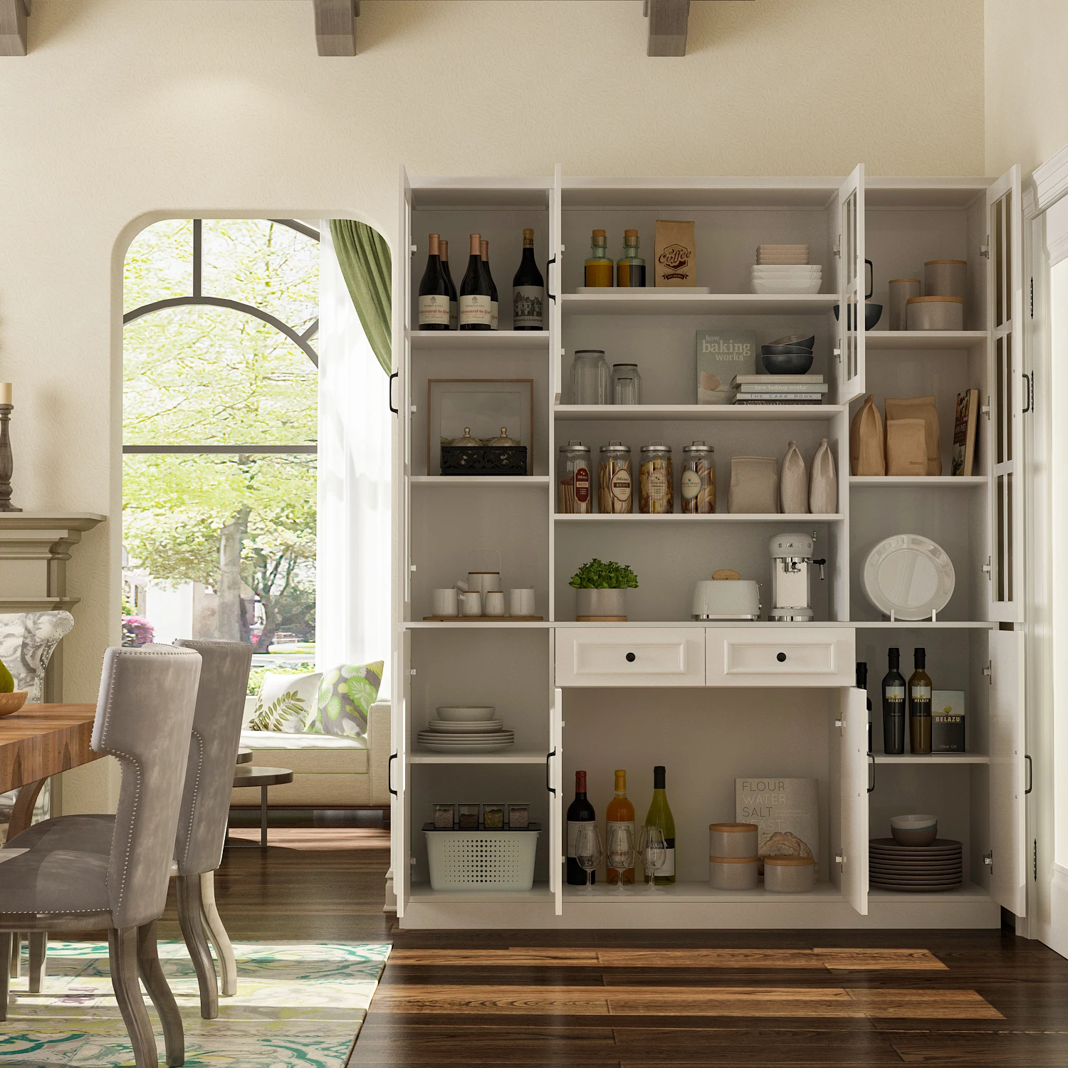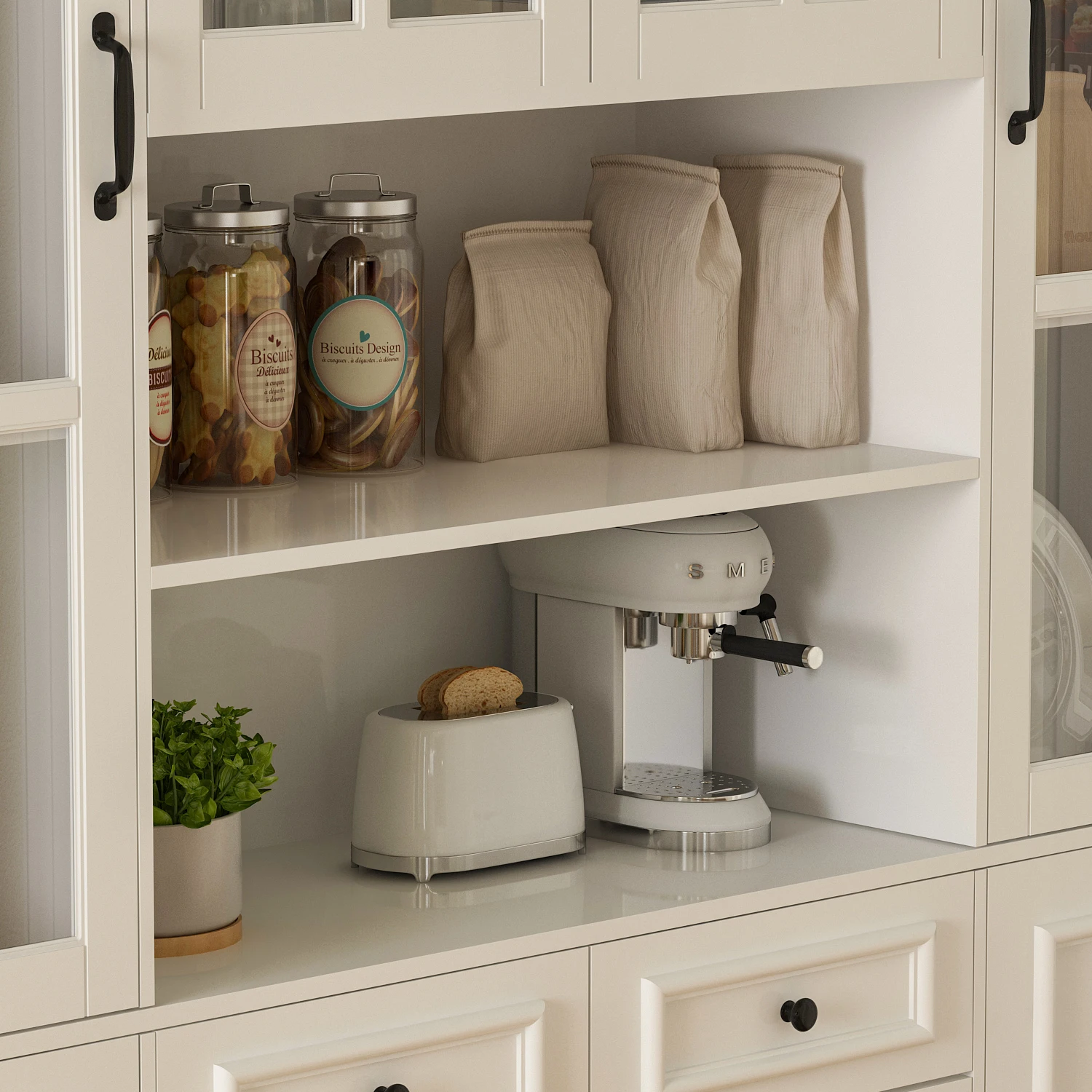 Adequate storage space - This cabinet comes with 13 hidden shelves and 2 open shelves, providing ample space for all your dining essentials whether you need to store exquisite porcelain, glassware, or daily dishes. Adequate storage space keeps your dining area organized and clutter free.