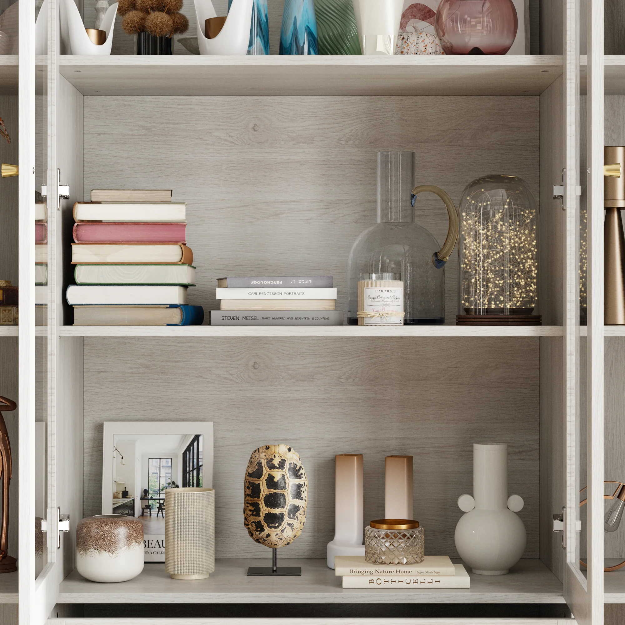 【Frosted Glass Doors】These sleek frosted glass doors keep your items subtly private while blocking dust. Wipe clean in seconds, and let your curated collection shine through a polished, modern filter.