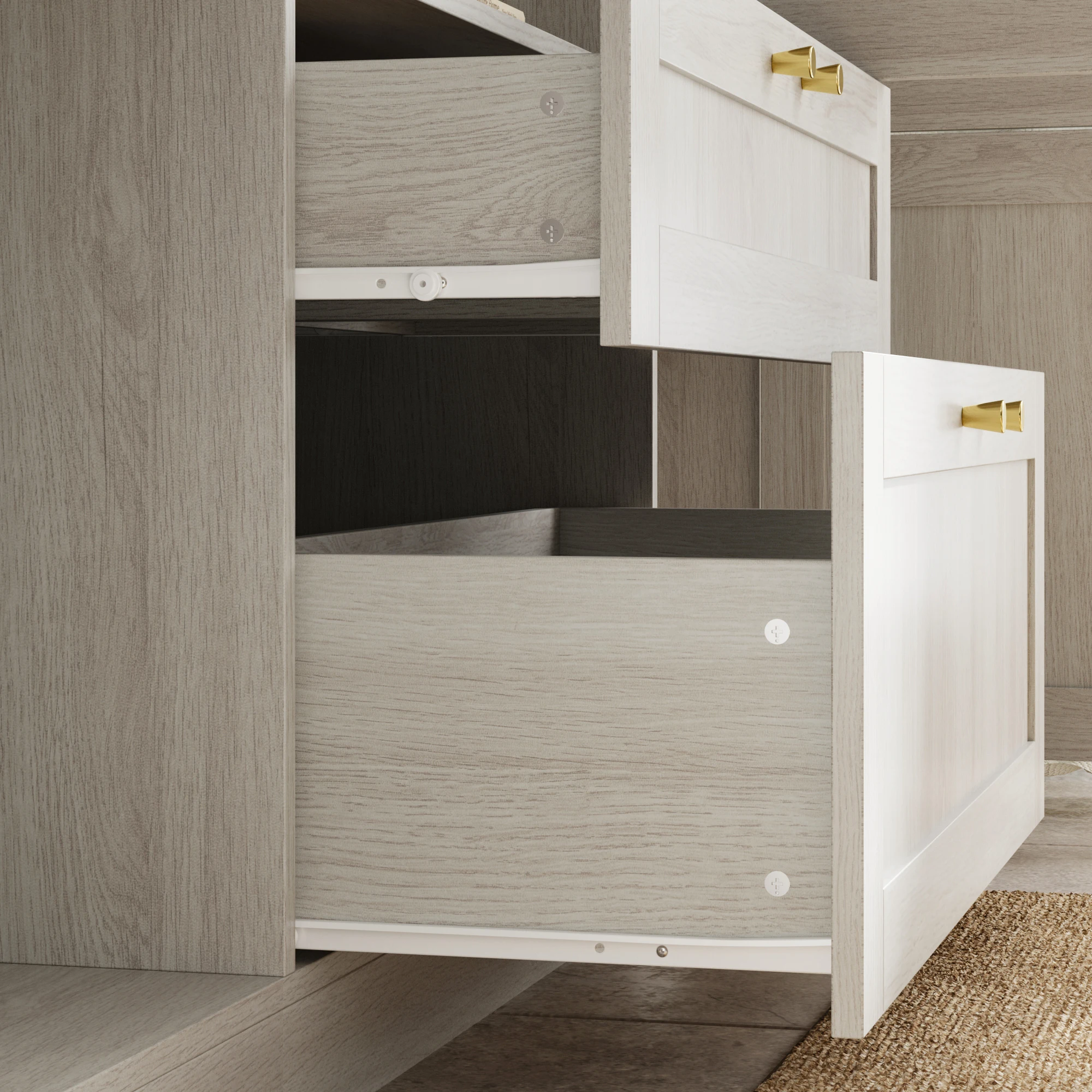 【Built-to-Last Quality】Crafted with P2-grade particleboard, this cabinet meets strict low-formaldehyde standards, ensuring a healthier home. Its dense composition delivers sturdy support and long-term durability.