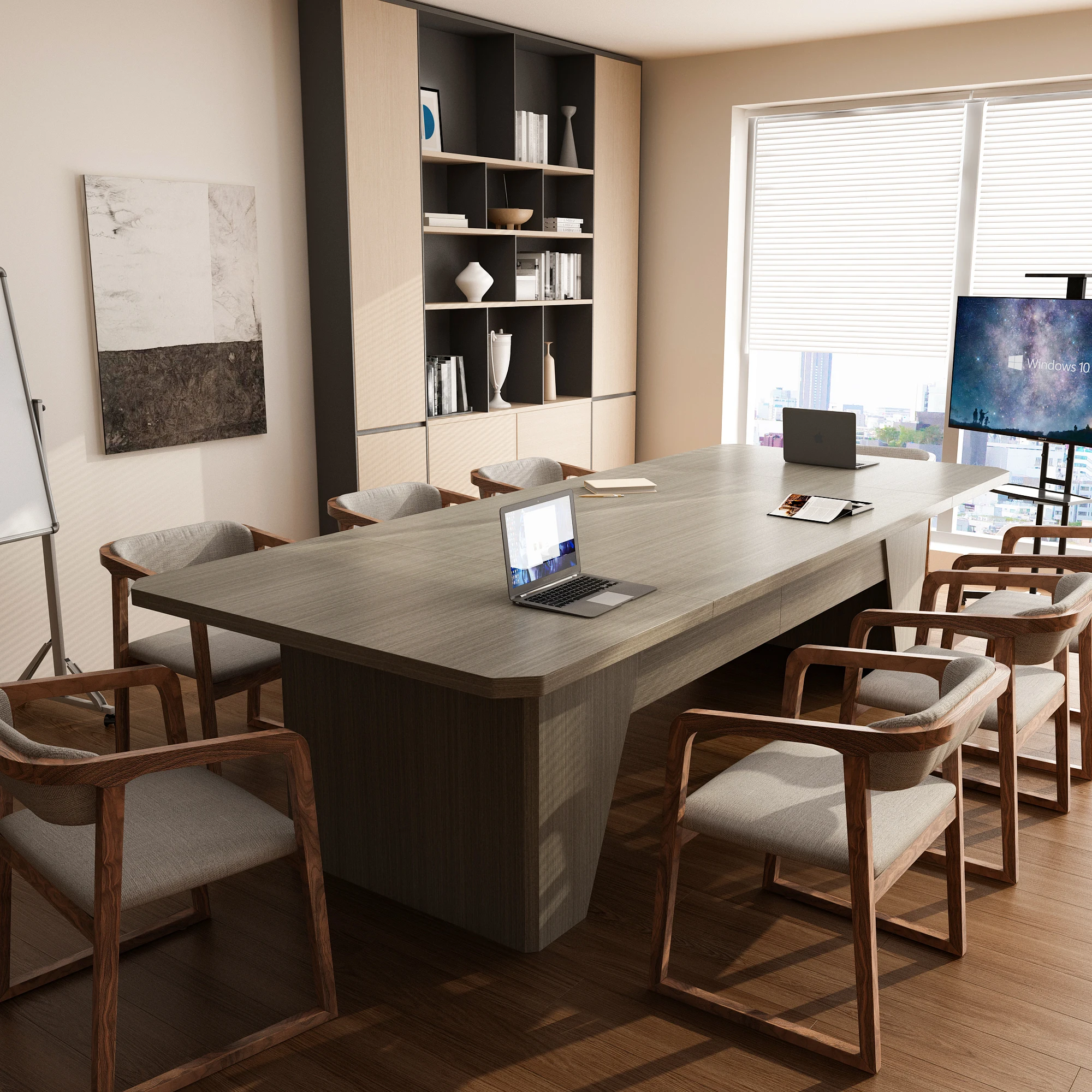 【Modern Design】This meeting table features a sleek gray oak finish with a professional look that complements modern office settings. Its elegant design and neutral tones make it a perfect centerpiece for conference rooms, adding a touch of sophistication and style.