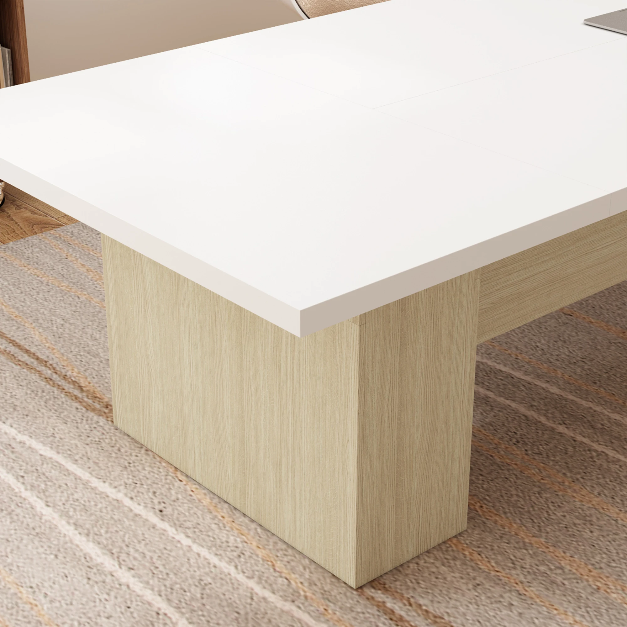 Large Conference Table with Spacious Desktop, Office Meeting Table with Wood Legs for 12 Person, White & Oak