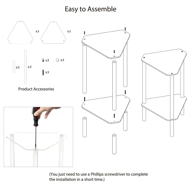 Multifunctional Acrylic Furniture: Suitable for your living room, bedroom, bathroom or foyer. Used as a small end table, corner table, drink table, couch table, or as a decorative clear table.