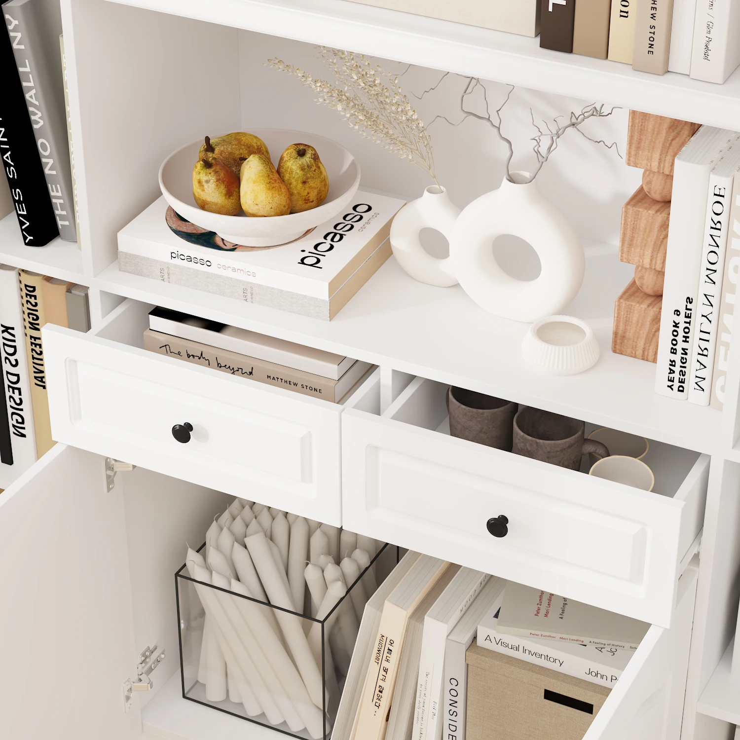 Modern Aesthetics: The bookshelf design is fashionable and modern, complementing the modern interior style. Its original white finish exudes purity and delicacy, creating a bright and open feeling in your space.