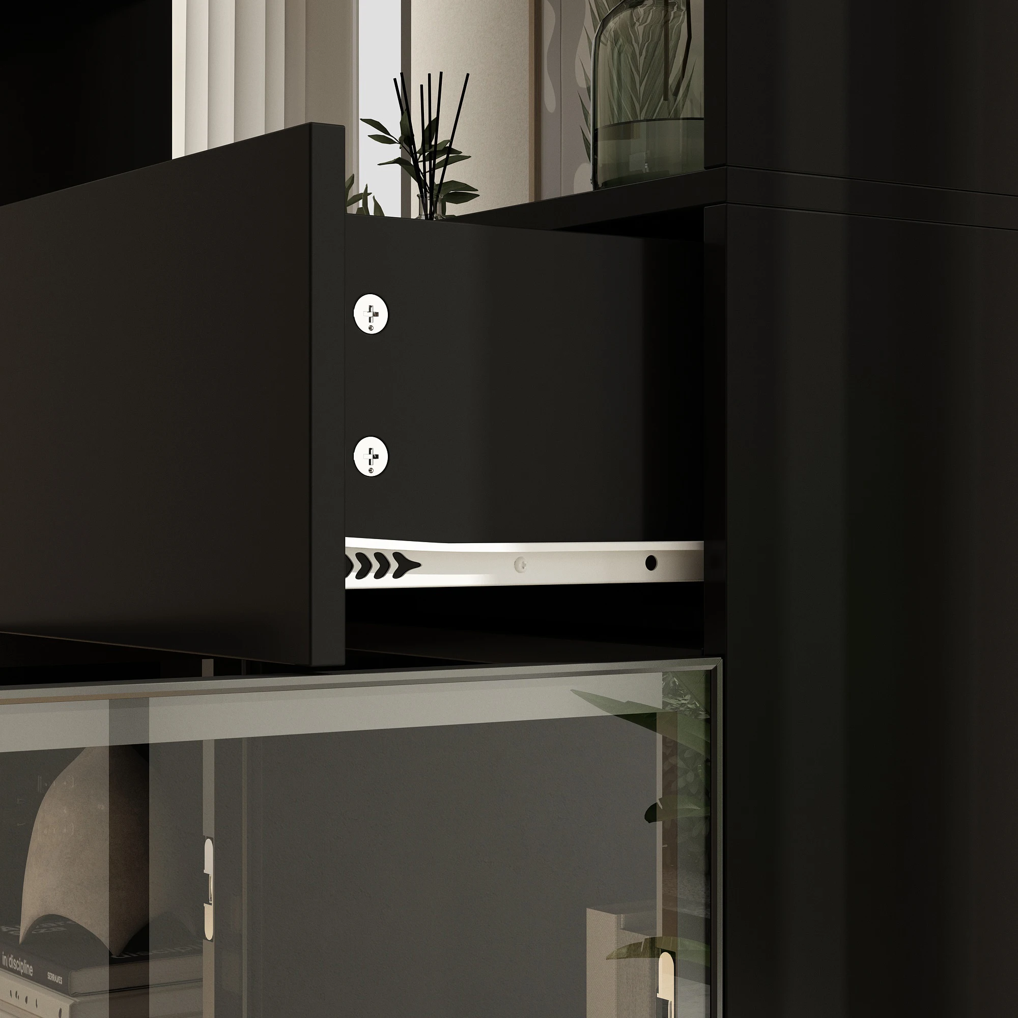 【Glass Door Design】Glass door design provides a dedicated space to showcase your most precious items. The transparent glass door allows you to easily view the items behind the cabinet door while keeping it dust-free and protected.