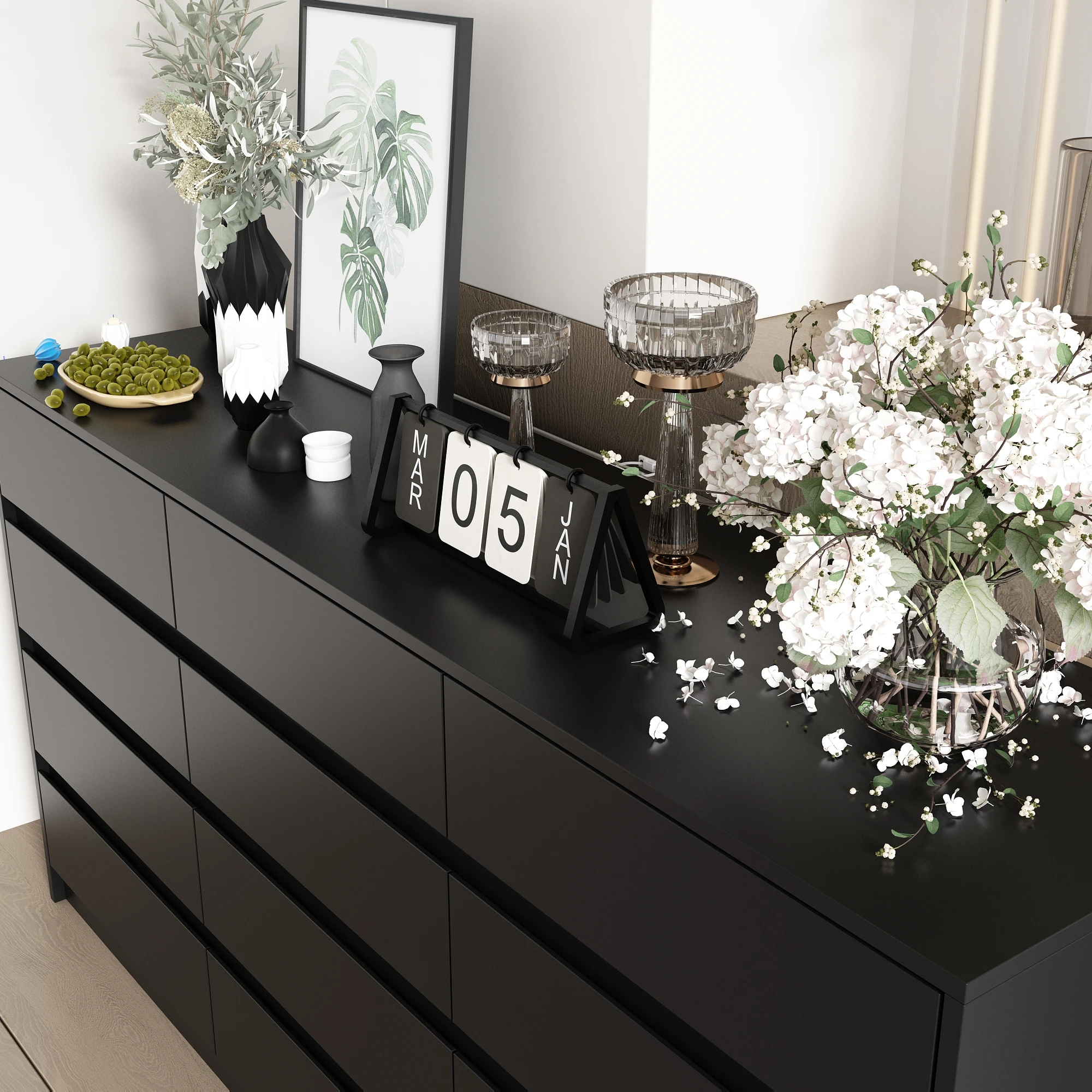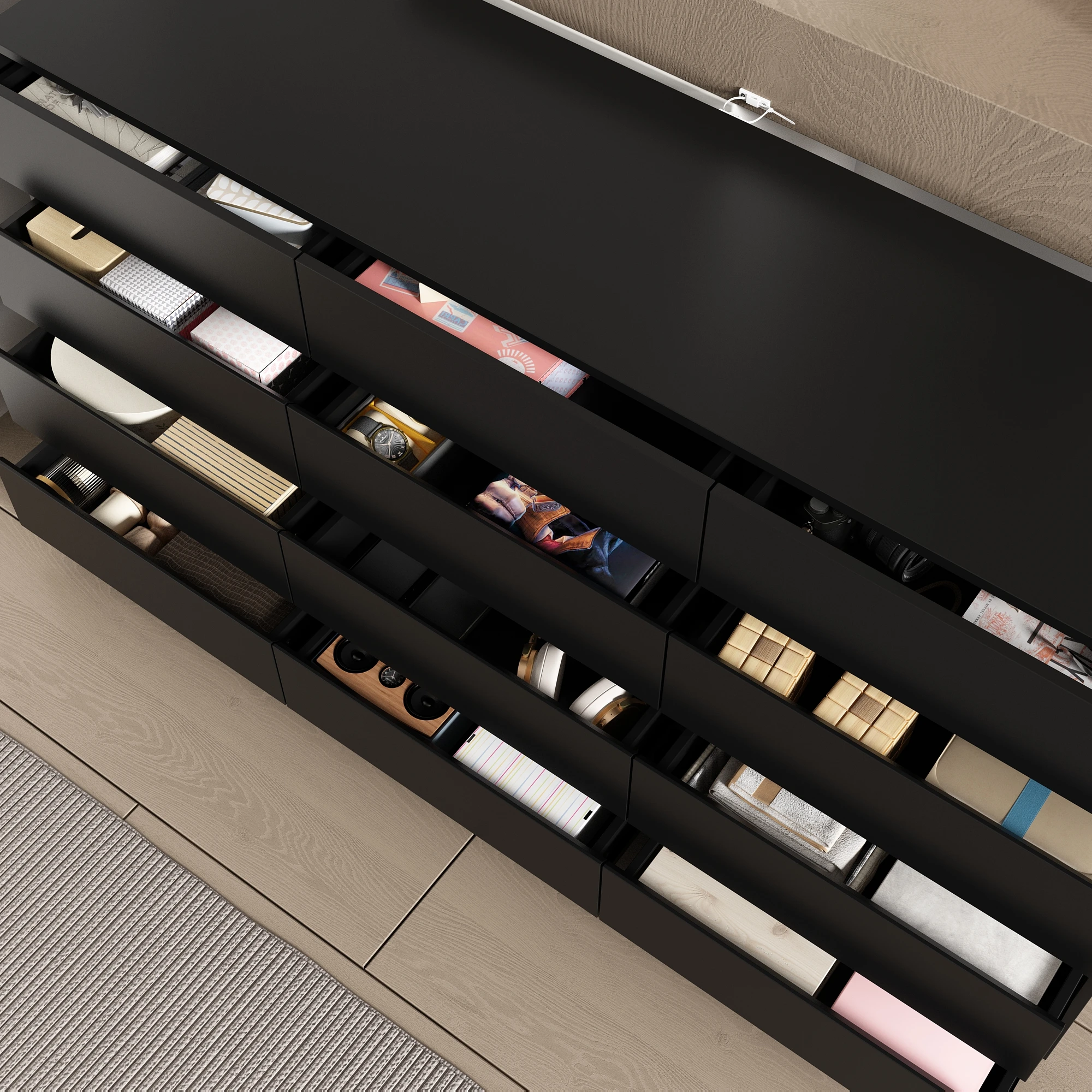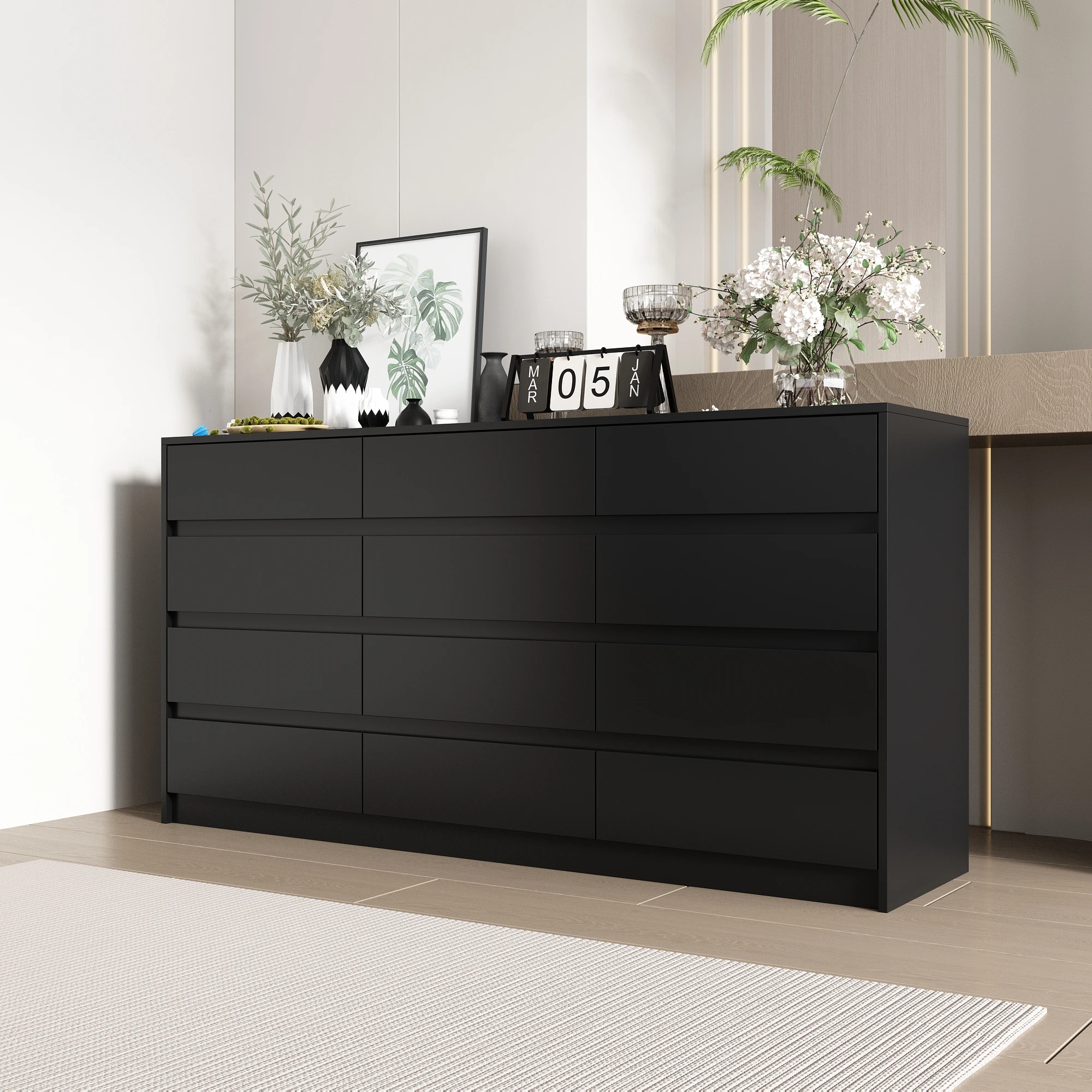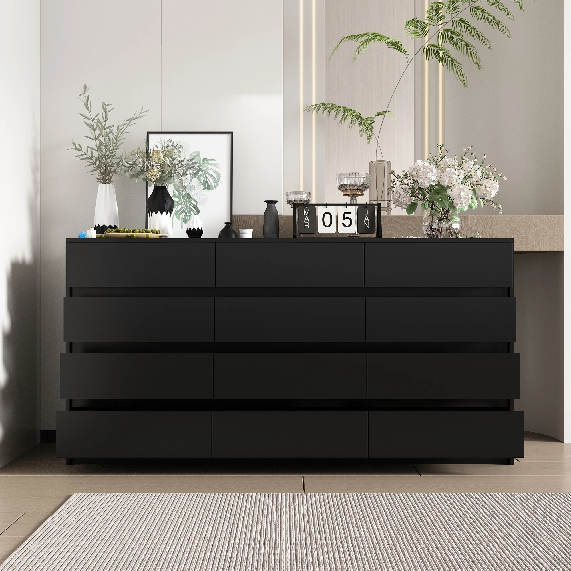Modern Chest of Drawers with 12 Deep Drawers, Handless Dresser Sideboard for Bedroom, Living Room, Hallway, Black