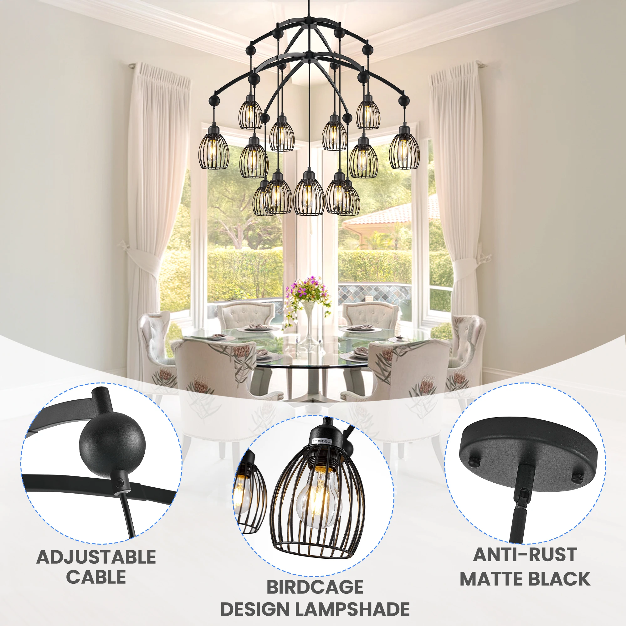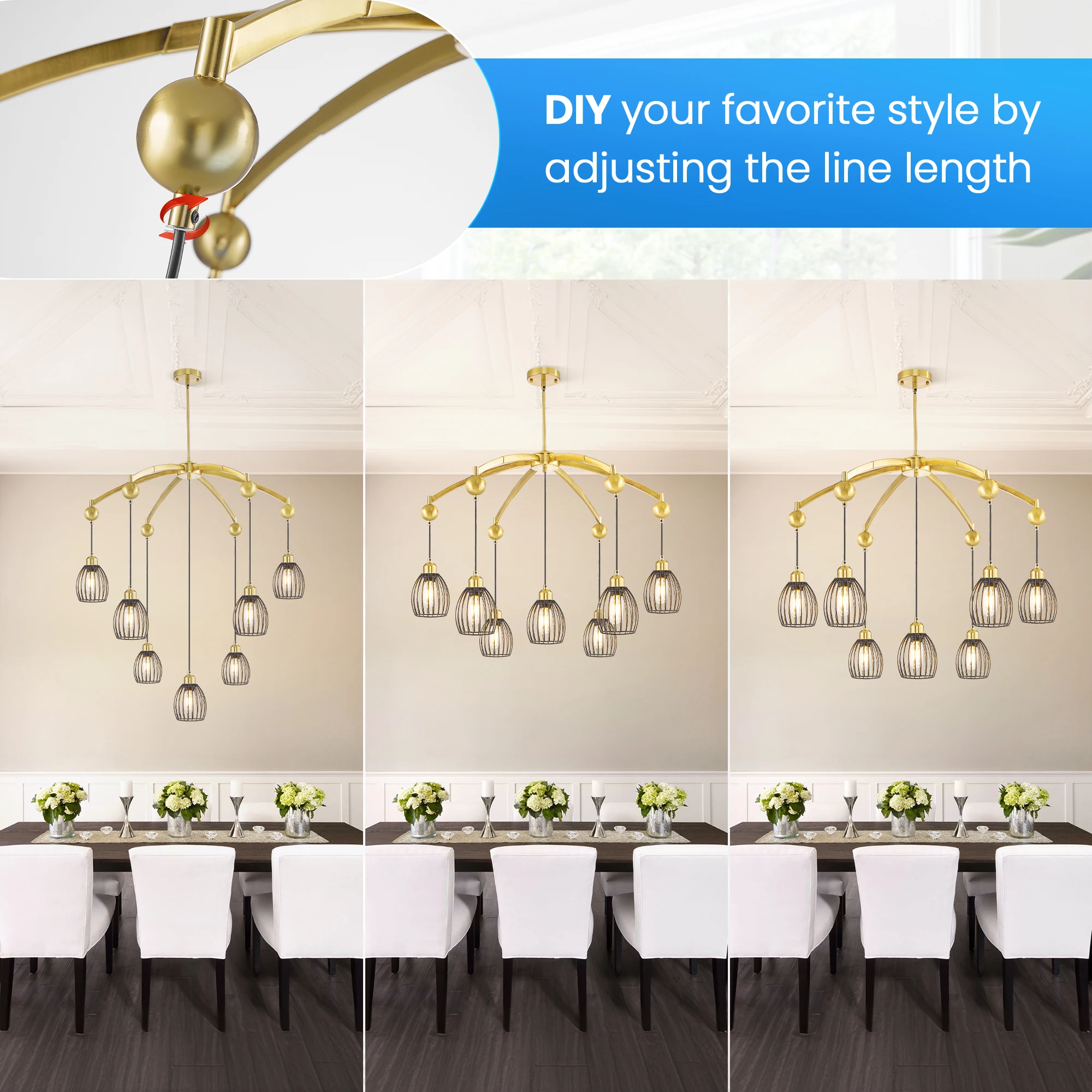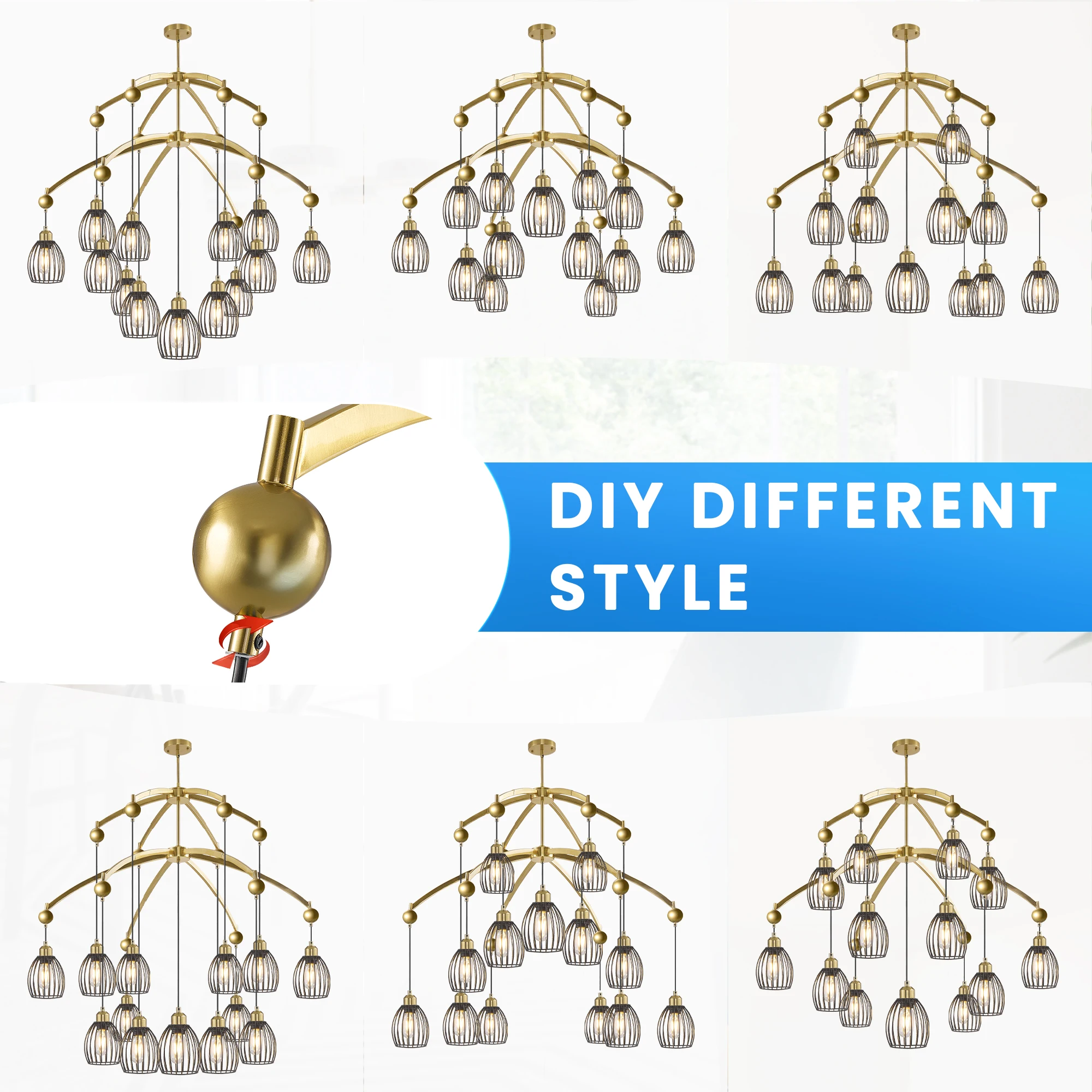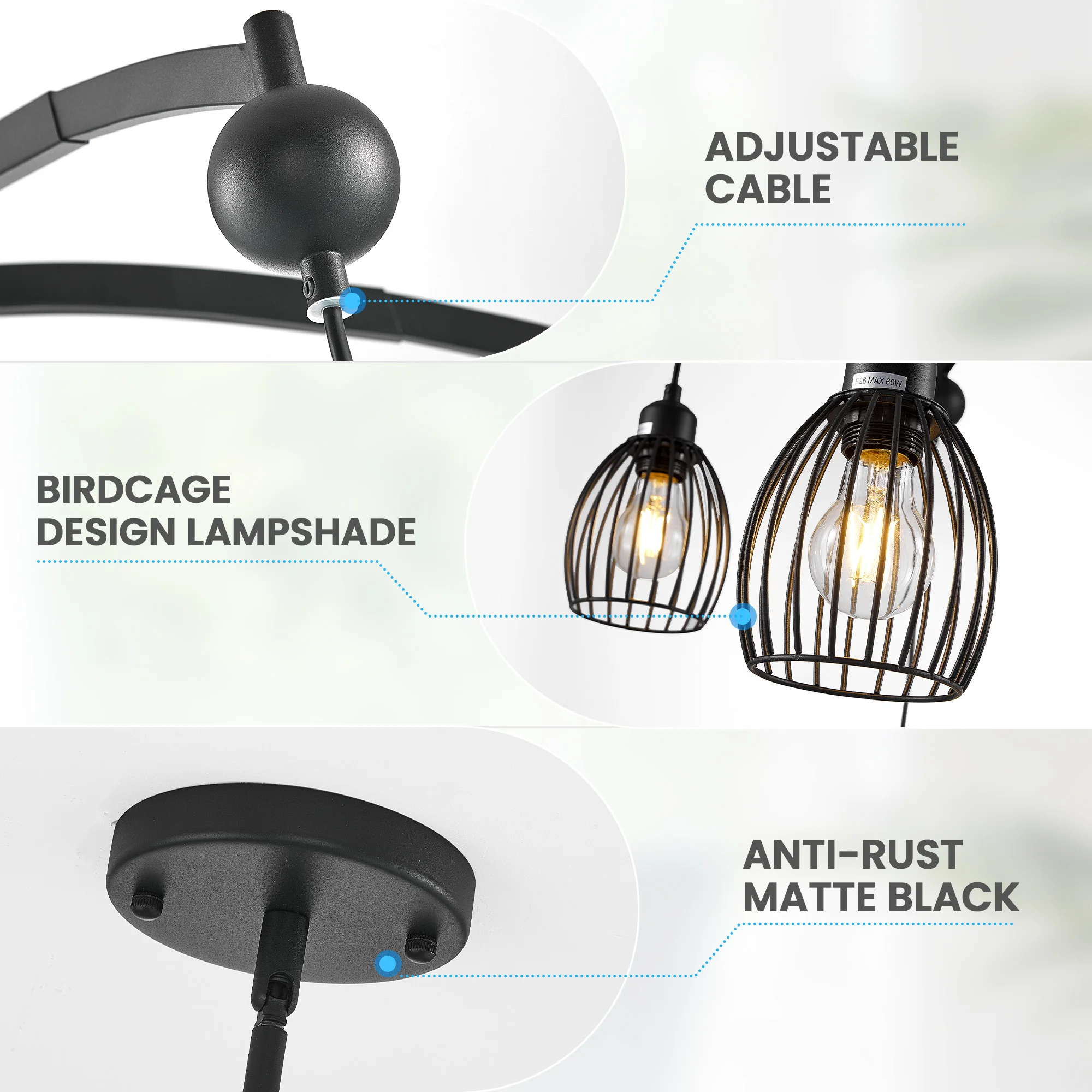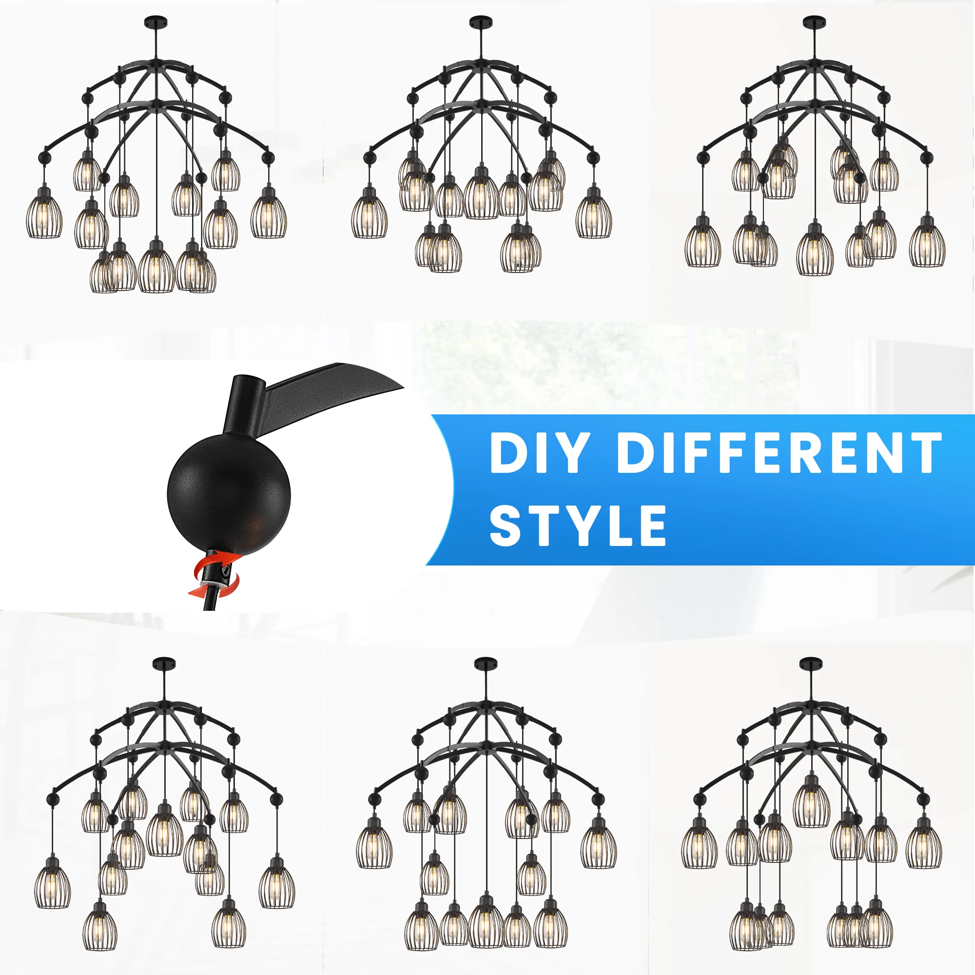 [Freely Adjustable the Cord Height]This modern chandelier has a extension hanging black rope which gives maximum flexibility in hanging heights according to your need. The height of each metal cage can also be adjusted according to the shape you want